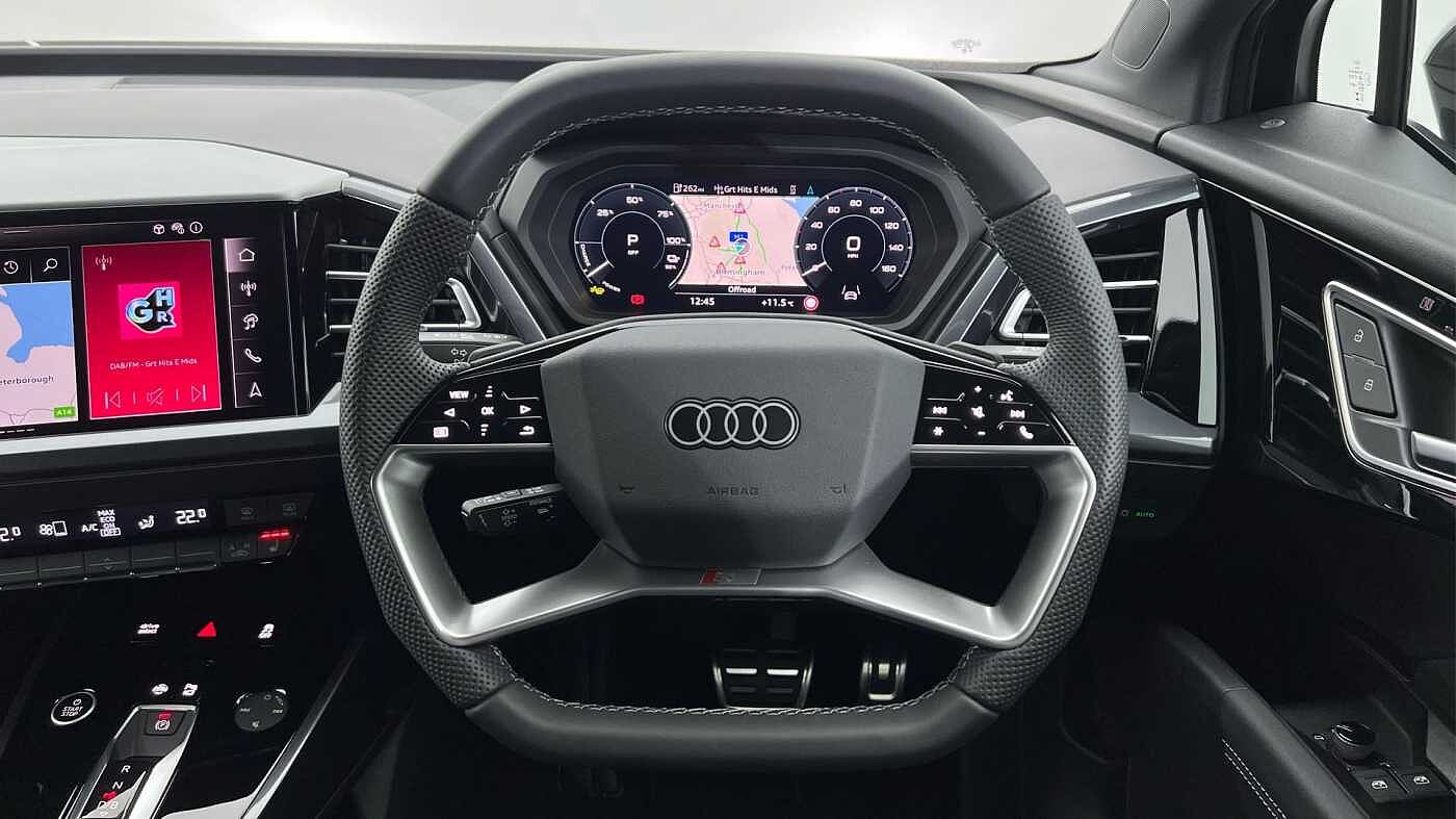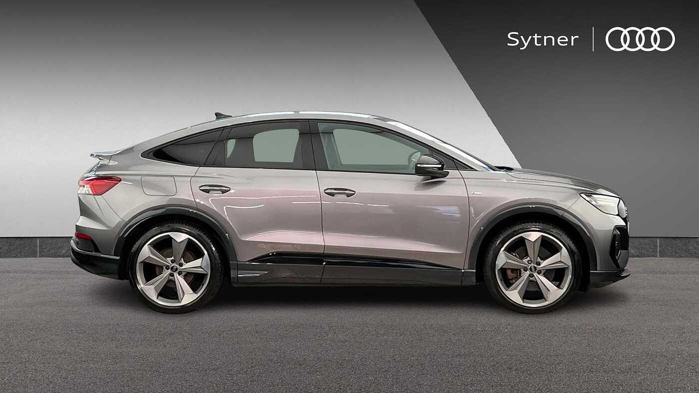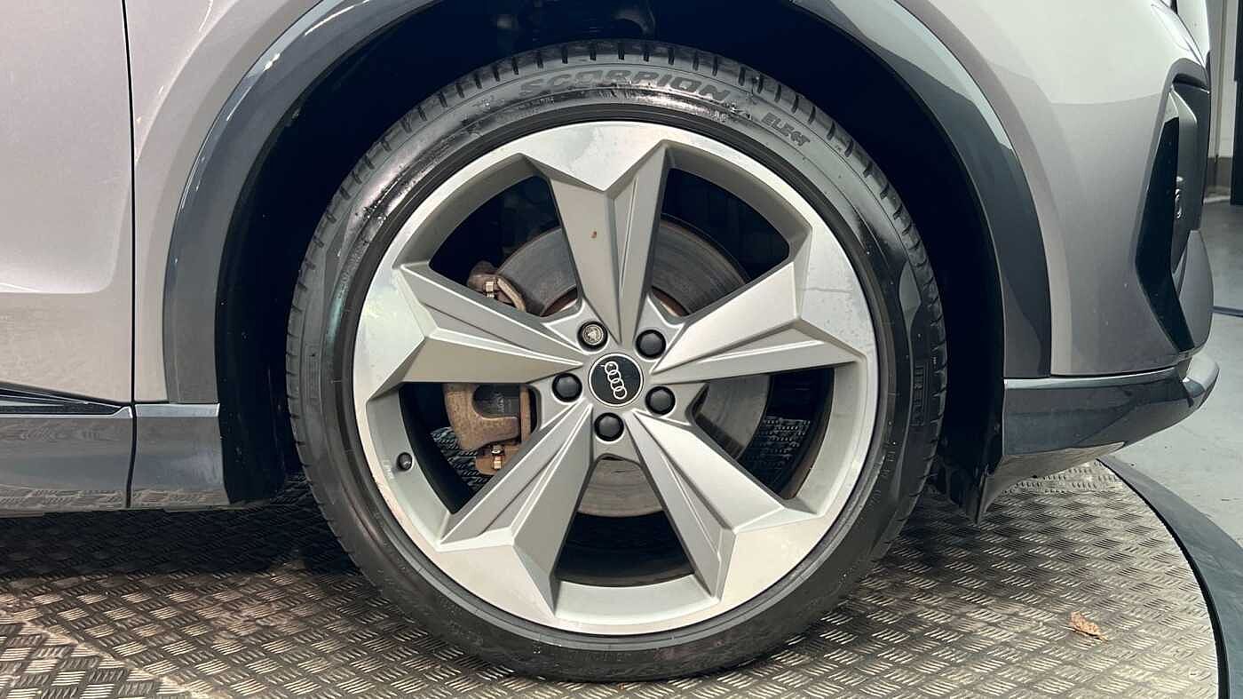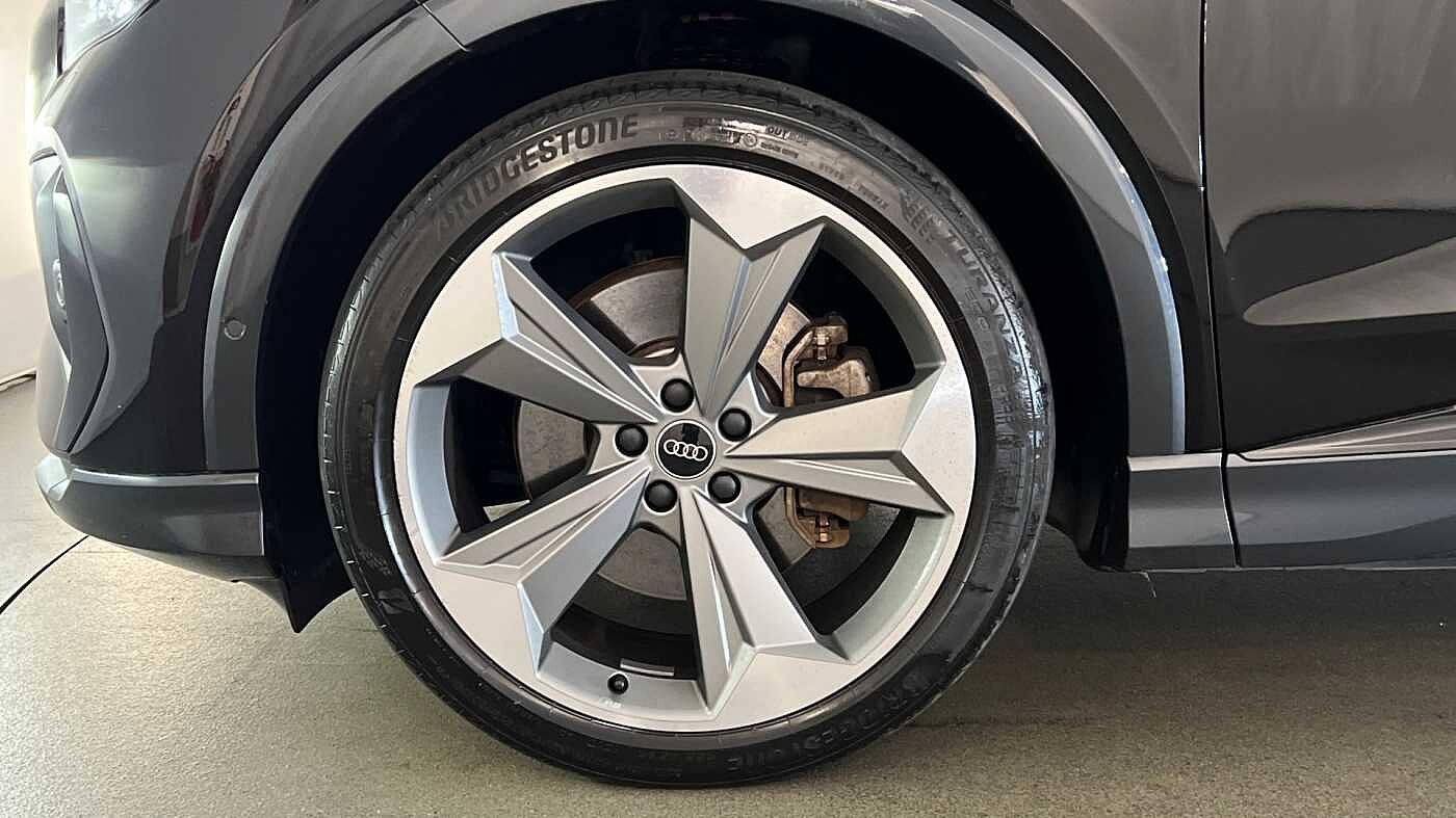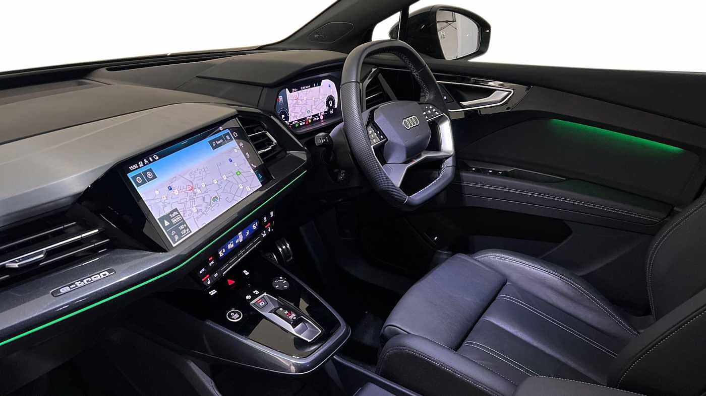 "features": "Adaptive cruise control with speed limiter, Advanced driver attention and drowsiness monitor, Audi application store, Audi connect safety and service (e-call), Audi drive select, Audi smartphone interface, Audi Virtual Cockpit - 10.25\" display, Bluetooth interface, Camera based traffic sign recognition, Lane departure warning including emergency assist, MMI Navigation Plus with high resolution 11.6 inch touchscreen colour display, Power operated tailgate with sensor controlled release, Progressive steering, Rear view camera, Swerve assist and turn assist, 11KW onboard charger, 175kW DC charging capability, AC and DC charging access point positioned on driver's side rear, Control unit with household plug and charging cable, Mode 2, Type 2 / G (10A), Mode 3 type 2 AC charging cable 22kW, Sport suspension, 2 USB-C ports with charge and data functions, Audi sound system with 8 loudspeakers incl. centre speaker, subwoofer and 6-channel amplifier with total output of 180 watts, DAB Digital radio, Audi rings and model badging in black (with powertrain designation removed), Contrast bumpers in Manhattan grey, Door mirror housings in black, Electrically adjustable/heated/folding/auto dimming door mirrors with integrated LED indications + kerb view function for passenger side, Frameless auto dimming interior rear view mirror, Heat insulating glass windscreen, Heated rear window, LED 3rd brake light, LED daytime running lights, LED Headlights, LED rear lights, Privacy glass - dark-tinted rear window, rear door windows and rear side windows, Projection light in the exterior mirrors, e-tron logo projected from the underside of the exterior mirror onto the ground, Rear side wing doors, Rear wiper, S Line badges on the front wings, S line exterior styling, Single frame grille with a structured, closed surface within an octagonal shape, 3 seat bench in 2nd row, 3 zone automatic air conditioning, 4 way electric lumbar support for driver and front passenger, 40/20/40 split folding rear seat bench, Accent surfaces in gloss black - centre console control panel, switch panel and trim on front doors in gloss black, Black cloth headlining, Comfort auxiliary air conditioning, Door armrests in leatherette, Flat top and bottomed twin-spoke leather multifunction sport steering wheel with shift paddles for recuperation, Front centre armrest, Front door sill trims with aluminium inlay, illuminated with S logo, Front sport seats with integrated head restraints, Front/rear floor mats, Heated front seats, Manual seat adjustment for driver and front passenger seats, Pedals in stainless steel, Rear centre armrest with cupholders, Rear head restraints, Single front passenger seat, Ambient lighting plus pack - Q4 E-tron, Black styling pack plus - Q4 E-tron, Non smoking pack - Q4 E-tron, 3x3 point rear seatbelts, Acoustic vehicle alerting system, Convenience key with safelock, Driver and front passenger airbag with passenger airbag deactivation, Electric child locks, First aid kit with warning triangle and vests, Front side airbags with head airbag system and front interaction airbag, i - Size child seat mounting on the front passenger side and i - Size and top tether on the outer rear seats, Pre-sense front with pedestrian and cyclist detection, Rear seat occupant reminder for child presence detection, Seat belt monitoring, Tyre pressure loss indicator, Anti theft alarm, Anti-theft wheel bolts, Keyless Go, Aluminium look interior elements, 21\" 5 arm rotor evo Audi Sport alloy wheels in matt grey, gloss turned finish and tyre seal technology, Vehicle tool kit, ",