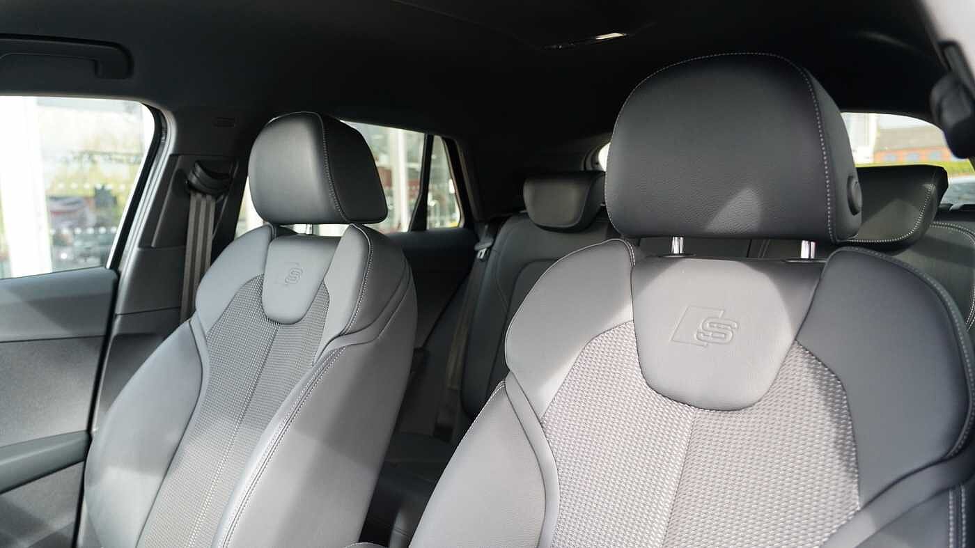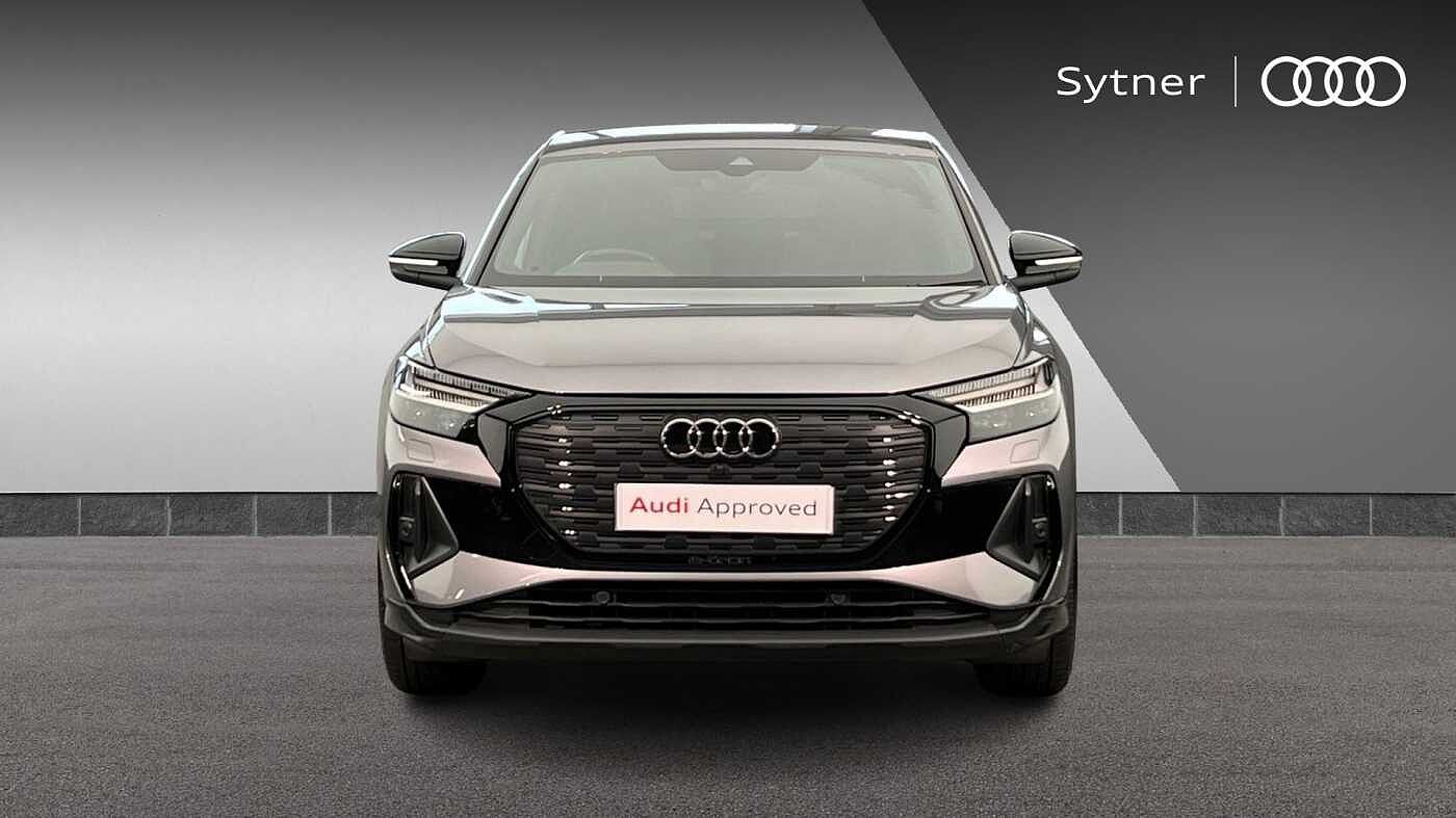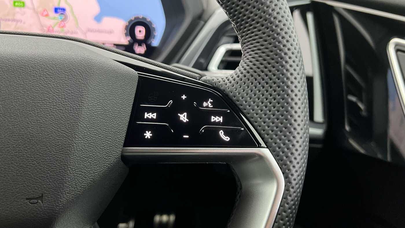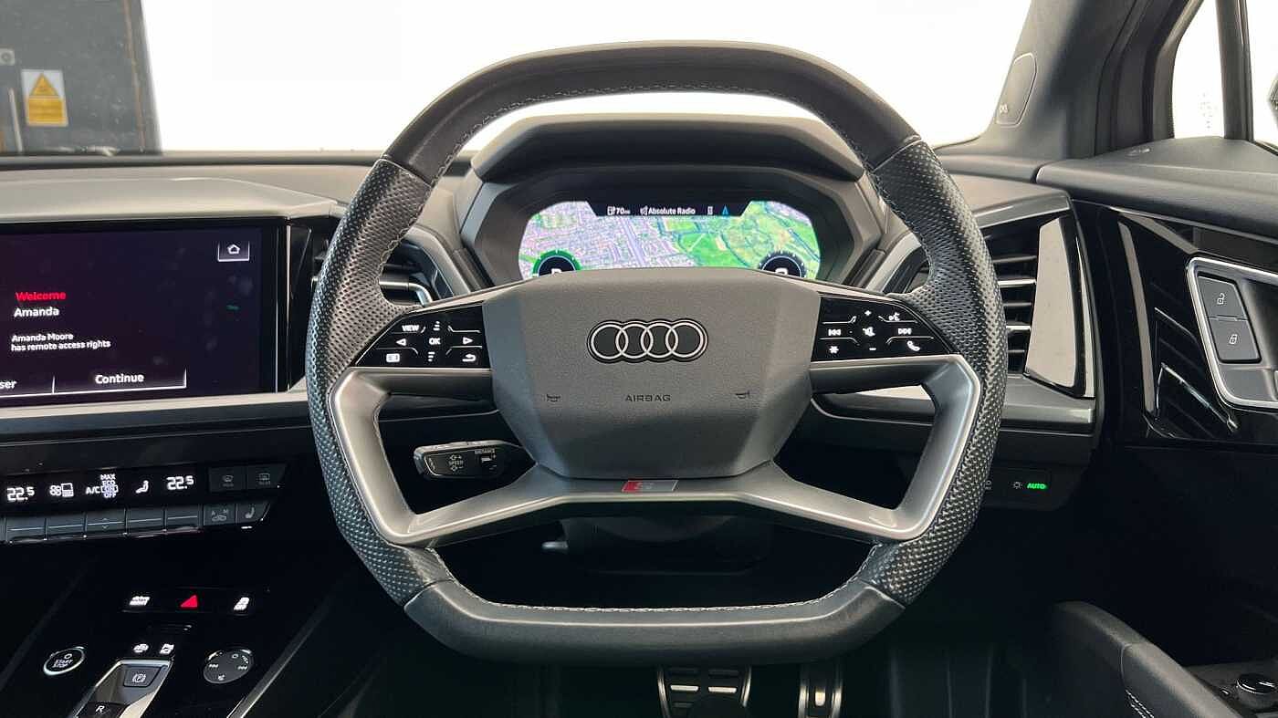 "features": "Adaptive cruise control with speed limiter, Advanced driver attention and drowsiness monitor, Audi application store, Audi connect safety and service (e-call), Audi drive select, Audi smartphone interface, Audi Virtual Cockpit - 10.25\" display, Bluetooth interface, Camera based traffic sign recognition, Lane departure warning including emergency assist, MMI Navigation Plus with high resolution 11.6 inch touchscreen colour display, Power operated tailgate with sensor controlled release, Progressive steering, Rear view camera, Swerve assist and turn assist, 11KW onboard charger, 175kW DC charging capability, AC and DC charging access point positioned on driver's side rear, Control unit with household plug and charging cable, Mode 2, Type 2 / G (10A), Mode 3 type 2 AC charging cable 22kW, Sport suspension, 2 USB-C ports with charge and data functions, Audi sound system with 8 loudspeakers incl. centre speaker, subwoofer and 6-channel amplifier with total output of 180 watts, DAB Digital radio, Audi rings and model badging in black (with powertrain designation removed), Contrast bumpers in Manhattan grey, Door mirror housings in black, Electrically adjustable/heated/folding/auto dimming door mirrors with integrated LED indications + kerb view function for passenger side, Frameless auto dimming interior rear view mirror, Heat insulating glass windscreen, Heated rear window, LED 3rd brake light, LED daytime running lights, LED Headlights, LED rear lights, Privacy glass - dark-tinted rear window, rear door windows and rear side windows, Projection light in the exterior mirrors, e-tron logo projected from the underside of the exterior mirror onto the ground, Rear side wing doors, Rear wiper, S Line badges on the front wings, S line exterior styling, Single frame grille with a structured, closed surface within an octagonal shape, 3 seat bench in 2nd row, 3 zone automatic air conditioning, 4 way electric lumbar support for driver and front passenger, 40/20/40 split folding rear seat bench, Accent surfaces in gloss black - centre console control panel, switch panel and trim on front doors in gloss black, Black cloth headlining, Comfort auxiliary air conditioning, Door armrests in leatherette, Flat top and bottomed twin-spoke leather multifunction sport steering wheel with shift paddles for recuperation, Front centre armrest, Front door sill trims with aluminium inlay, illuminated with S logo, Front sport seats with integrated head restraints, Front/rear floor mats, Heated front seats, Manual seat adjustment for driver and front passenger seats, Pedals in stainless steel, Rear centre armrest with cupholders, Rear head restraints, Single front passenger seat, Ambient lighting plus pack - Q4 E-tron, Black styling pack plus - Q4 E-tron, Non smoking pack - Q4 E-tron, 3x3 point rear seatbelts, Acoustic vehicle alerting system, Convenience key with safelock, Driver and front passenger airbag with passenger airbag deactivation, Electric child locks, First aid kit with warning triangle and vests, Front side airbags with head airbag system and front interaction airbag, i - Size child seat mounting on the front passenger side and i - Size and top tether on the outer rear seats, Pre-sense front with pedestrian and cyclist detection, Rear seat occupant reminder for child presence detection, Seat belt monitoring, Tyre pressure loss indicator, Anti theft alarm, Anti-theft wheel bolts, Keyless Go, Aluminium look interior elements, 21\" 5 arm rotor evo Audi Sport alloy wheels in matt grey, gloss turned finish and tyre seal technology, Vehicle tool kit, ",