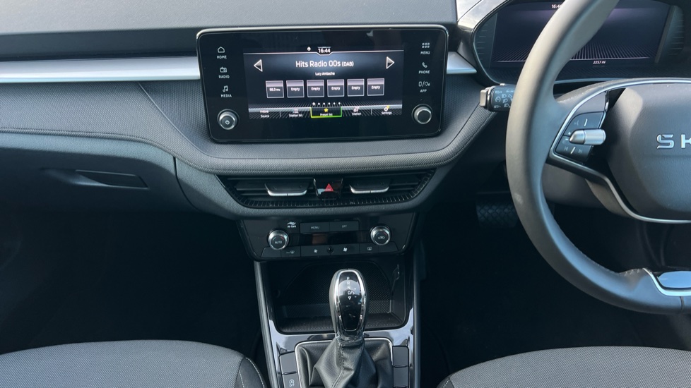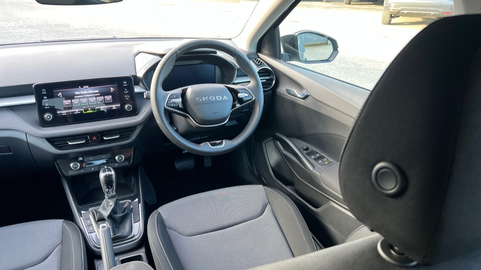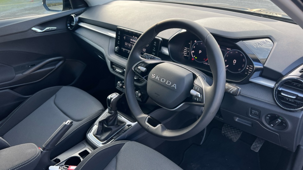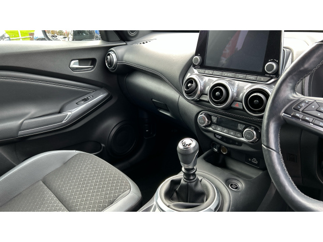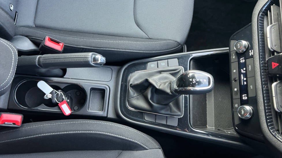 "Silver stitching on gear shift knob",