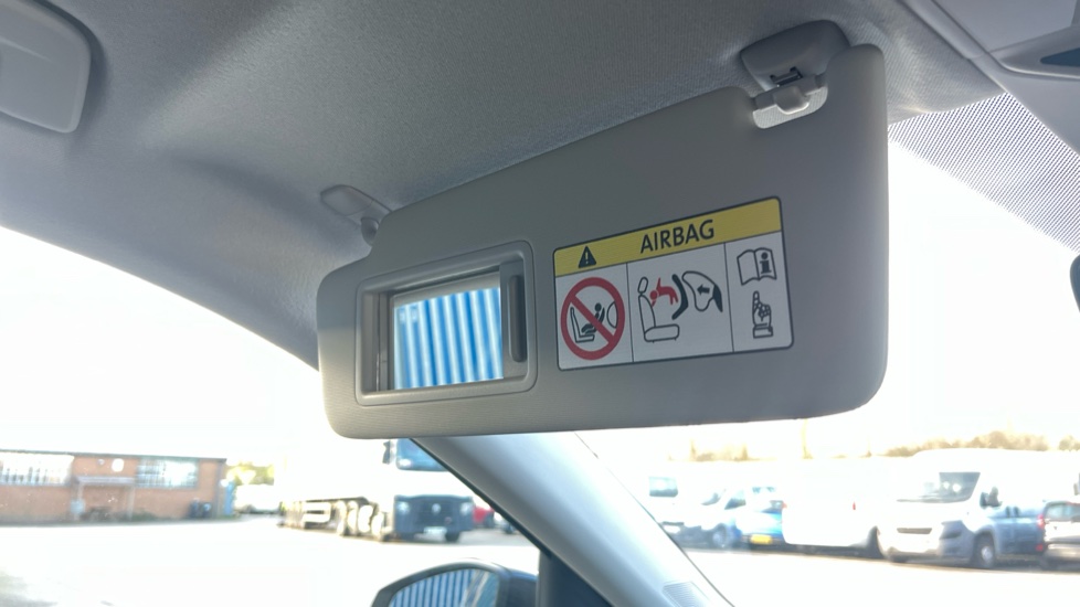 "Sun visors with mirror on driver and passenger side",