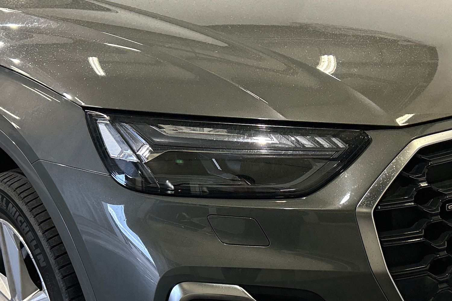 "Audi matrix LED headlights with dynamic front and rear indicators",