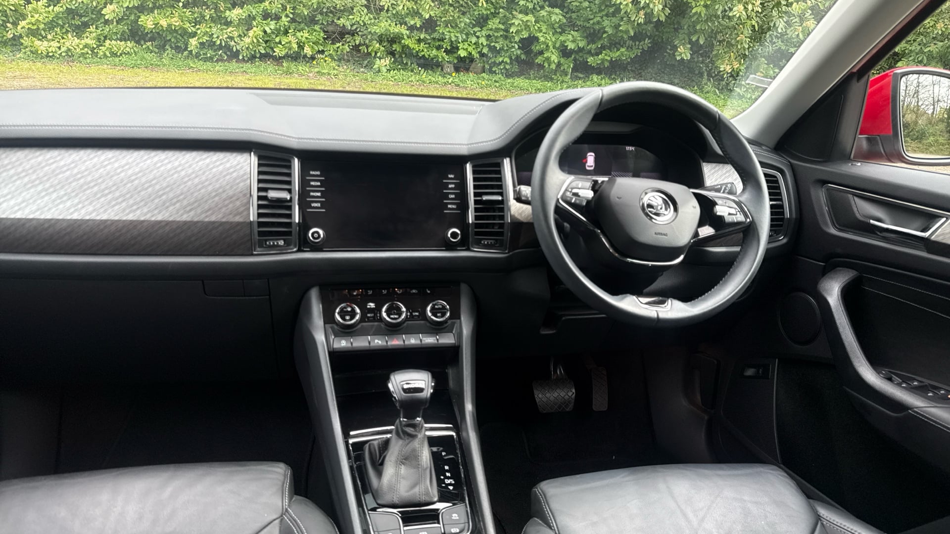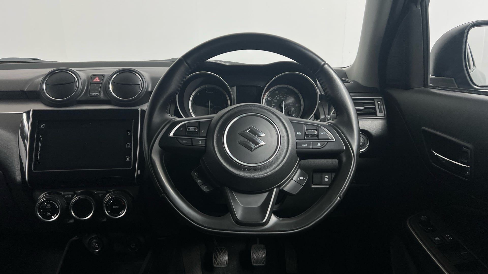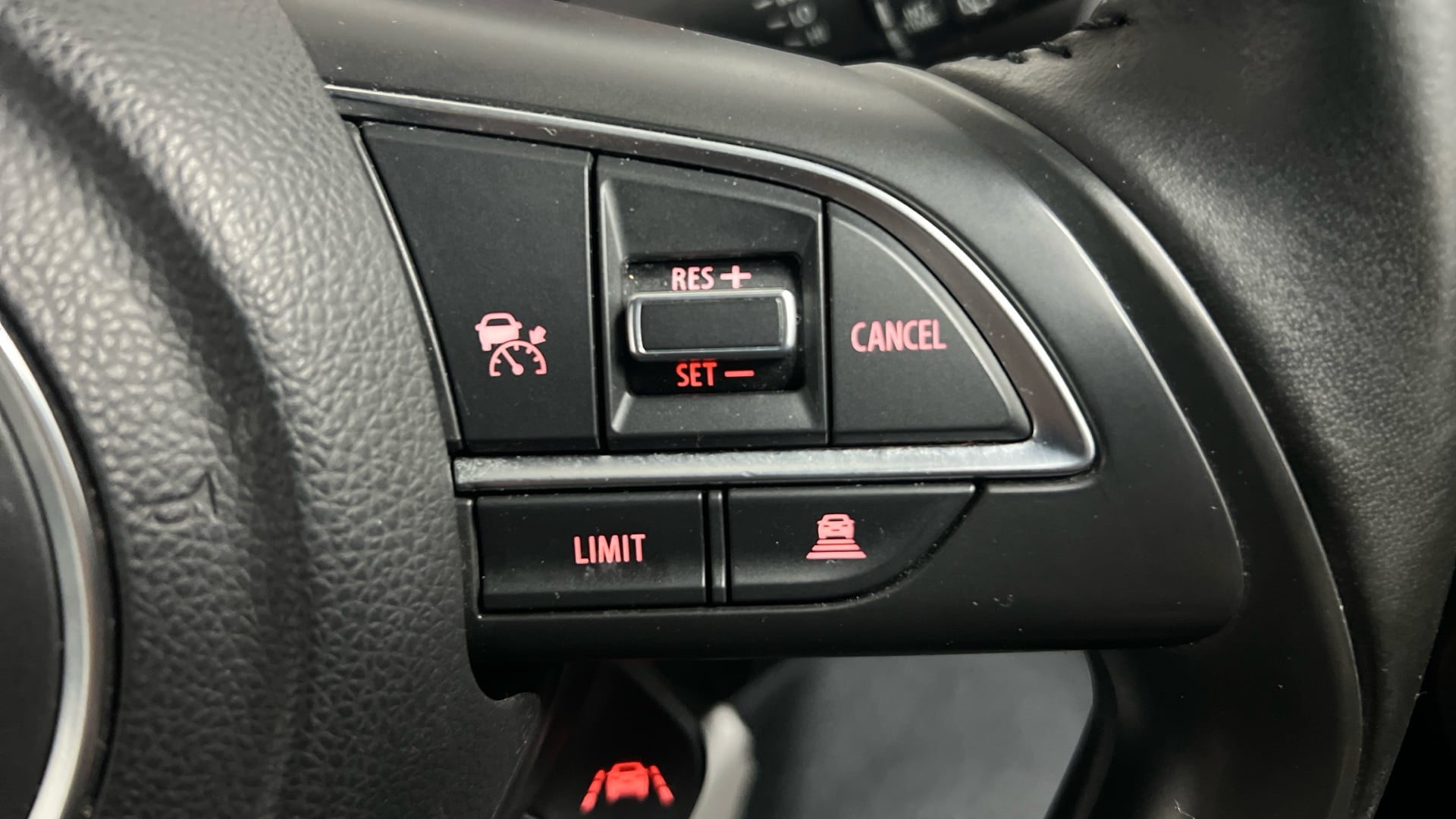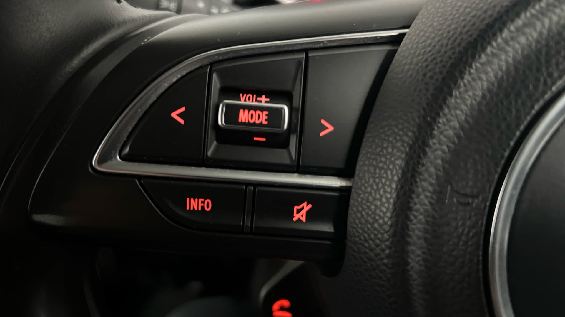 "3 spoke leather multifunction steering wheel with S badging perforated leather grips",