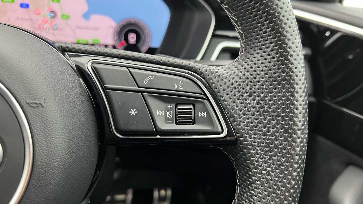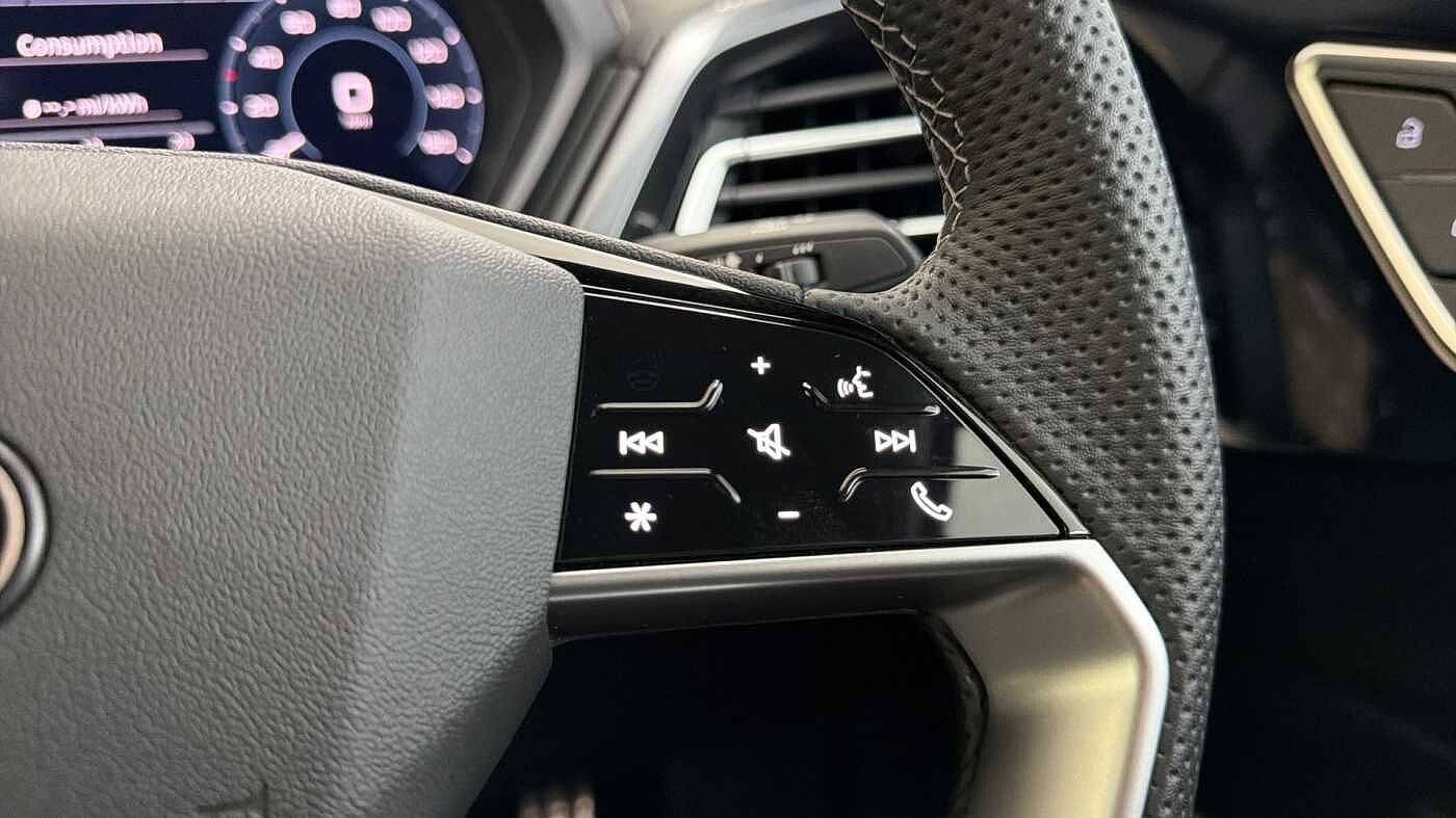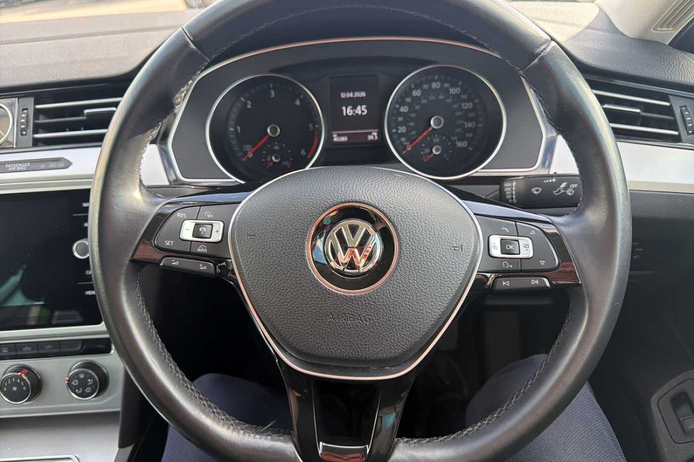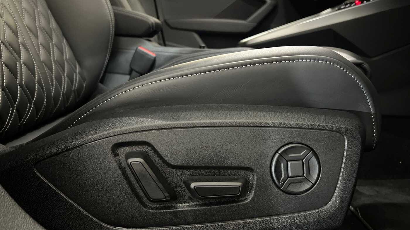 "Three spoke leather trimmed multifunction steering wheel with aluminium inserts and R Line Logo including paddle shift",