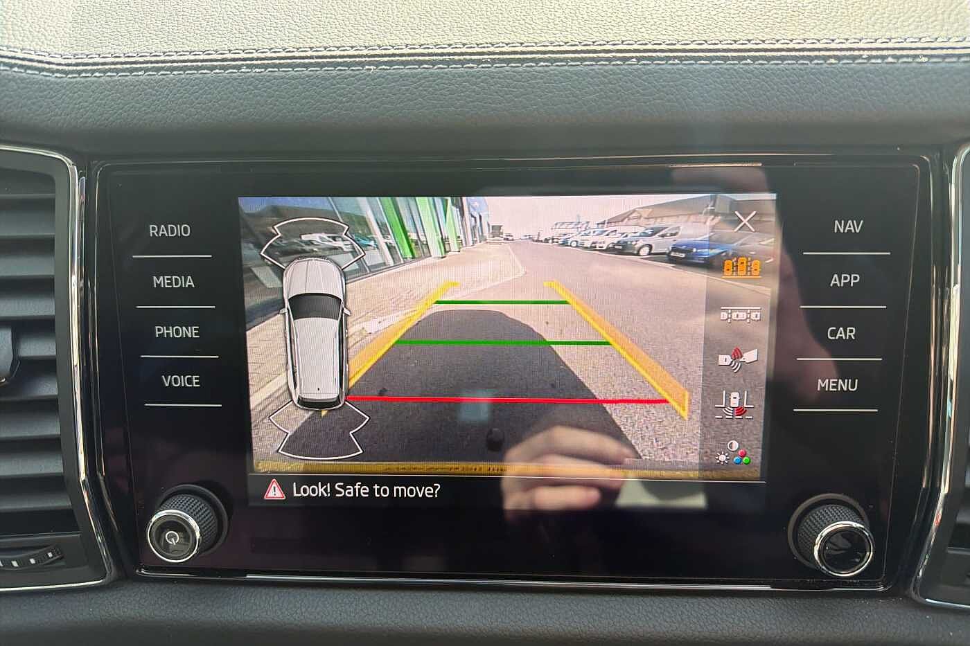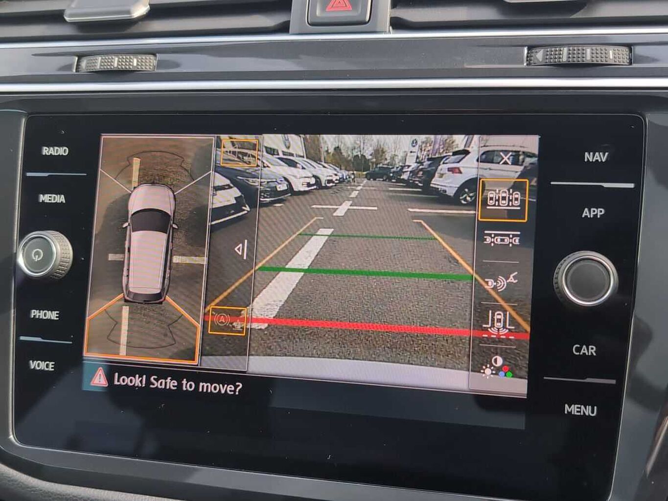 "Area view with park assist steering and front and rear parking sensors",