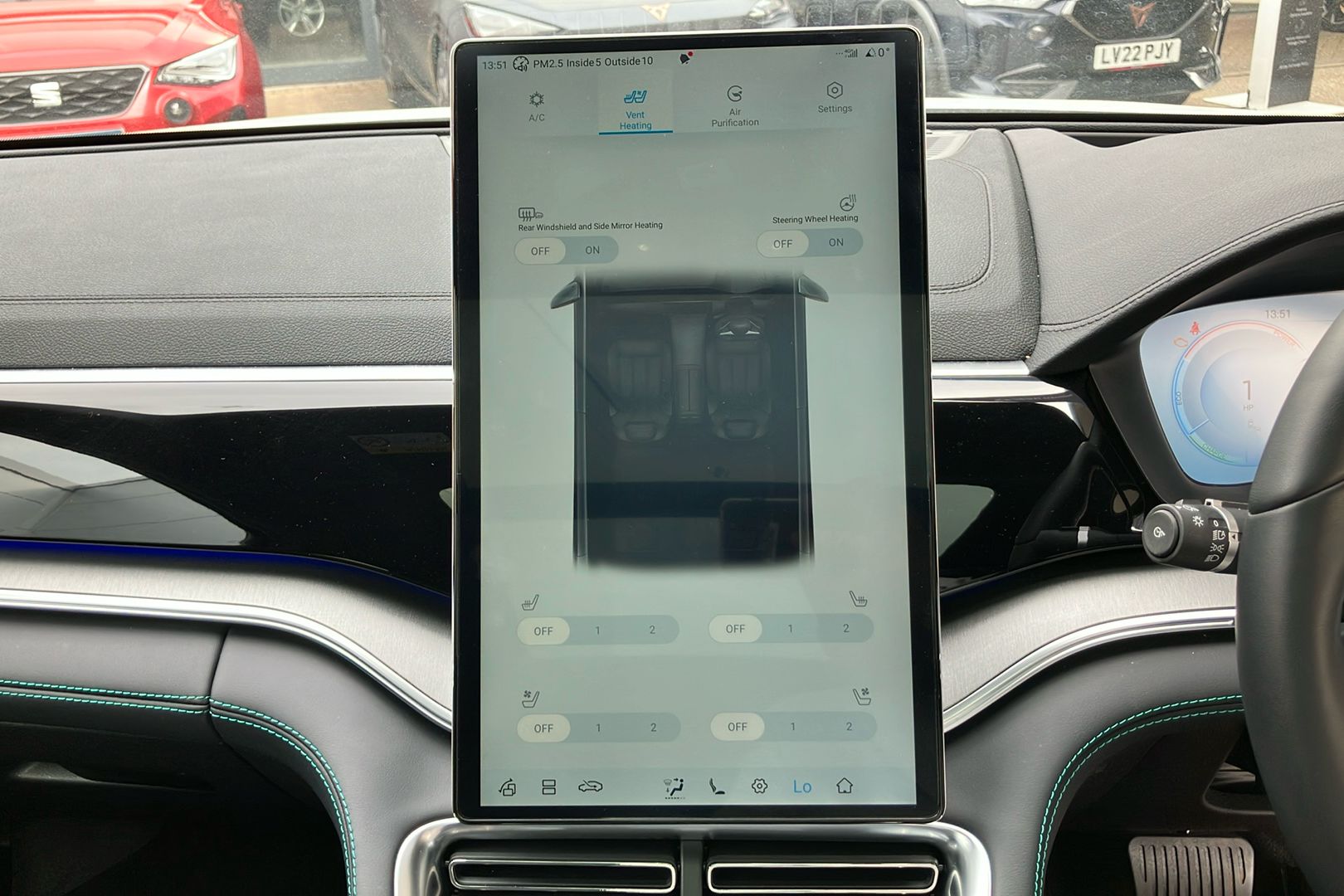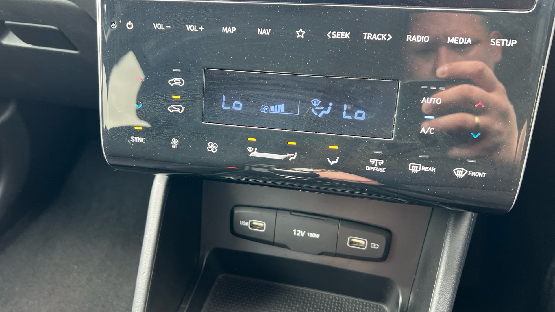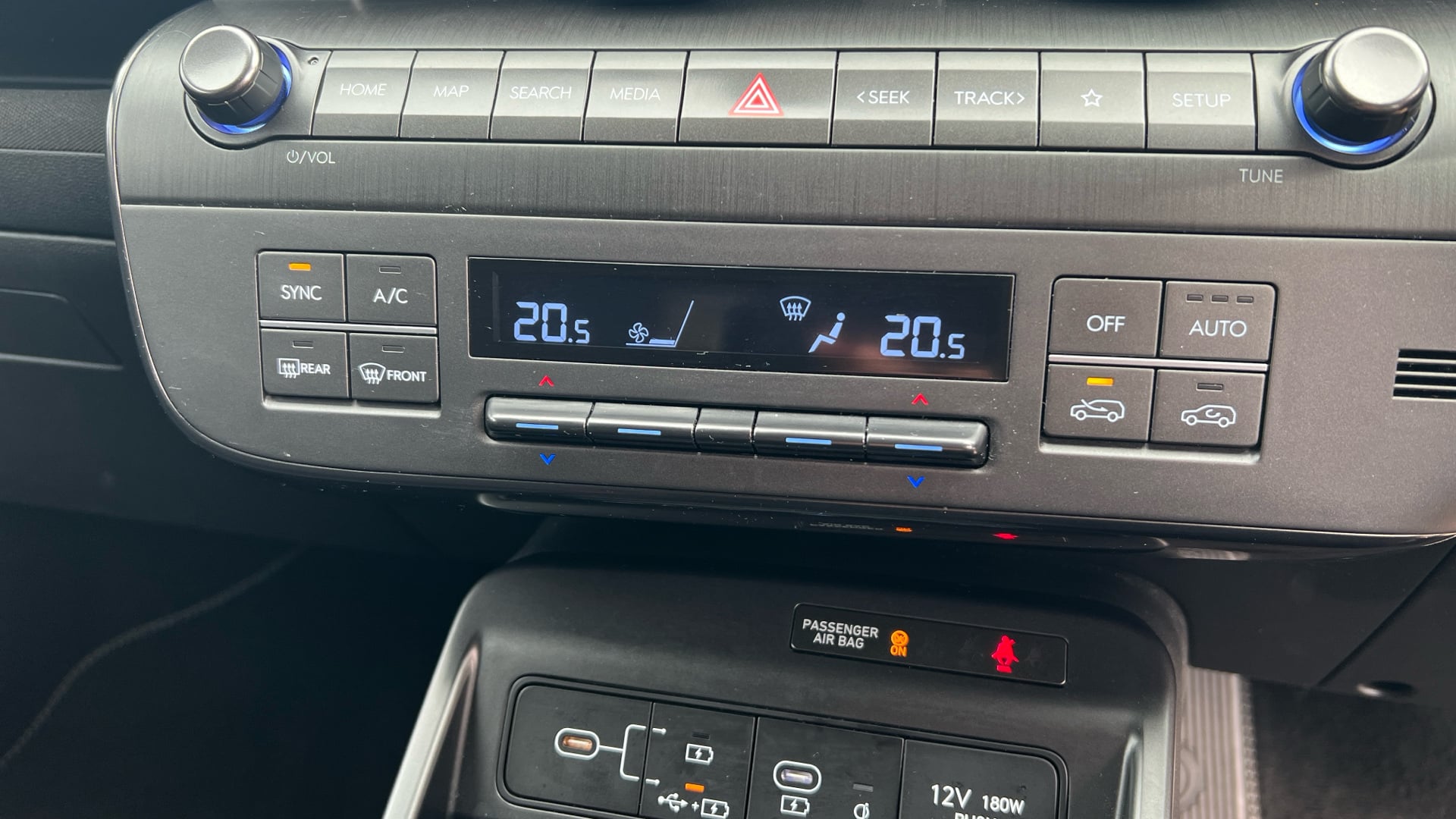 "Touch sensitive climate controls with temperature dials",
