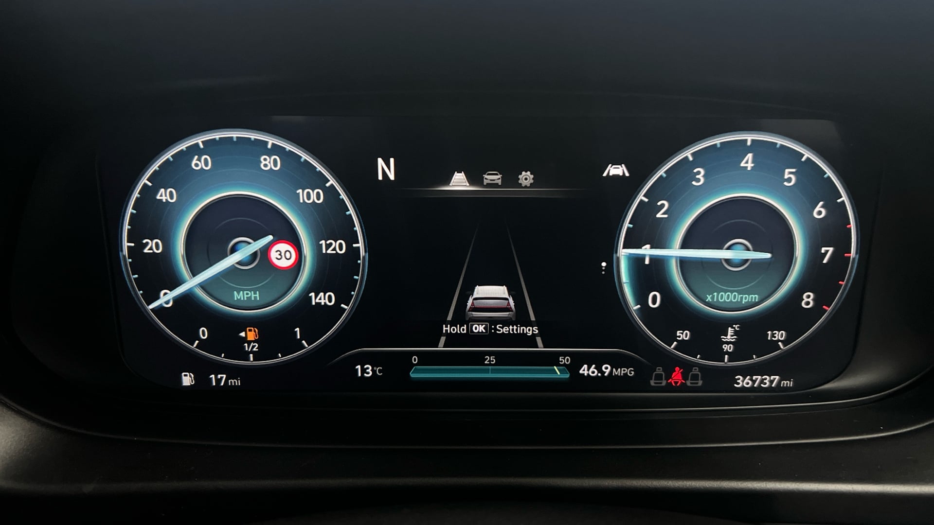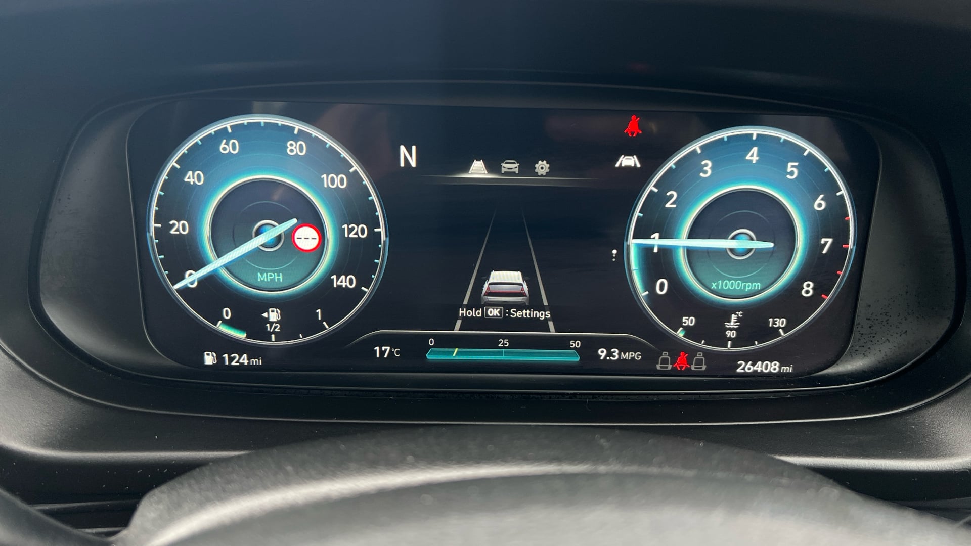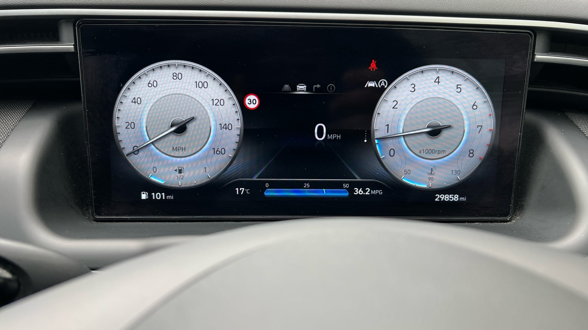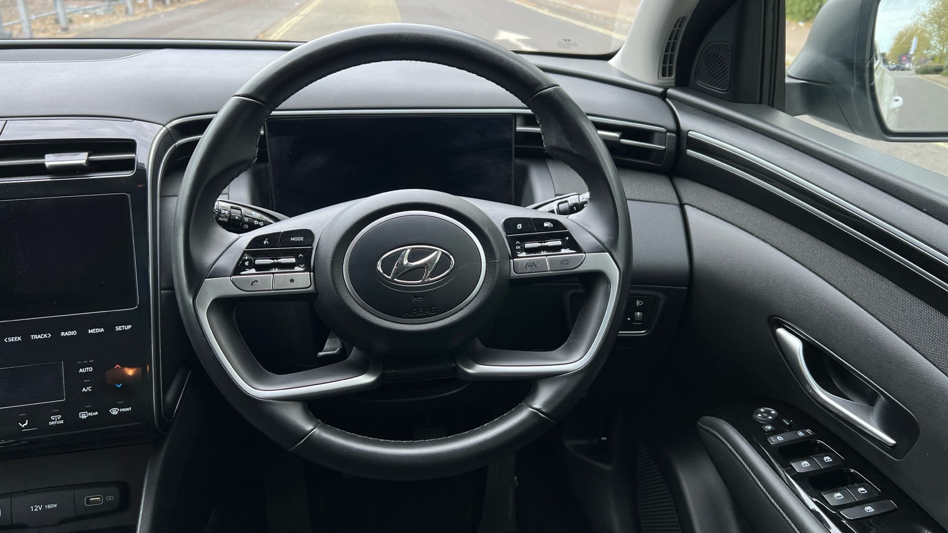 "features": "12.3\" LCD display with driver's supervision instrument cluster, 12.3\" widescreen navigation with bluelink and mapcare, Bluetooth system, Cruise control, Digital clock, Drive mode selector, Driver attention warning, E-call, Emergency stop signalling system, Forward Collision Avoidance Assist (FCA) - Car, Pedestrian and Cycle, Front and rear parking sensors, Hyundai road side assistance, Intelligent speed limit assist, Lane follow assist, Lane keep assist, Over the air updates(OTA), PAS, Rear camera and guidance parking system, Rev counter, Tailgate open warning light, Trip computer, Trip odometer, Voice recognition, Water temperature gauge, Windscreen washer fluid sensor and warning indicator, Wireless Apple CarPlay/Android Auto, Wireless phone charging pad, 2 front and 2 rear speakers with 2 tweeters, 2 front and 2 rear USB-C ports, DAB Digital radio, Steering wheel mounted audio/phone controls, Adjustable intermittent front windscreen wipers with aero wiper blade, Auto dimming rear view mirror, Automatic defog system, Automatic headlights with dusk sensor, Automatic windscreen wipers with rain sensor, Black wheel arches, Body colour bumpers, Body colour door mirrors with integrated indicators, Body colour exterior door handles, Electrically adjustable, heated and power folding door mirrors, Follow me home headlights, Front and rear electric windows with anti-trap mechanism and one touch control, Front fog lights, LED 3rd brake light, LED daytime running lights, LED Headlights, LED rear lights, Positioning Lights - LED, Privacy glass - Rear windows and tailgate, Rear side wing doors, Rear wash/wipe with intermittent wipe setting, Roof rails, Soft touch rear door paneling, Tinted glass with windscreen shade band, Trailer stability assist, 12V power outlets in front console and luggage compartment, 3 seat bench in 2nd row, 40/20/40 split folding rear seat, 64 colours interior ambient lighting, Adjustable head restraints (Up and down), Cupholders in rear armrest, Door courtesy lights, Driver and passenger sunvisors with illuminated LED vanity mirrors, Driver's seat manual height adjust, Dual zone climate control, Front and rear door pockets, Front armrest with storage box, Front centre console and door bottle holders, Height/reach adjustable steering column, Illuminated/air conditioned glove compartment, ISOFIX child seat anchorage points attached on outer rear seats, Leather wrapped steering wheel and gear knob, LED interior lighting, Luggage compartment lighting, Luggage cover, Luggage hooks, Luggage net, Manual height adjustable front passenger seat, Map and reading lights, Premium cloth upholstery, Rear seat remote folding function, Reclining rear seats, Retractable load cover, Single front passenger seat, Sunglasses holder, Touch sensitive climate controls with temperature dials, Underfloor boot compartment, Trailer wiring package - Tucson, 3x3 point rear seatbelts, Active bonnet, Airbag - Front, front side, curtain and centre front airbags, Anti-lock brake system (ABS), Brake assist function, Childproof rear door locks, Curtain airbag roll over sensor, Downhill brake control, Electric parking brake, Electronic stability control, Front and rear seatbelt reminder, Front passenger airbag deactivation switch, Front seatbelt pretensioners, Hill start assist control (HAC), Multi-Collision braking, Outer rear seatbelt height adjustment, Seatbelt height adjustment for front seats, Traction control, Tyre pressure monitoring system with individual tyre pressure display - TPMS, Vehicle stability management, Deadlocks, Immobiliser, Locking wheel nuts, Remote control central locking, Smart key with keyless entry and engine start/stop button, Speed sensitive auto door locking, Thatcham category 1 alarm, 17\" Alloy wheels, Tyre repair kit, ",