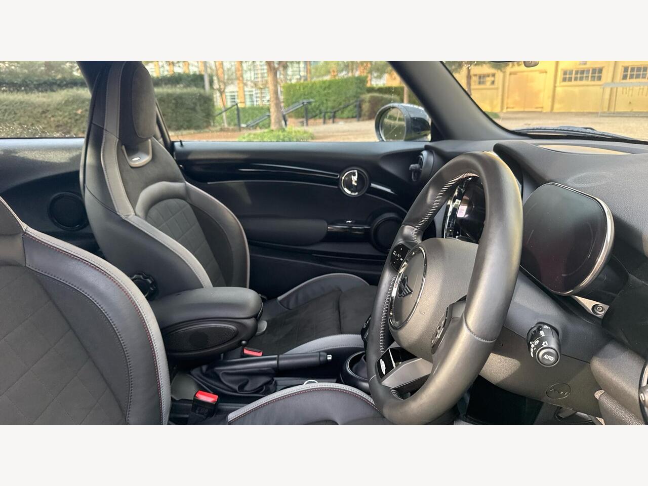 "JCW Sport seats with integrated headrests, adjustable thigh support and John Cooper Works logo",