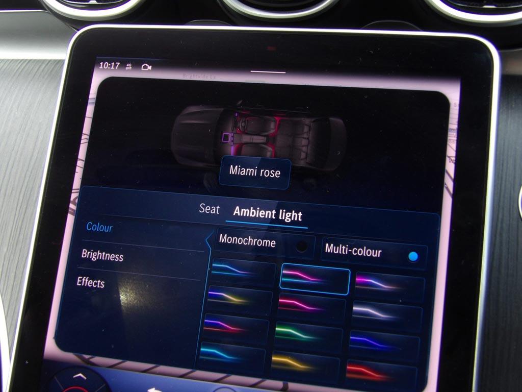 "features": "11.9\" high resolution multimedia colour display, 12.3\" digital instrument cluster display, Active lane keeping assist, Attention assist, DYNAMIC SELECT with a choice of driving modes (Comfort, ECO, Sport, Sport+, Individual), E-call, Extended MBUX functions, Finger print sensor, Fluorescent jacket for driver, Head up Display, MBUX augmented reality for navigation, MBUX navigation premium, MBUX voice control activated by keywords \"Hey Mercedes\", Mercedes connect me, Mercedes me remote services, Outside temperature gauge, Pre-installation for digital key transfer, Remote boot release, Service indicator (ASSYST), Smartphone integration, Sports direct steer speed sensitive steering, Status display for rear seat belts in instrument cluster, Traffic sign assist, Wireless charging system for mobile devices, 66l fuel tank with increased capacity, 9G TRONIC 9 speed automatic transmission, Agility control sports suspension and lowered by 15 mm, Petrol Particulate Filter, Residual engine heat utilisation, Sporty engine sound system, Burmester 3D surround sound system, DAB Digital radio, MBUX multimedia system, Adaptive brake lights, Adaptive high beam assist plus, AMG body styling front apron, rear apron and side skirts, AMG front bumper with sporty air intakes and chrome elements, AMG rear bumper with high gloss chrome elements, AMG side skirts in vehicle colour, B-pillar trim in glossy black, Body coloured bumpers, Body coloured door mirrors, Chrome beltline trim, Daytime running lights, Digital light LED headlights with projection function, Electric panoramic sliding sunroof, Electric windows with one touch opening/closing and obstruction sensors, Electrically adjustable and heated door mirrors, Green tinted glass, Heat insulating dark tinted glass, Illuminated front door sill panels, LED Indicators, LED tail lights, LED third brake light, Noise acoustic glass, Powerdomes on bonnet, Privacy glass, Radiator diamond grille with integrated Mercedes Benz star and louvre silver with chrome pins, Radio aerial integrated into rear window, Rain sensor with automatic windscreen wiper activation, Rear boot, Rear side wing doors, Two visible exhaust pipes integrated into rear bumper, 3 seat bench in 2nd row, 3 spoke flattened bottom AMG multifunction steering wheel in black nappa leather with chrome inserts and perforated leather in grip area, 40:20:40 split folding rear bench seat, Ambient lighting premium, AMG sports seats, Artico man-made leather upholstery, Audio and onboard settings control on multifunction steering wheel, Auto Mercedes-Benz child seat recognition sensor, Black air vents with silver chrome elements, Black floor mats with AMG lettering, Black roof liner, Door trim elements high gloss black with silver chrome surroundings and switches, Double cupholder in centre console, Electrically height/reach adjustable steering column, Folding rear seat backrest, Front and rear head restraints, Front centre armrest with storage compartment, Gearshift paddles on steering wheel, Heated front seats, Illuminated door sills with Mercedes Benz lettering, Illuminated glove compartment stowage, Overhead control unit in high gloss black, Rear top tether child seat ISOFIX attachment, Single front passenger seat, Sports pedals with stainless steel surfaces and rubber studs, Sunvisors with illuminated vanity mirrors, Thermotronic automatic 4 zone climate control, Interior lighting package - C Class, Memory package - C Class, Mirror pack - C Class, Parking package with 360 degree camera - C Class, Seat comfort pack - C Class, Stowage space pack - C Class, USB package plus - C Class, 3 rear 3 point seatbelts, Active bonnet pedestrian safety measure which detects an impact and raises bonnet, Adaptive brake system with HOLD function and brake drying in the wet, Anti-lock braking system (ABS), Black seat belts, Brake calipers with Mercedes-Benz lettering + perforated front brake discs, Child proof door locks, Drivers knee airbag, Drivers pelvis airbag, Dual stage driver/passenger airbags, Electric parking brake, Electronic Stability Programme (ESP), Front centre airbag between driver and front passenger seats, Front side airbags, Larger brake discs on front axle, Rear seatbelt warning indicator, Sports braking system, Tyre pressure monitoring system, Warning triangle and first aid kit, Window airbags for driver, front passenger and rear passenger, Central locking with interior switch, automatic locking and crash sensor with emergency opening function, Chrome surround electric key, Dashcam, Keyless Go, URBAN GUARD vehicle protection (Thatcham Category 1) consisting of break-in, anti-theft alarm system (ATA),interior monitoring and tow-away protection, Artico man-made leather dashboard with contrast stitching, Centre console trim in anthracite line structure lime wood, 19\" AMG 5 twin spoke light alloy wheels aerodynamically optimised painted in black with high sheen finish, Noise reduced tyre with foam absorber, Summer tyres, TIREFIT with tyre inflation compressor, ",