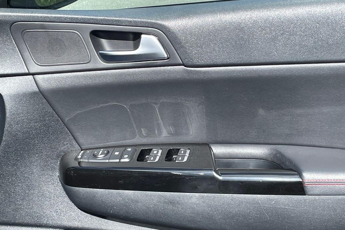 "Satin black door and side trim panel in front",