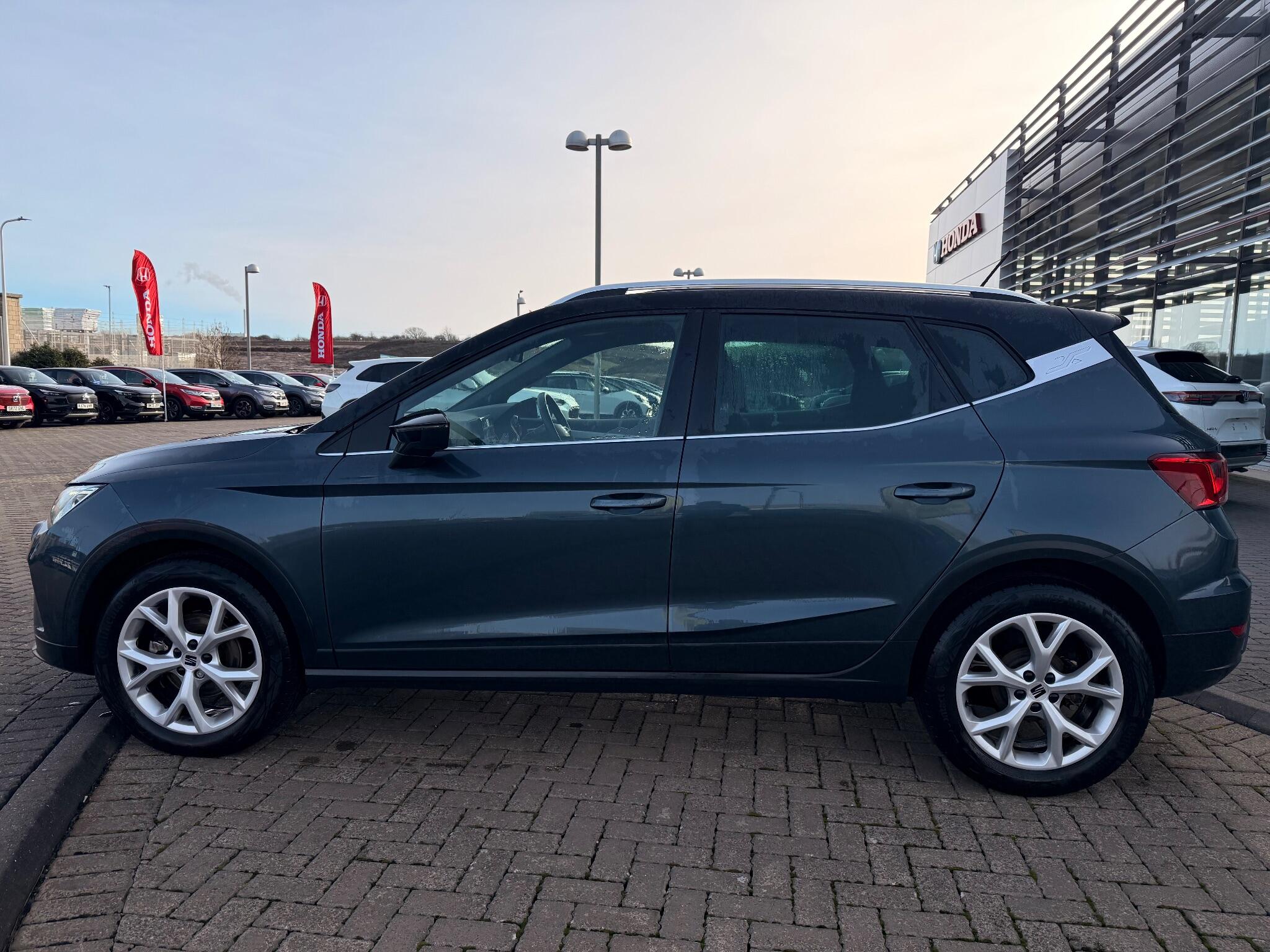 "features": "'Lights On' Reminder warning buzzer, 8\" Digital cockpit, Digital clock, E-call, Electric speed sensitive power steering, Full Link Smartphone Integration with Mirror Link, Apple Car Play, Google Android Auto with USB Type C cable for Apple and Android compatibility, Lane keeping system, Low fuel warning light, Outside temperature display, Rear parking sensor, RPM counter, Seat connect with safety, service, remote and online, SEAT Drive profile - Four different models normal-sport-eco-individual, steering response, throttle response, Trip computer, Wireless phone charger, 9.2\" colour touchscreen with navigation system, voice control and USB port (type c), Bluetooth interface for hands free and audio streaming, DAB digital radio and AM/FM radio, Steering wheel mounted audio controls, Anti theft roof antenna, Auto dimming interior rear view mirror, Automatic activation of hazard warning lights, Body coloured bumpers, Body coloured door handle inserts, Chrome roof rails and window surrounds, Dark tinted rear windows, Electric front/rear windows, Electrically adjustable, heated and folding door mirrors, Front fog lights with cornering function and rear fog light, FULL LED automatic headlights with dynamic headlight range control, coming and leaving home, LED daytime running lights, LED rear tail lights and licence plate lights, Protective side mouldings, Rain sensing wipers, Rear side wing doors, Rear spoiler, Rear window wash/wipe, Roof colour door mirrors, Third brake light, Twin exhaust pipe styling hidden exhaust pipe, Visible VIN plate, Windshield wiper with intermittent control and potentiometer, 2 cupholders, 3 seat bench in 2nd row, 60/40 split folding rear seat, Aircare filter, Black interior roof, Cloth upholstery, Double boot floor, Driver sunvisor with covered mirror + card holder, Dual zone climate control, Front courtesy light with front reading lights, Front sport seats, Gear shift indicator, Height adjustable front seats, Height/reach adjustable steering column, Illuminated boot, Instrument lighting with brightness control, Interior ambient lighting, Interior light in footwell, central console and door panel, ISOFIX points in outer rear seats with top tether anchorage points, Passenger sunvisor with vanity mirror, Perforated flat bottomed leather steering wheel/gear knob/handbrake with red stitching and FR logo, Single front passenger seat, Two front and three rear height adjustable headrests, Interior chrome pack - Arona, 3 point seatbelts on all rear seats, ABS, Active front headrests, Child locks on rear doors, Driver and front passenger airbags with front passenger airbag de activation, front side and curtain airbags, Electronic stability control, Emergency Brake Assist (EBA) and front assist, Front and rear seatbelt reminder, Hill hold control, Multi-Collision braking, Tiredness recognition system, Traction control, Tyre pressure monitoring system, Alarm with back-up horn, Electronic engine immobiliser, Locking wheel bolts, Remote central locking + deadlocks, Tow away protection, Titan black dashboard, 17\" Dynamic alloy wheels, ",