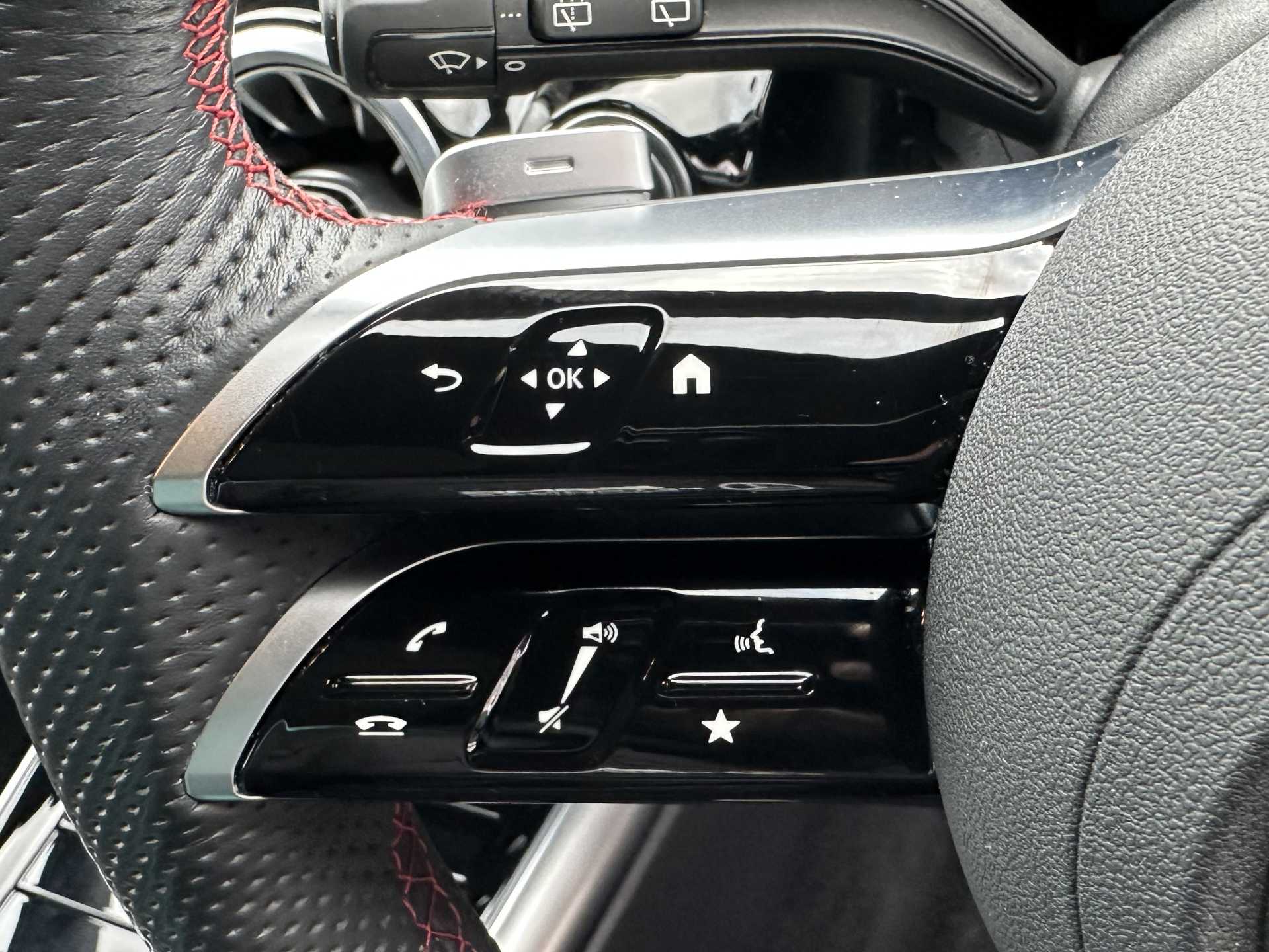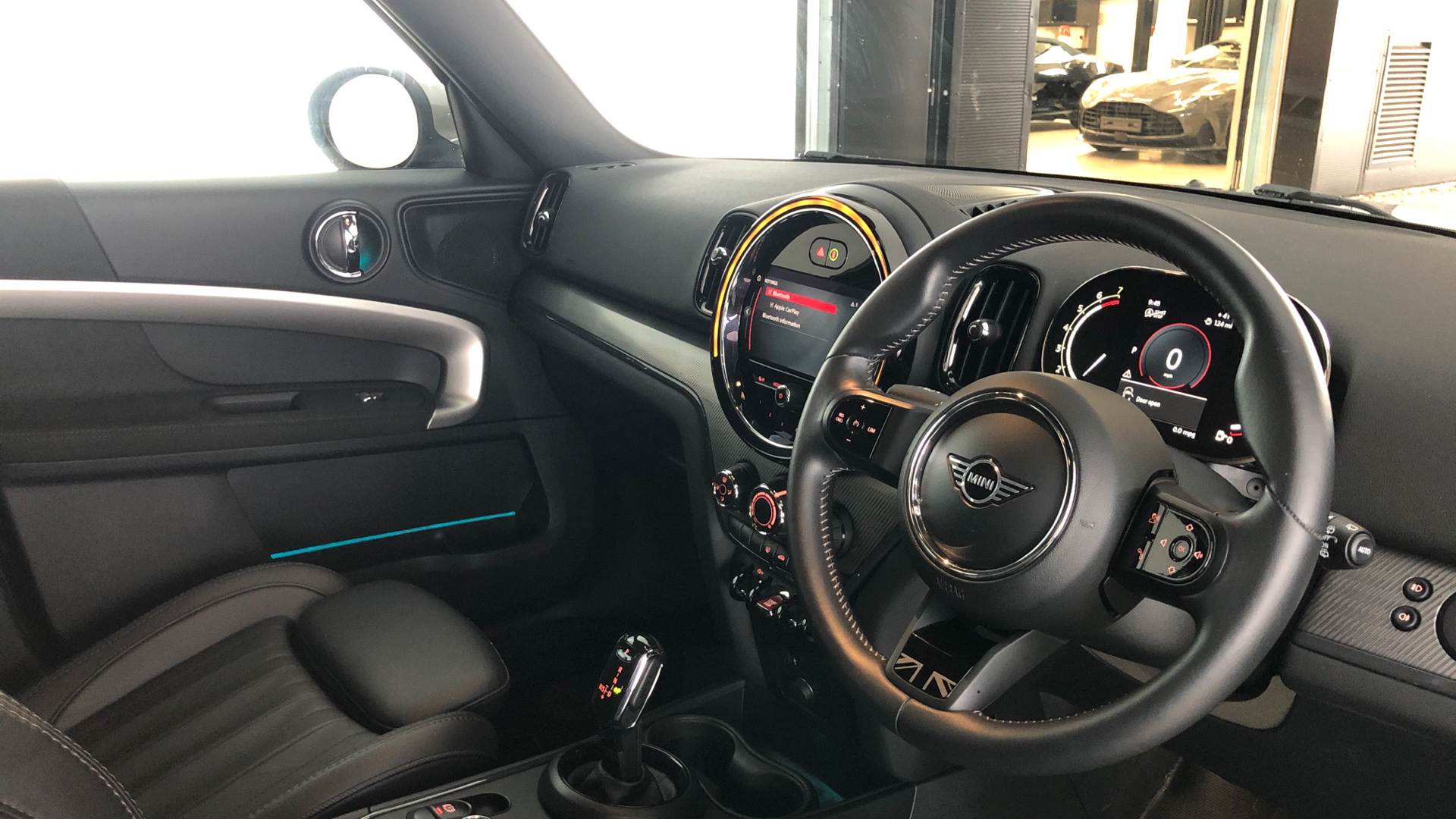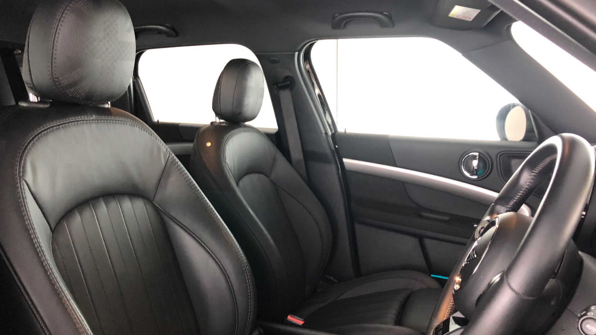 "MINI Yours fine walk nappa leather steering wheel with contrast stitching in silver and MINI Yours badge",
