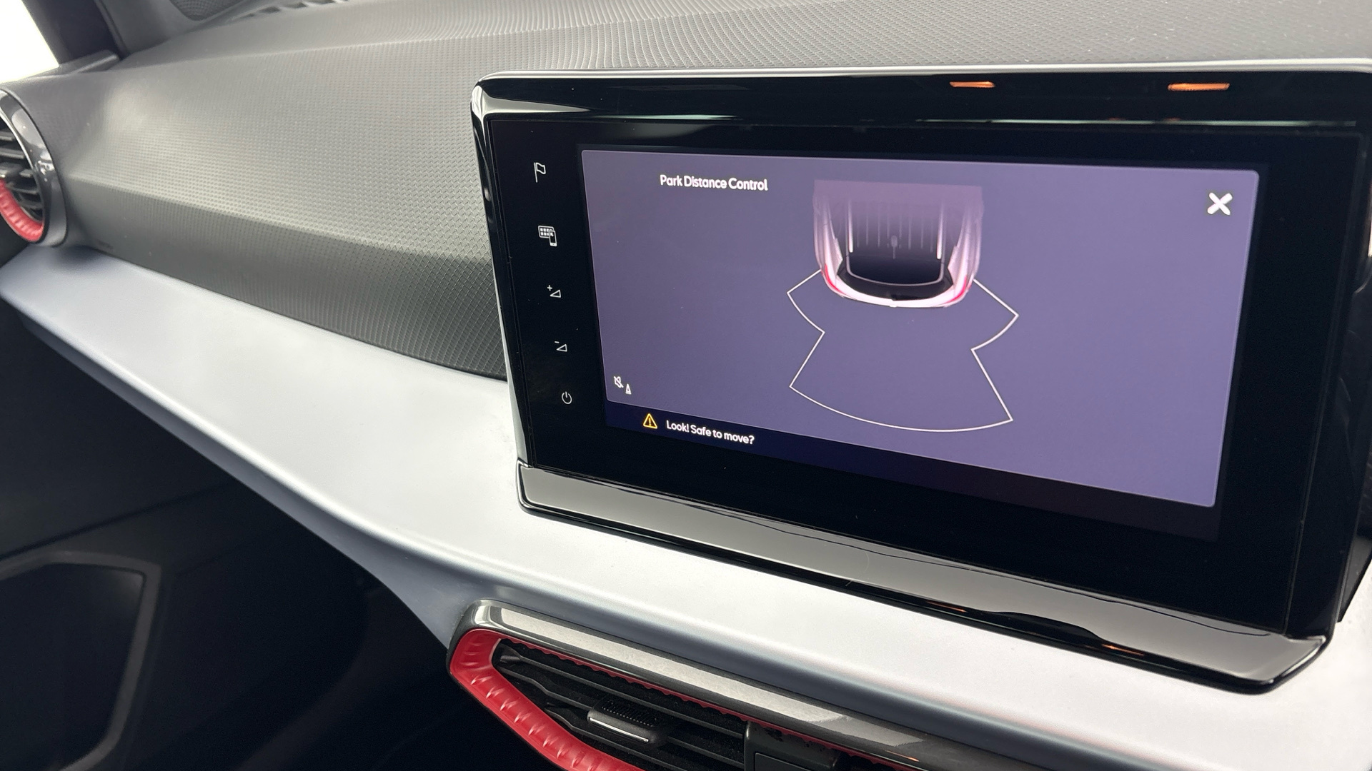 "Warning buzzer and light for front seatbelts unfastened"