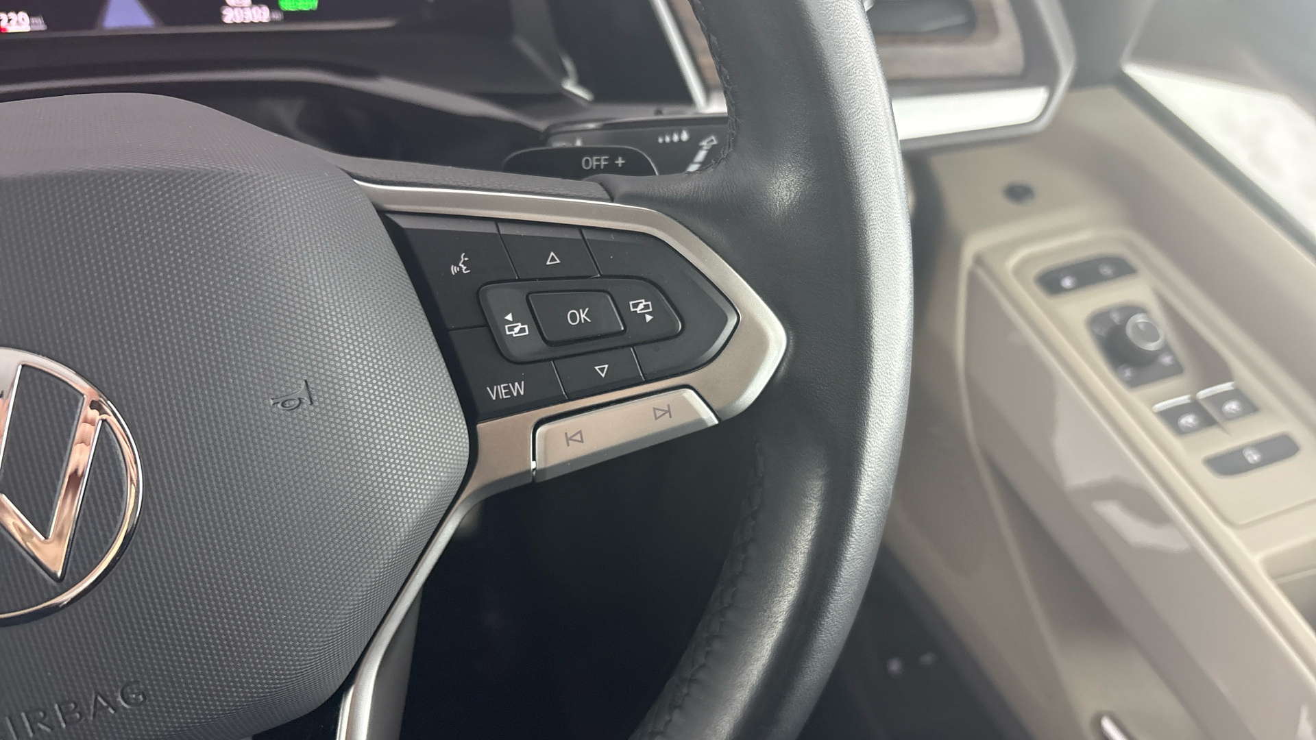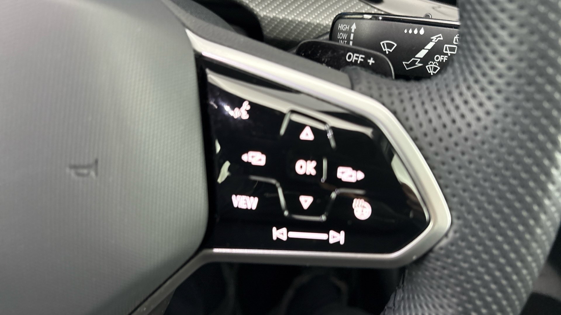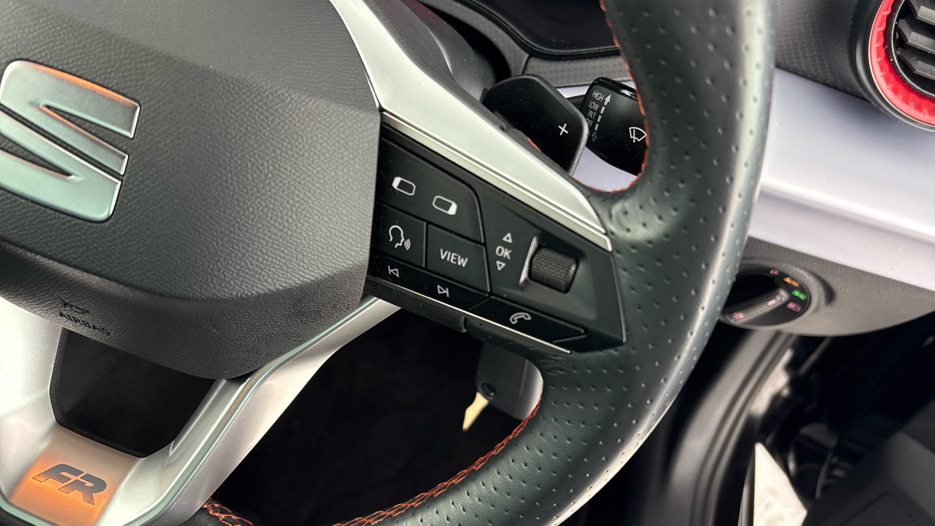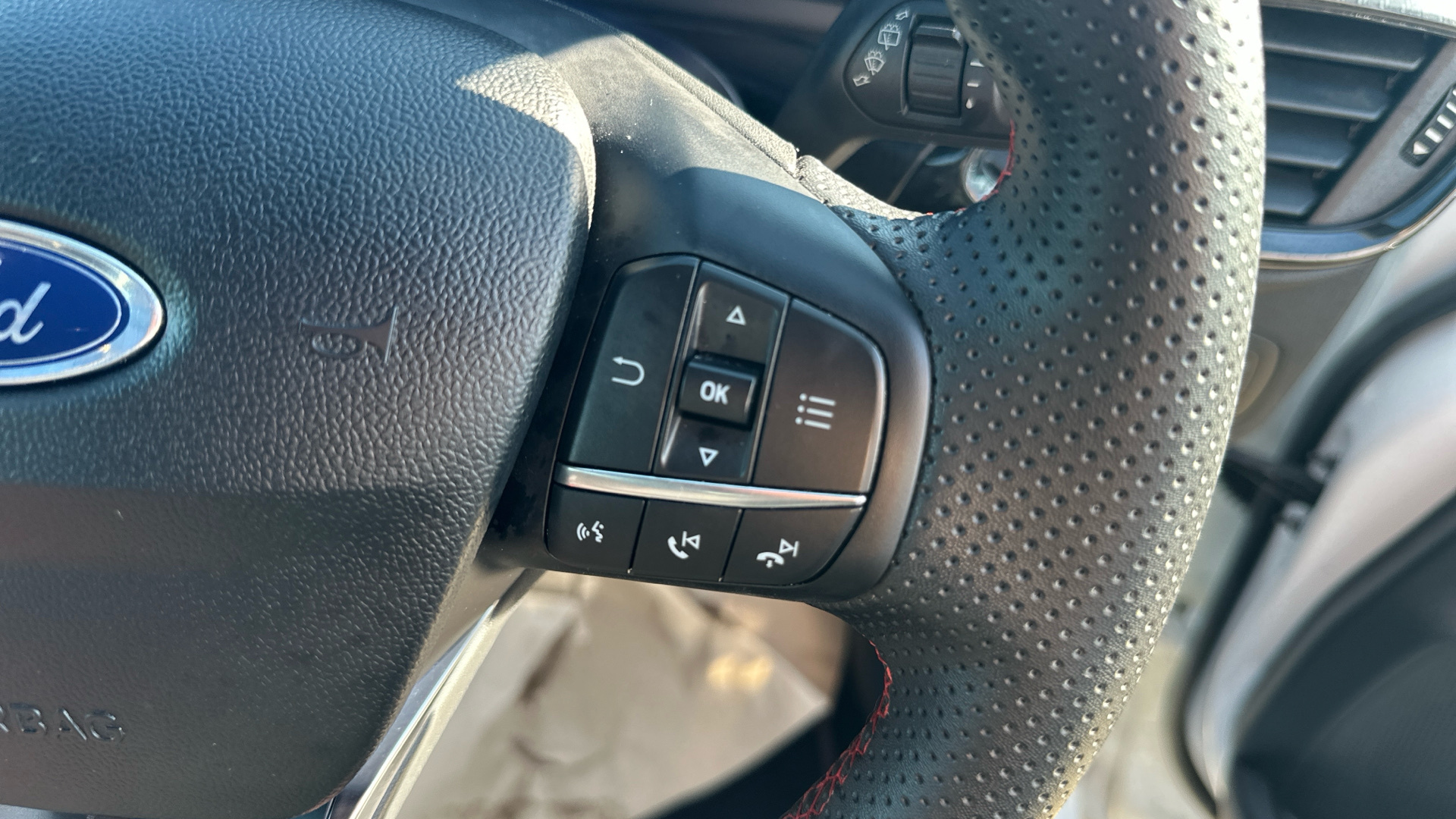 "3 spoke multi-function leather steering wheel",