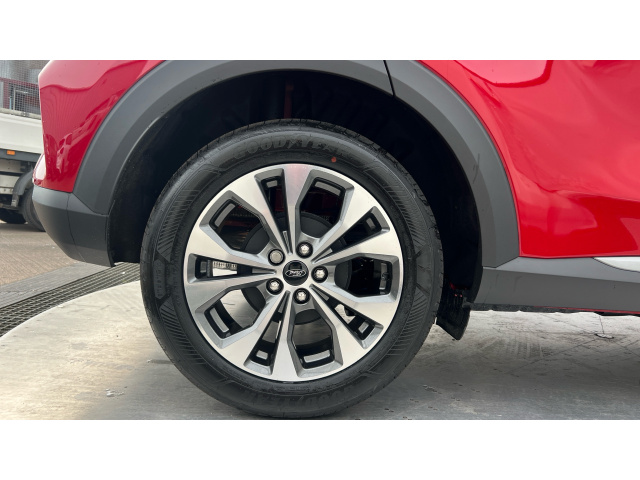 "features": "Driver impairment monitor, Emergency call service, Ford easy fuel, Full digital 12.3\" instrument cluster, Lane keeping aid with lane departure warning, Power assist steering, Selectable drive modes(Normal, sport, Eco, trail, slippery), Speed sign recognition, Standard suspension, 12\" landscape touchscreen display with wireless apple car play and android auto 6 speaker audio system, Ford pass connect and emergency assistance, Ford SYNC4 with connected navigation, Automatic headlights with rain sensing wipers and auto high beam, Front fog lamps, LED daytime running lights, LED rear lamps, Quickclear heated windscreen, Rear privacy glass, Rear side wing doors, Rear wiper, Third brake light, 3 seat bench in 2nd row, Centre console with armrest and stowage, Electronic automatic temperature control (EATC), Ford megabox extended bootspace, Front and rear head restraints, Front floor mats, Manual 4 way driver seat adjust with lumbar adjustment, Single front passenger seat, Titanium cloth upholstery, 3 rear seatbelts, Child safety lock, Electronic stability control (ESC) and hill start assist, Pre-collision assist with autonomous emergency braking, pedestrian/cyclist detection & post-collision braking, Tyre pressure monitoring system (TPMS), Thatcham alarm, 17\" Absolute black machined finish alloy wheel, ",