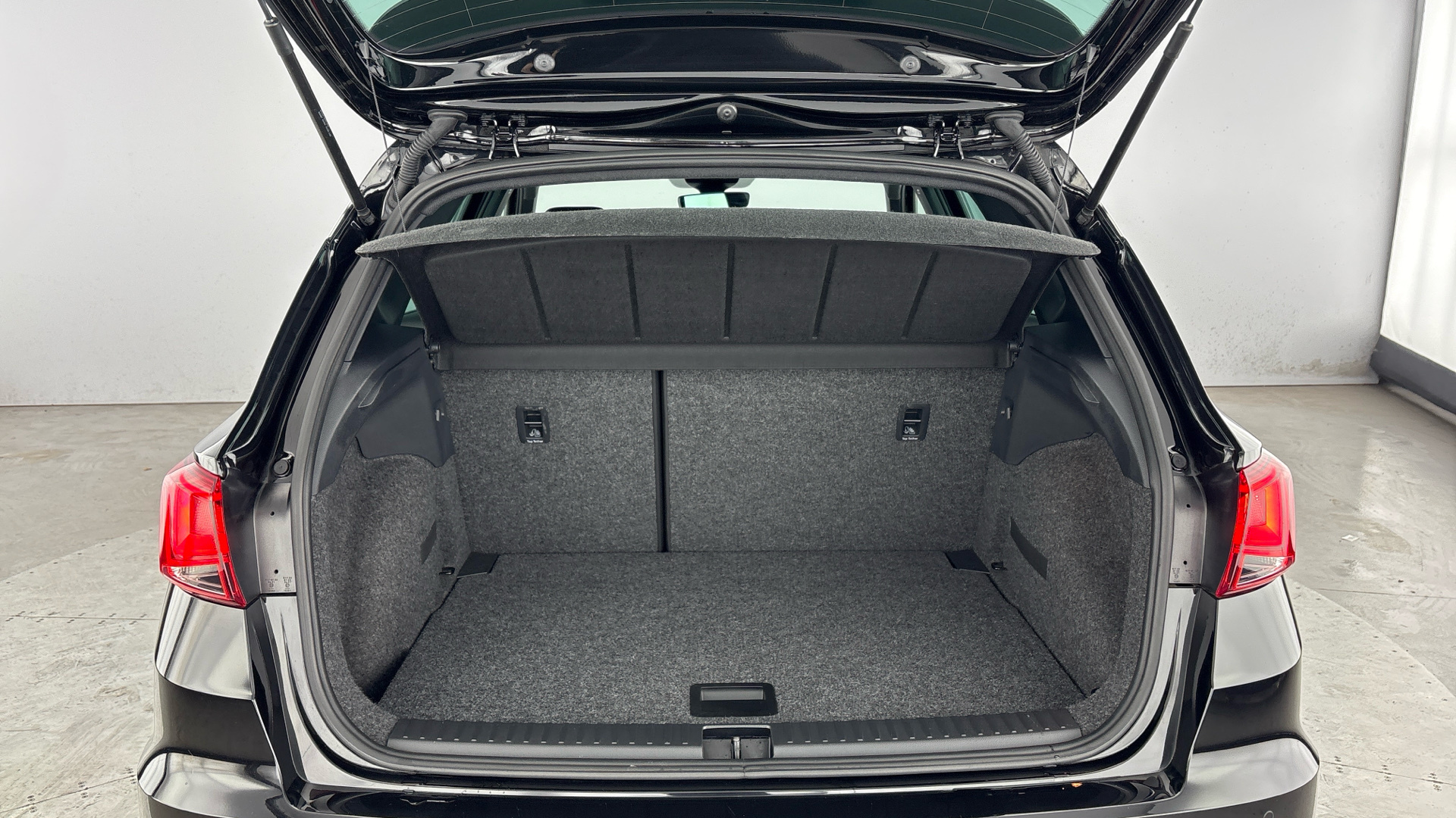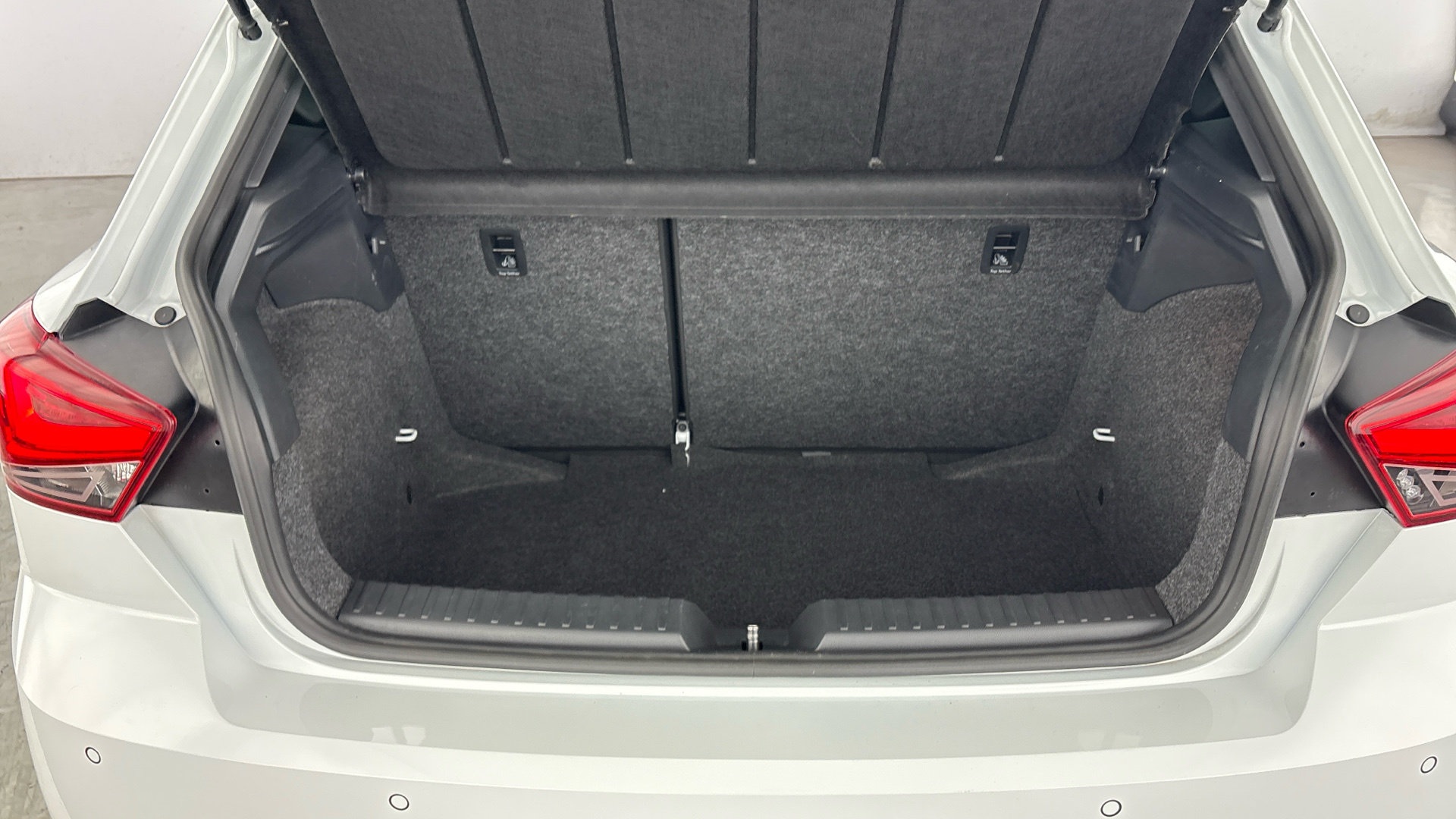 "2 bag hooks in luggage compartment",