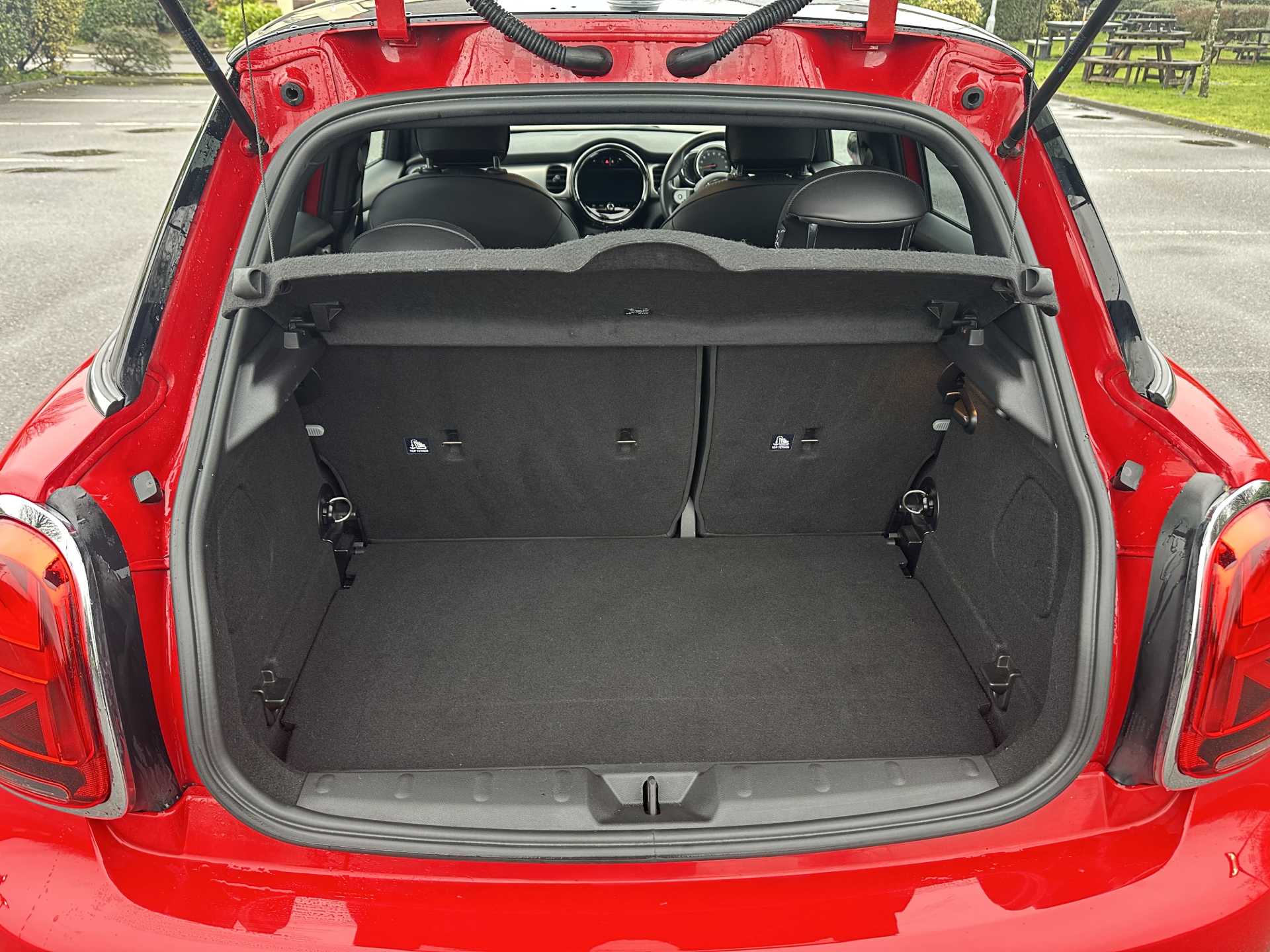 "2 bag hooks in luggage compartment",