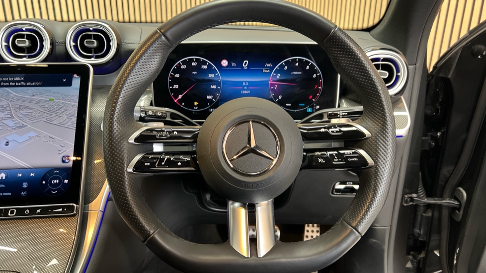 "3 spoke flat bottom AMG steering wheel in nappa leather",