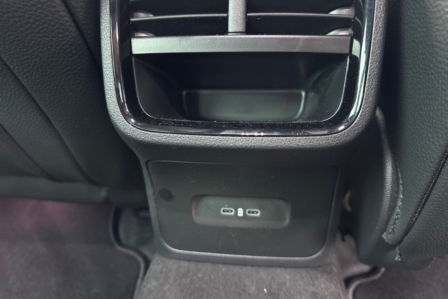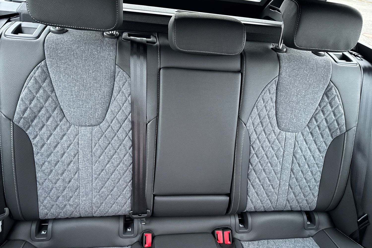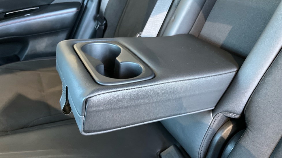 "Rear armrest with storage + cupholders",