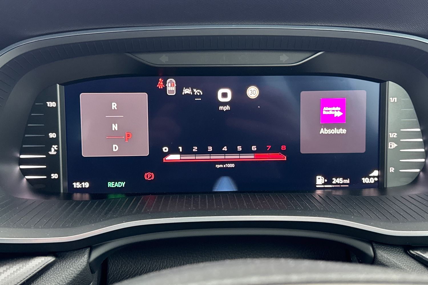 "Chequered flag design instrument cluster",