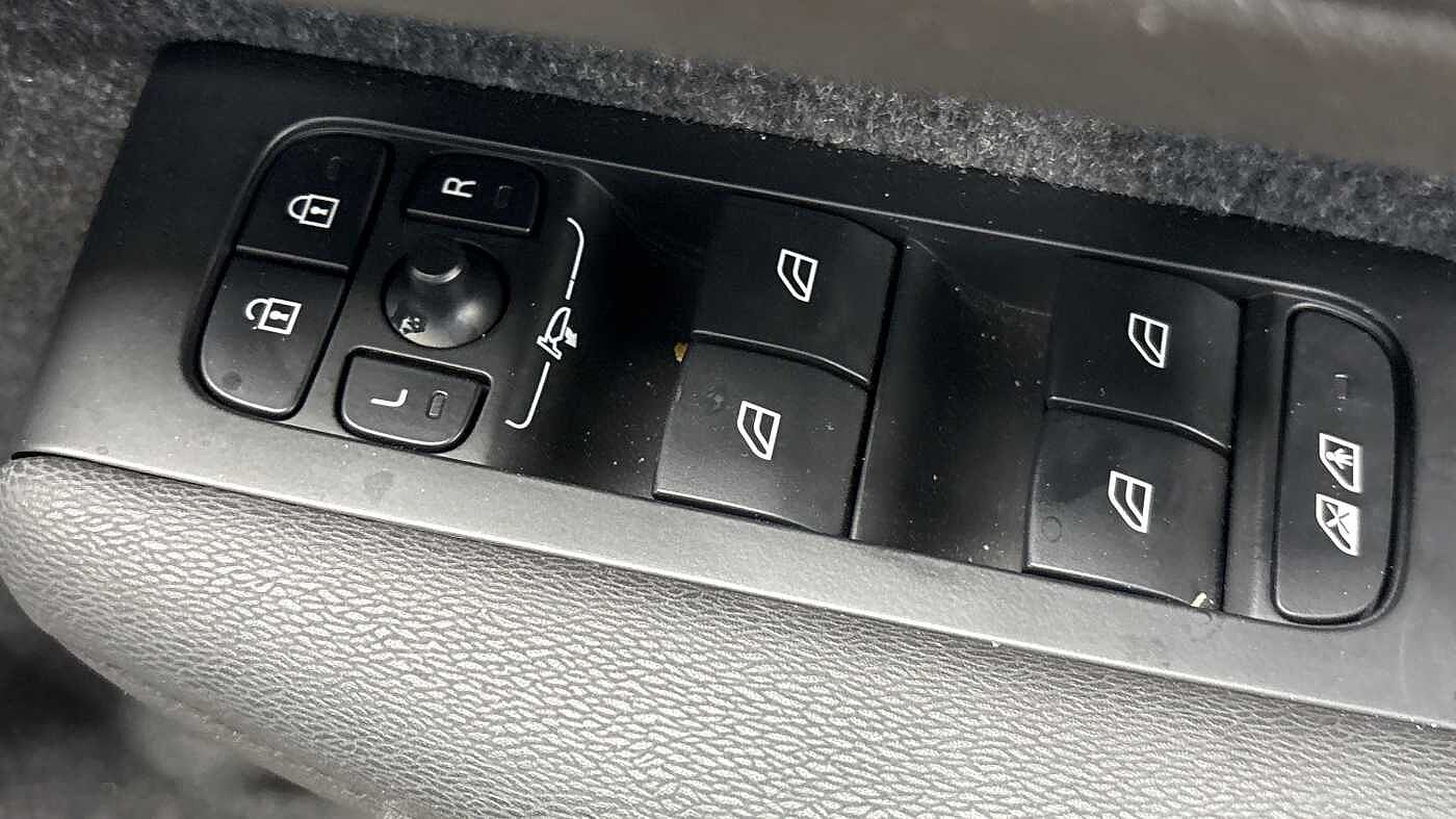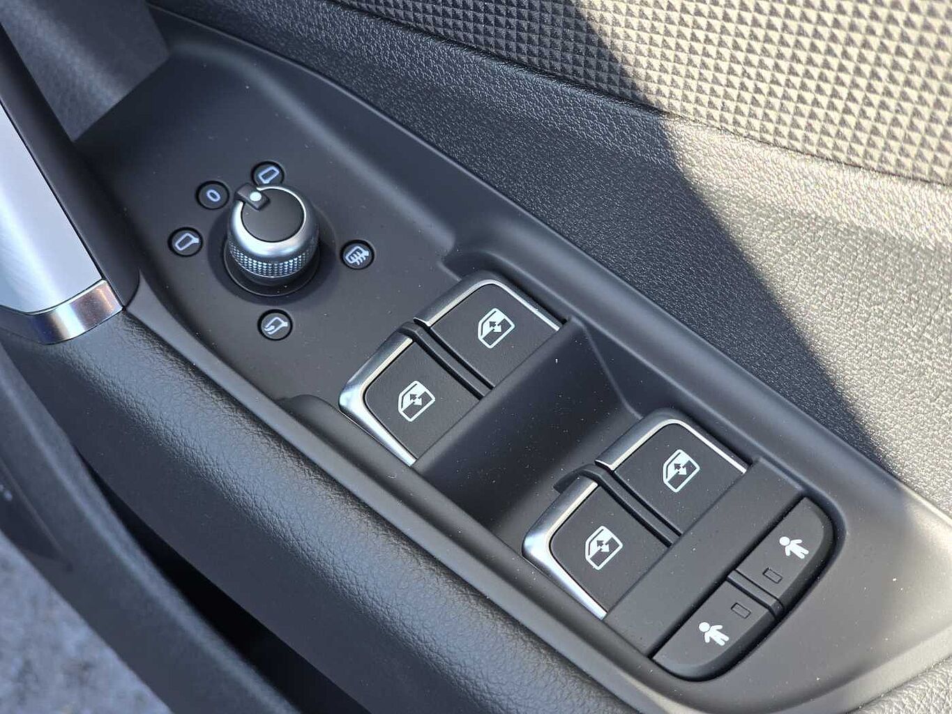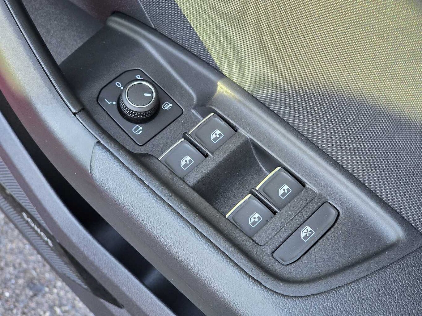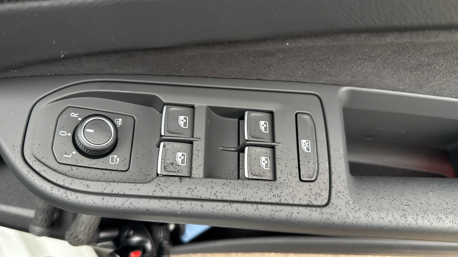 "Window control switches with black trim"