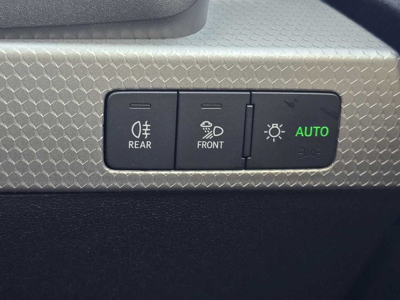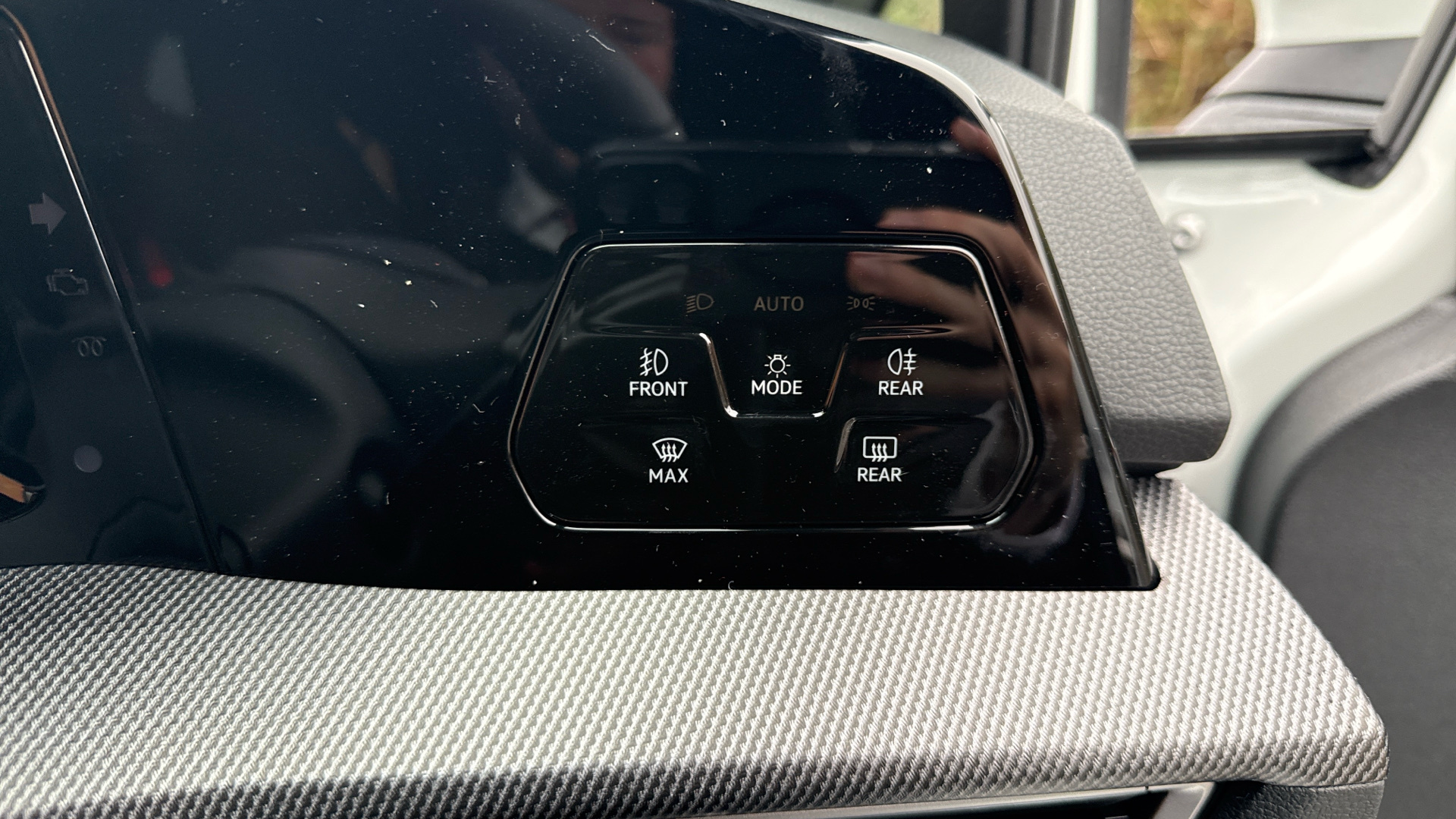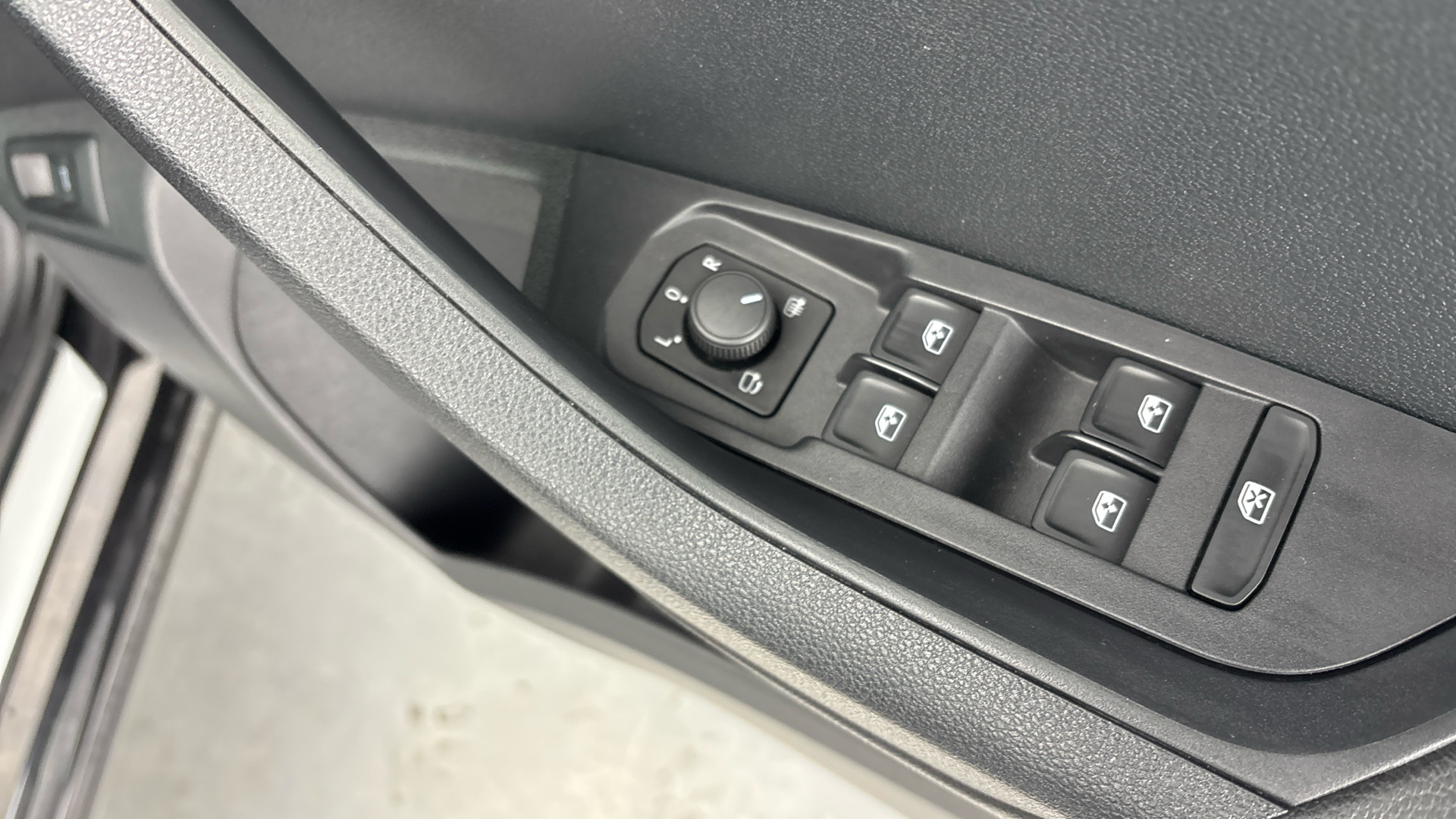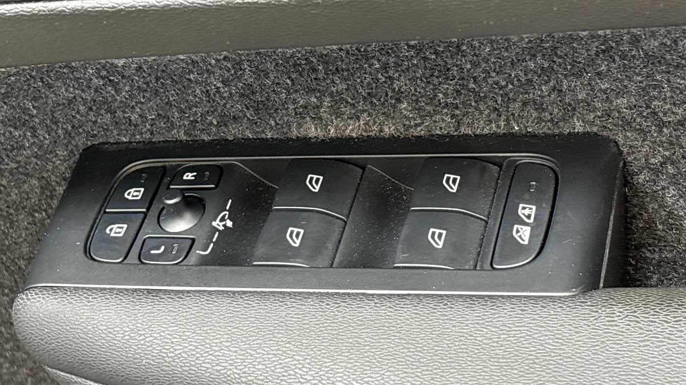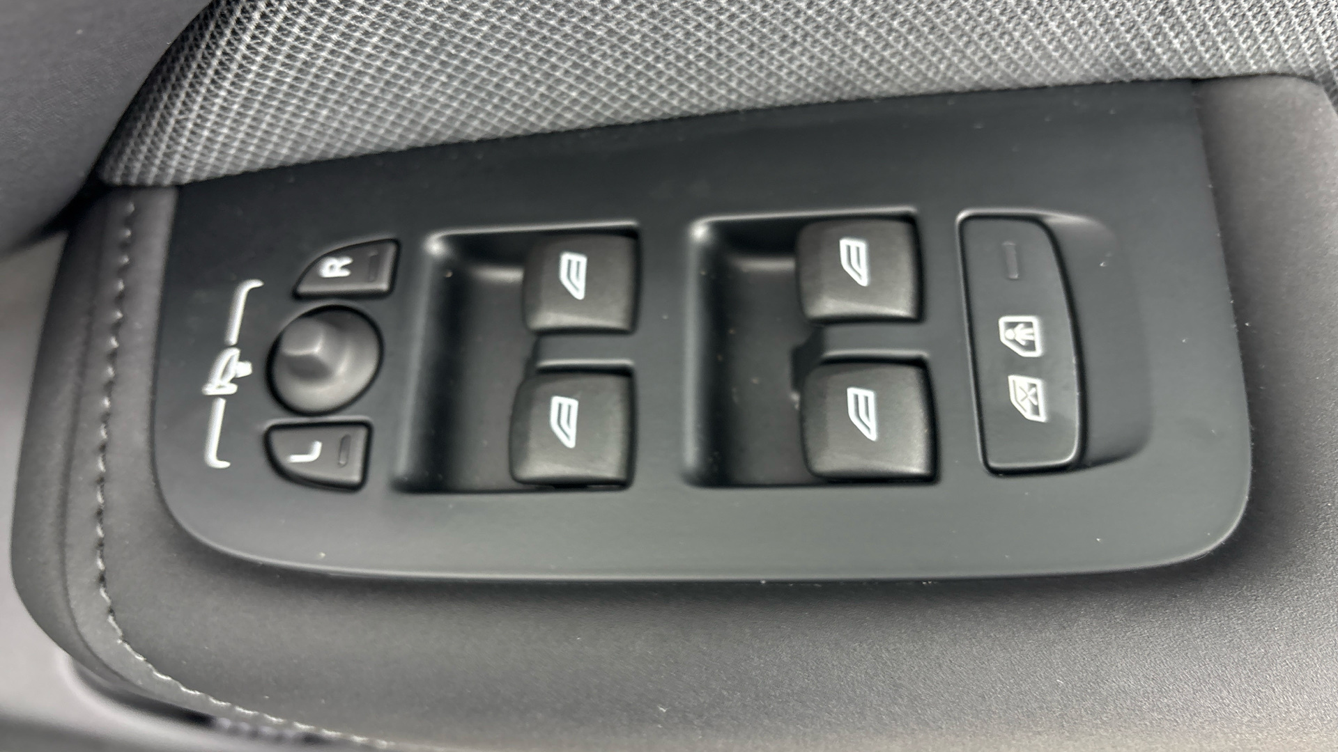 "Window control switches with black trim"