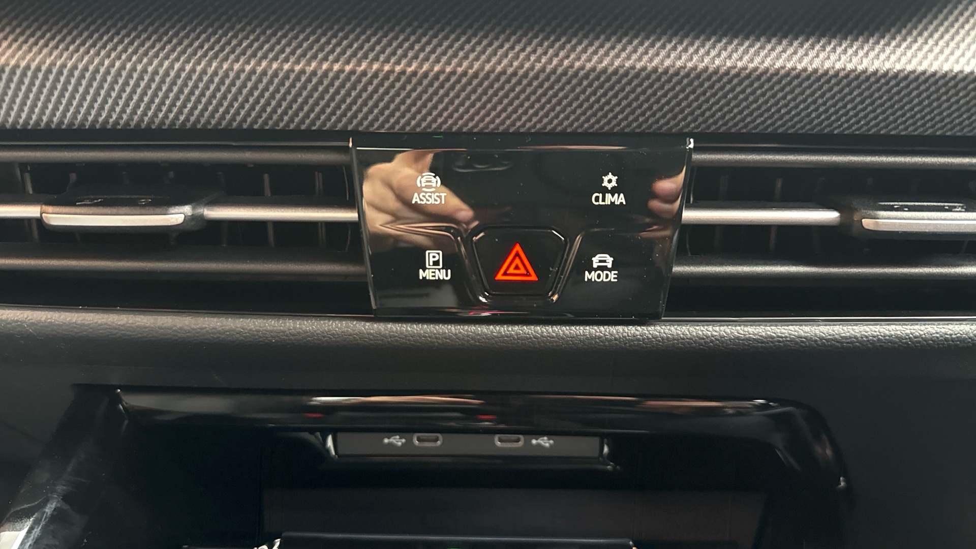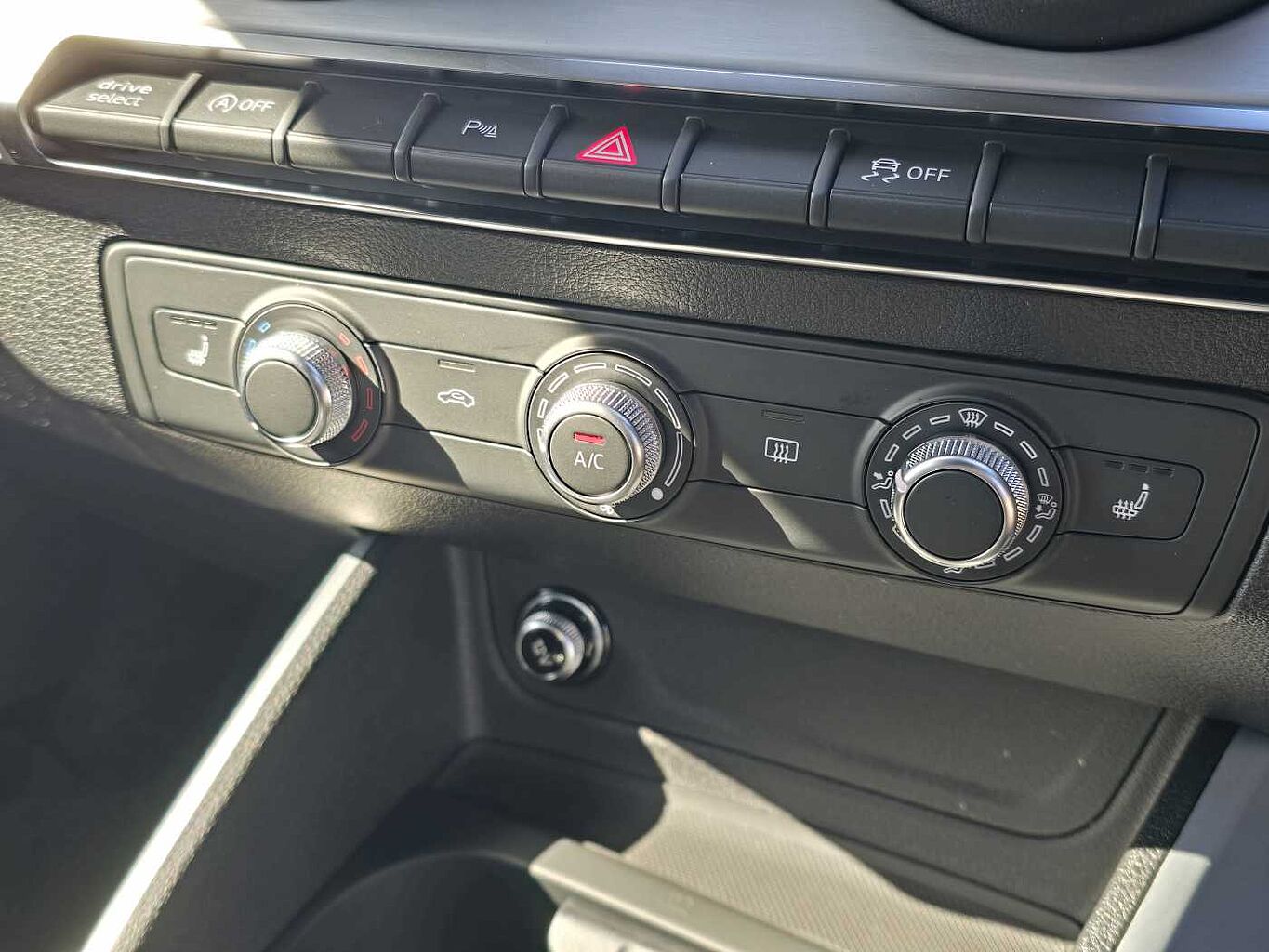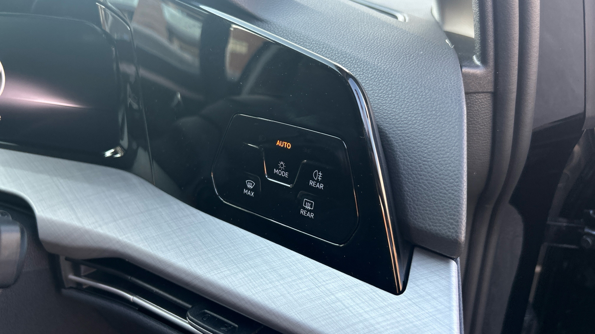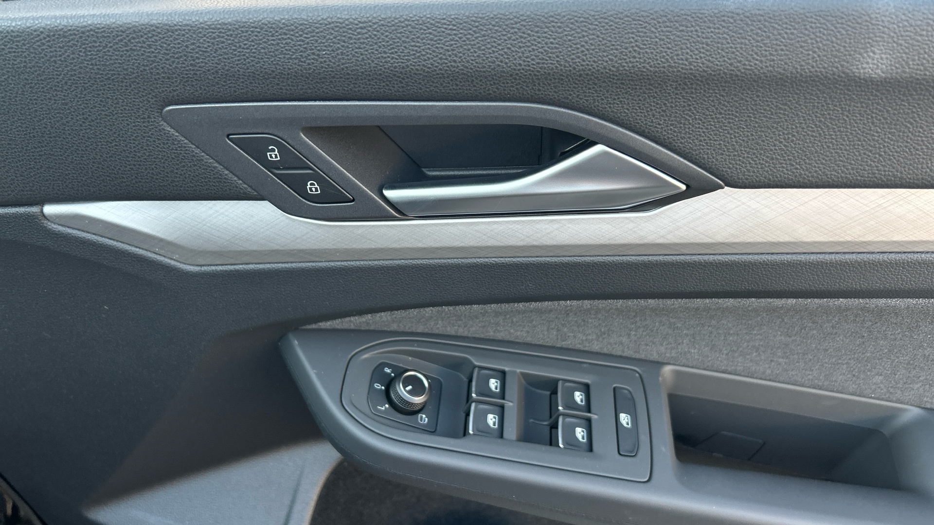 "Window control switches with black trim"