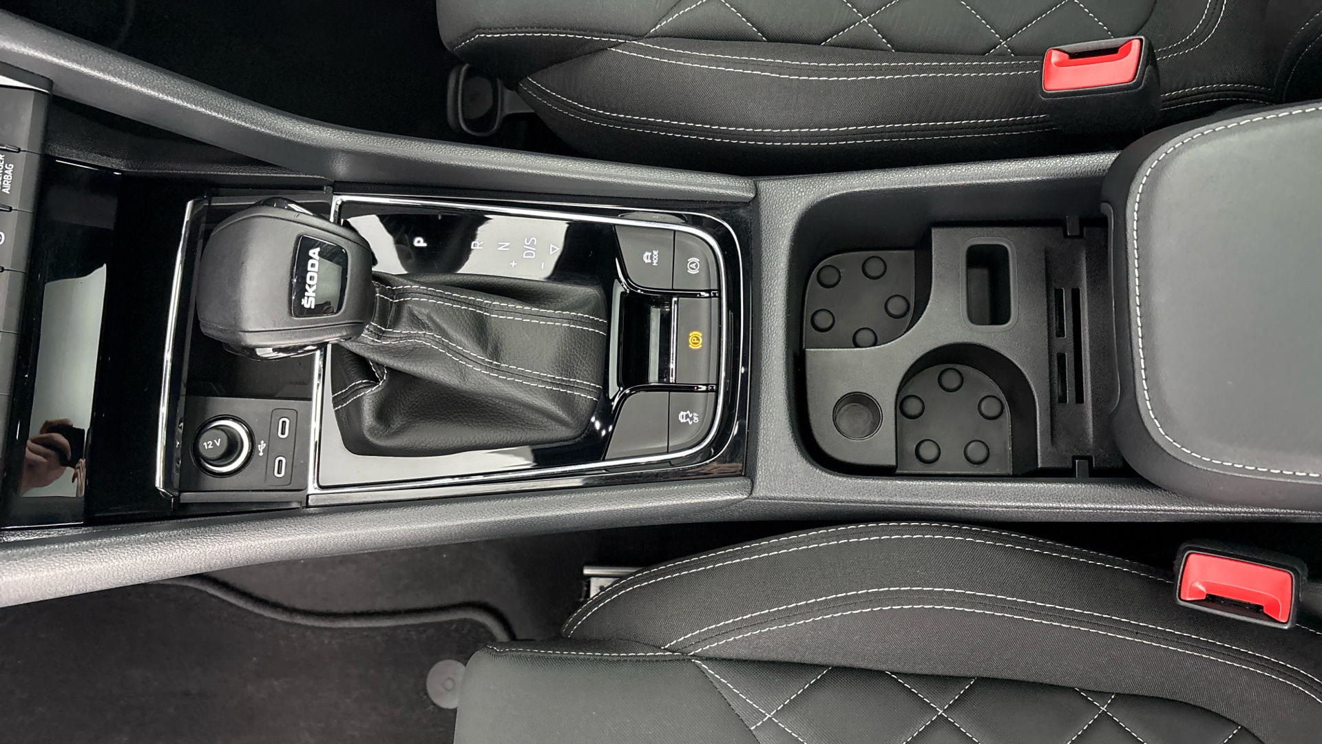 "Front centre armrest with storage compartment, cup holder and 12V socket",