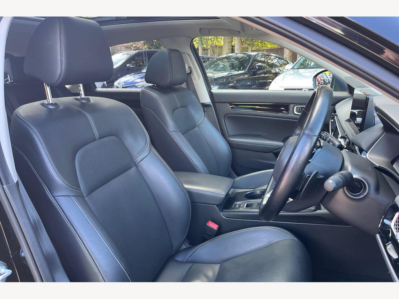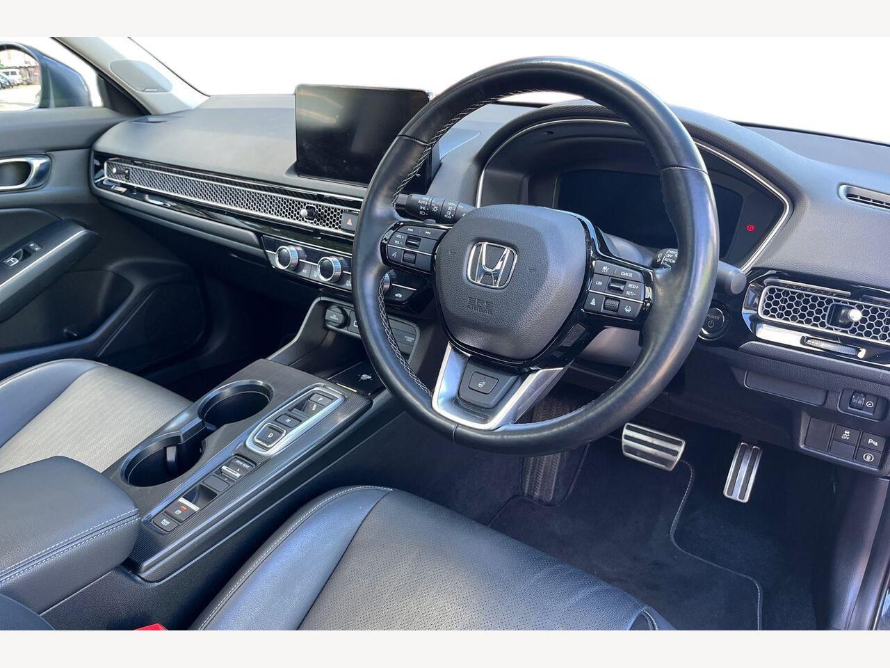 "remarks": "Discover the perfect blend of style, efficiency and advanced technology with the Honda Civic 2.0 e:HEV i-MMD Advance Hatchback in striking Crystal Black. This petrol hybrid model offers an impressive 184 PS, combining powerful performance with exceptional fuel economy, thanks to Honda�s intelligent Multi-Mode Drive system and smooth eCVT transmission. Step inside to experience the luxurious feel of premium black leather upholstery, designed for comfort on every journey. The well-appointed interior is packed with innovative features to enhance convenience and safety. Adaptive Cruise Control ensures relaxed driving on motorways, maintaining a safe distance from vehicles ahead while reducing driver fatigue. Meanwhile, the Blind Spot Information system with Cross Traffic Monitor heightens awareness, giving you confidence when changing lanes or reversing out of tight spaces. Stay connected and on track with Honda CONNECT, featuring integrated navigation that provides real-time traffic updates and route guidance. Whether navigating busy city streets or touring the countryside, this system keeps you informed and entertained. Parking is effortless with eight sensors � four at the front and four at the rear � offering precise assistance to avoid obstacles and park with confidence. The sleek exterior design is complemented by the bold Crystal Black finish, accentuating the Civic�s dynamic silhouette and modern alloy wheels. With Euro 6 emissions compliance and advanced start\\/stop technology, this Civic not only delivers exceptional driving pleasure but also meets stringent environmental standards, making it a responsible choice for the discerning driver. Elevate your driving experience with the Honda Civic 2.0 e:HEV i-MMD Advance Hatchback � where innovation meets refinement for those who demand more from their car. Visit your local Honda dealer today and explore a new level of comfort, safety and efficiency.",