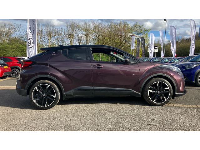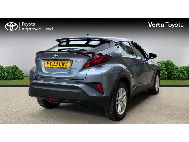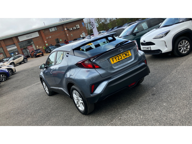 "remarks": "The Toyota C-HR Icon is a masterclass in combining avant-garde, coupe-like styling with the practical efficiency of a self-charging hybrid. This model is finished in Satin Grey, a sleek and contemporary metallic paint that perfectly highlights the C-HR's complex, diamond-cut body lines and muscular wheel arches. Registered in March 2023, this vehicle represents the final, most refined iteration of the first-generation C-HR, offering the highest levels of build quality and updated on-board technology.\n\nAs the Icon grade, this vehicle serves as the gateway to the C-HR range but is anything but basic. It features 17-inch five-double-spoke alloy wheels, LED reflector headlights, and a shark-fin antenna that complements its aerodynamic profile. Inside, the cabin is designed with the driver in mind, featuring an 8-inch high-resolution touchscreen with full smartphone integration (Apple CarPlay and Android Auto), dual-zone automatic air conditioning, and a reversing camera for effortless parking.\n\nThe 1.5-liter self-charging hybrid system delivers a refined and whisper-quiet drive, particularly in urban environments where it can frequently operate in electric-only mode. Because it recharges while you drive, it offers a seamless transition between petrol and electric power without the need for external charging, helping you achieve up to 57.6 mpg with ease.\n\nCrucially, this March 2023 registration is fully eligible for the Service Activated Toyota Warranty. While it is currently covered by its initial 3-year manufacturer warranty, you can continue this official protection for the long term. By simply maintaining the car�s regular service schedule at an authorized Toyota center, the warranty is automatically extended by an additional 12 months or 10,000 miles every year. This protection can continue until the vehicle reaches 10 years of age or 100,000 miles, providing unparalleled peace of mind and protecting the car's future resale value.",