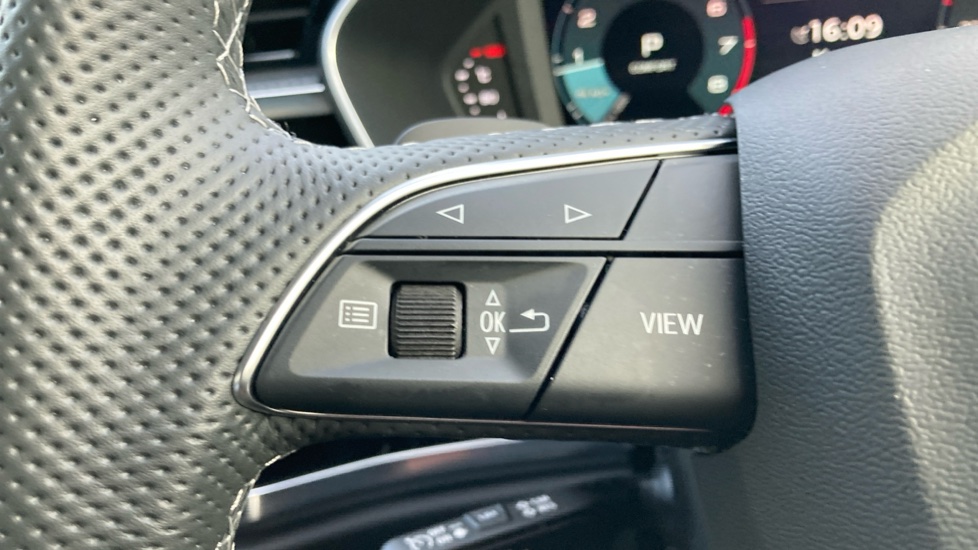 "3 Spoke tailored steering wheel with chrome trim",