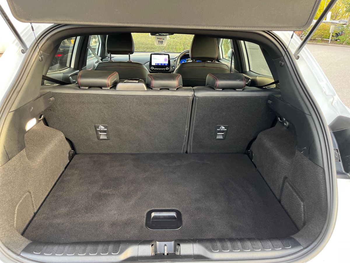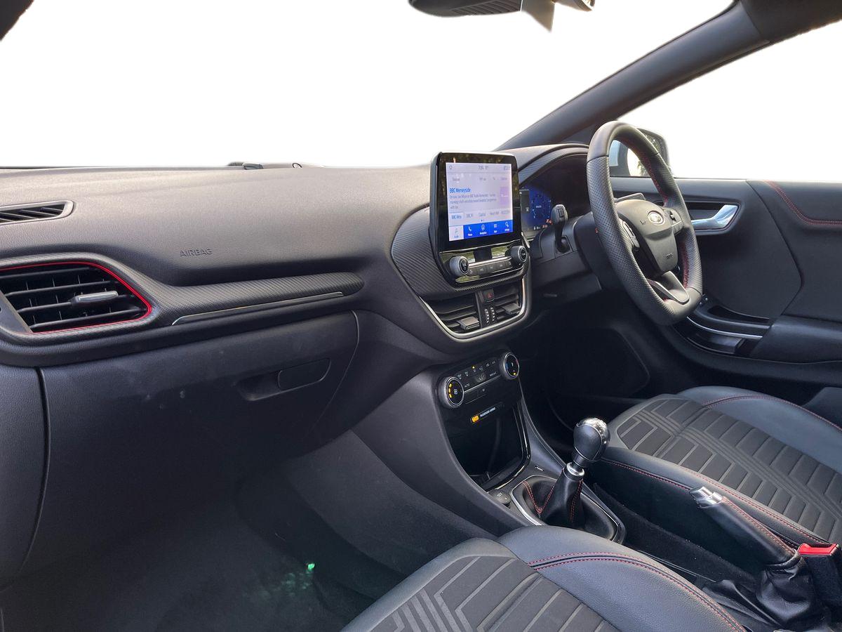 "features": "Cruise control, Ford easy fuel, Full digital 12.3\" instrument cluster, Lane keeping aid with lane departure warning, Power assist steering, Rear parking sensor, Selectable drive modes(Normal, Eco, Sport, Slippery and Trail), Wireless charging pad, Engine sound enhancer, ST suspension, Automatic headlights with rain sensing wipers and auto high beam, Body coloured door mirrors, Dual chrome exhaust, Fixed LED headlamps, Front fog lights with cornering lights and LED rear lamps, Gloss black with chrome elements on front and rear bumpers, High chrome waistline, LED daytime running lights, Power foldable heated door mirrors with puddle lamps, Privacy glass to side rear windows and tailgate glass, Quickclear heated windscreen, Rear wiper, ST scuff plates, Unique ST elements to front and rear body styling kit including Ford Performance embossed splitter, Alloy sports pedals, Centre console with armrest and stowage, Ford megabox extended bootspace, Front and rear floor mats, Front and rear head restraints, Heated front seats, Heated steering wheel, Lumbar massage for driver and passenger, Manual air conditioning, Premium sensico wrapped instrument cluster, Recaro sport seats partial leather upholstery, ST flat bottomed steering wheel with metal grey stitching, ST logo projection, Unique ST gear shift knob, B&O Premium Audio system + Ford SYNC 3 navigation pack - Puma, Comfort pack - Puma, 3 rear seatbelts, Electronic stability control (ESC) and hill start assist, Pre-collision assist with autonomous emergency braking, pedestrian/cyclist detection & post-collision braking, Red brake calipers, Tyre pressure monitoring system (TPMS), Thatcham alarm, Carbon look interior deco spears, Tyre inflation kit, ",