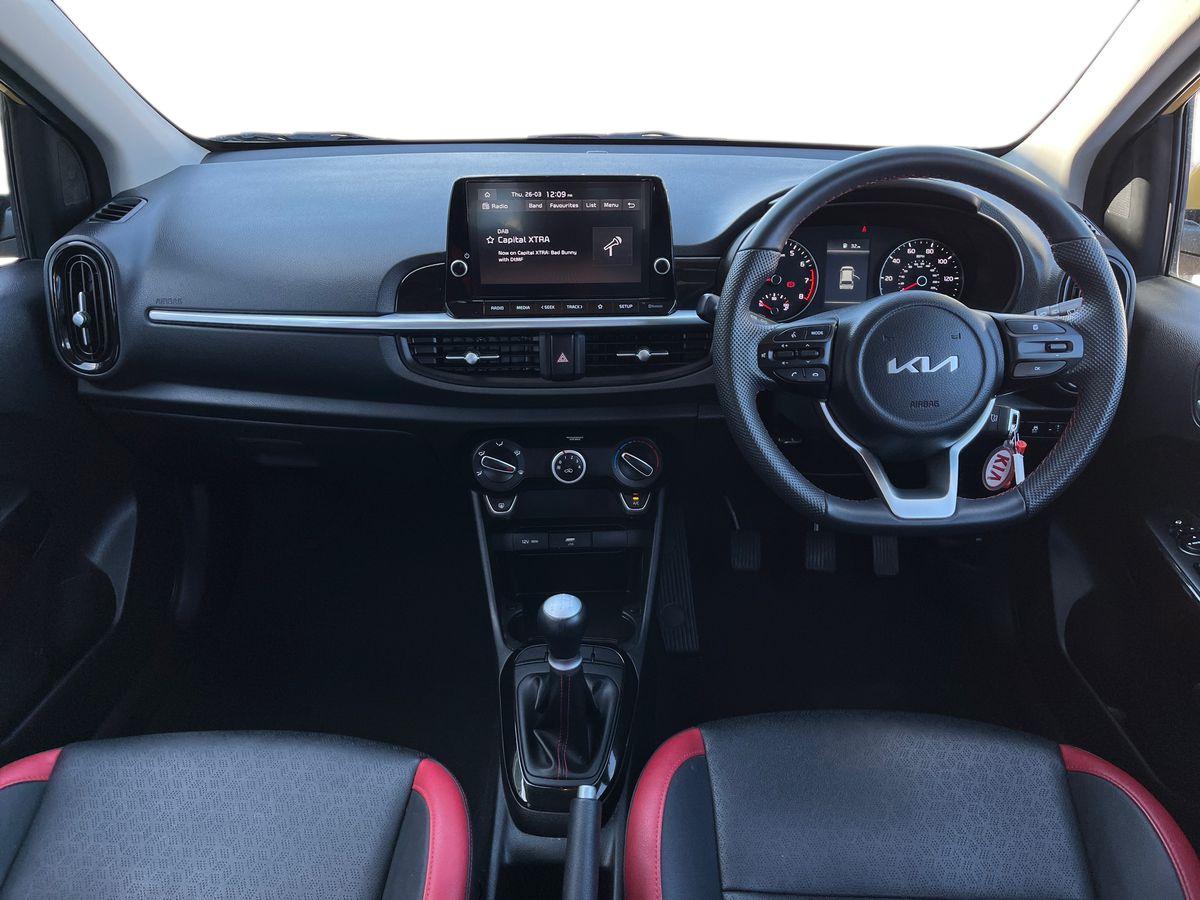 "features": "4.2\" supervision colour cluster display, 8\" touchscreen navigation, Apple car play/Android Auto with voice control, Cruise control + speed limiter, Drive mode selector, Electric power steering, Emergency stop signalling system, External temperature display, Forward Collision-Avoidance Assist (FCA) - City/Pedestrian/Cyclist, Kia connected services featuring TomTom live, Lane keeping assist system (LKAS), Driver attention warning (DAW) and High beam assist (HBA), Rear parking sensor, Reversing camera system, Trip computer, UVO connect, Intelligent Stop and Go, Audio system with 6 speakers, Bluetooth with music streaming, Front USB port, Rear USB port, Steering wheel mounted controls, Aero blade type windshield wipers, All round electric windows with drivers auto up/down function, Automatic defog system, Automatic headlights control, Black rear spoiler with high mounted braking light, Black side sill, door garnish and wheel arch trims, Black/body colour bumpers, Body coloured exterior door handles, Chrome side window trim, Electrically adjustable/heated/folding door mirrors with LED indicators, Front and rear silver skid plates, Gloss black door mirrors with matt black lower housing, GT-Line body kit, Headlight levelling device, Heated rear window, High gloss black and satin radiator grille, LED Bi-function projection headlights with static bending, LED daytime running lights, LED front fog lights, LED rear combination lights, Privacy glass - Rear windows and tailgate, Rear fog lights, Rear wash/wipe, Roof rails, Shark fin antenna, Solar windshield glass, Speed variable front wipers, Tinted glass, Welcome and follow-me home light functionality, Windscreen Washer Level Warning, 12V power point front, 60/40 split folding rear seat, Air filter, All-round height adjustable headrests, Aluminium pedals, Automatic air conditioning, Centre armrest storage box, Centre console with cupholders, D-Cut perforated leather trimmed steering wheel, Dash illumination dimmer switch, Driver's seat height adjuster, Dual Height Luggage Area Floor, Front and centre cabin lights, Front and rear door map pockets with bottle holder, Gear shift indicator, Glovebox illumination, GT-Line cloth/faux leather upholstery, ISOFIX Child seat top tethers and anchor fixings outer rear seats, Leather trimmed gearshift, Luggage area light, Luggage area parcel shelf, Luggage net with hooks, Overhead console lamp, Overhead console with sunglasses cases, Passenger front seatback pockets, Satin chrome interior door handles, Sunvisors with vanity mirror illumination (Driver and front passenger), Tilt/telescopic adjustable steering wheel, ABS with Electronic Brakeforce Distribution (EBD) and Brake Assist System (BAS), All round 3-point seatbelts, Electronic stability control (ESC) and vehicle stability management (VSM), Front passenger airbag cut-off switch, Front seatbelt pretensioners + load limiters, Height adjustable front seatbelts, Hill start assist control (HAC), Impact sensing auto door unlocking, Rear seat Occupancy alert, Seatbelt reminder warning, Twin curtain airbags, Twin front airbags, Twin front side airbags, Tyre pressure monitoring system, Alarm system, Door deadlocks, Engine immobiliser, Locking wheel nuts, Remote central door locking with fold away key, Speed sensitive auto door locking, Visible vehicle identification number, High gloss black centre fascia, 17\" GT-Line alloy wheels, Tyre mobility kit, ",