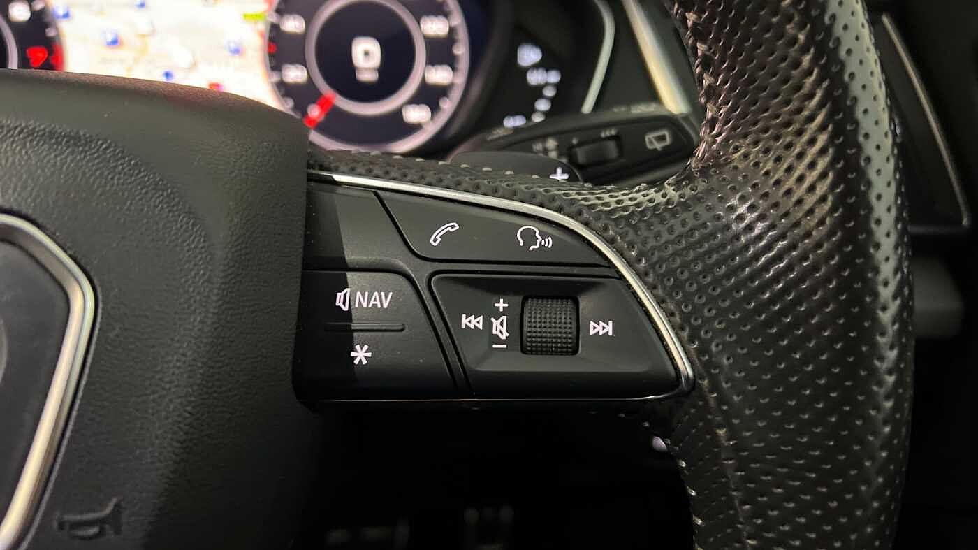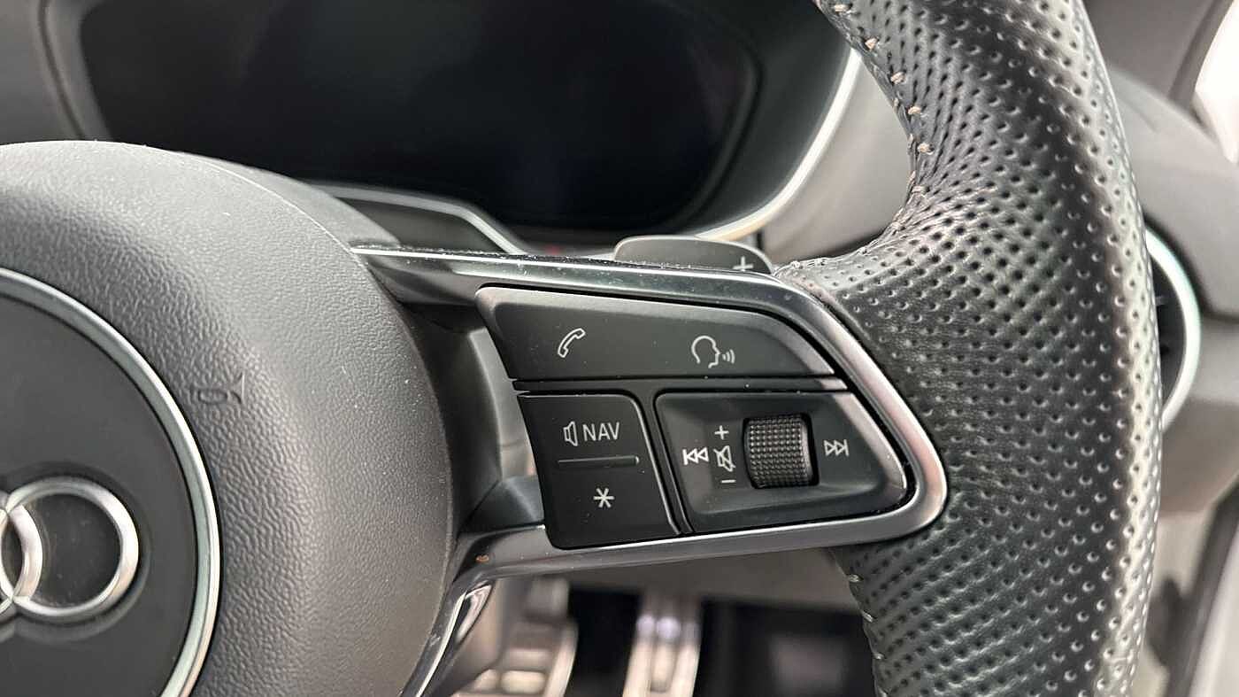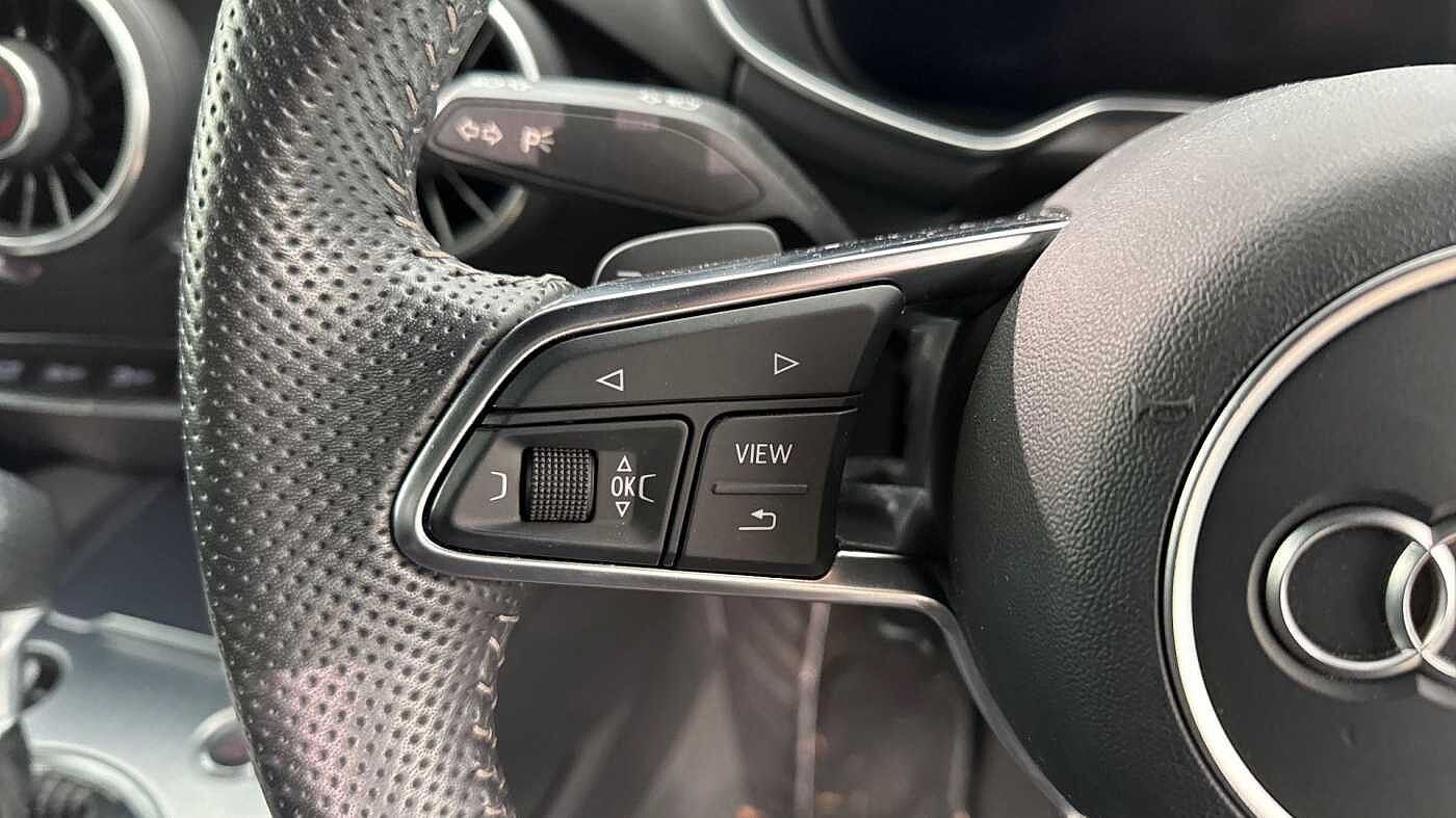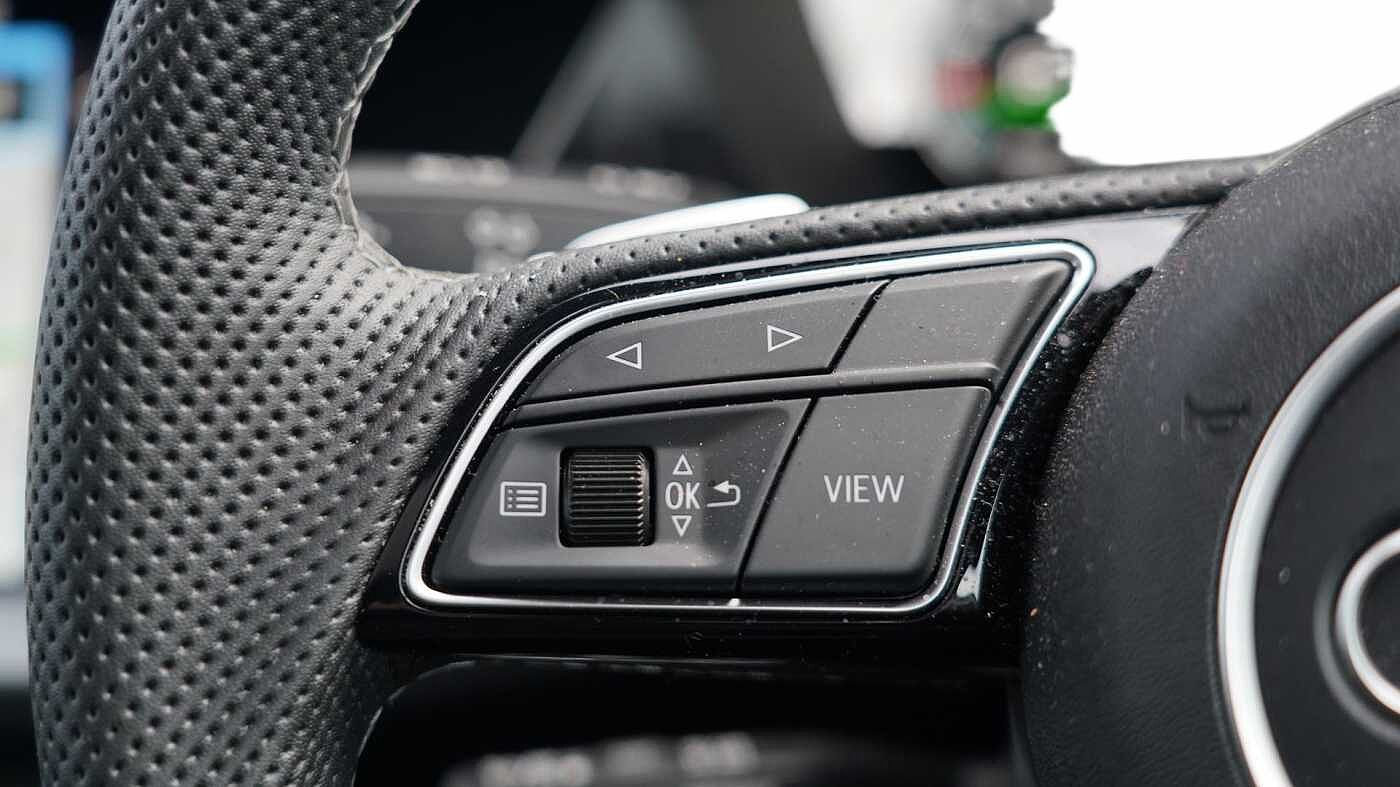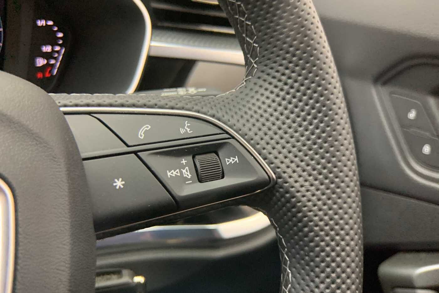 "Three spoke leather trimmed multifunction steering wheel with R logo and gear knob gaiter",