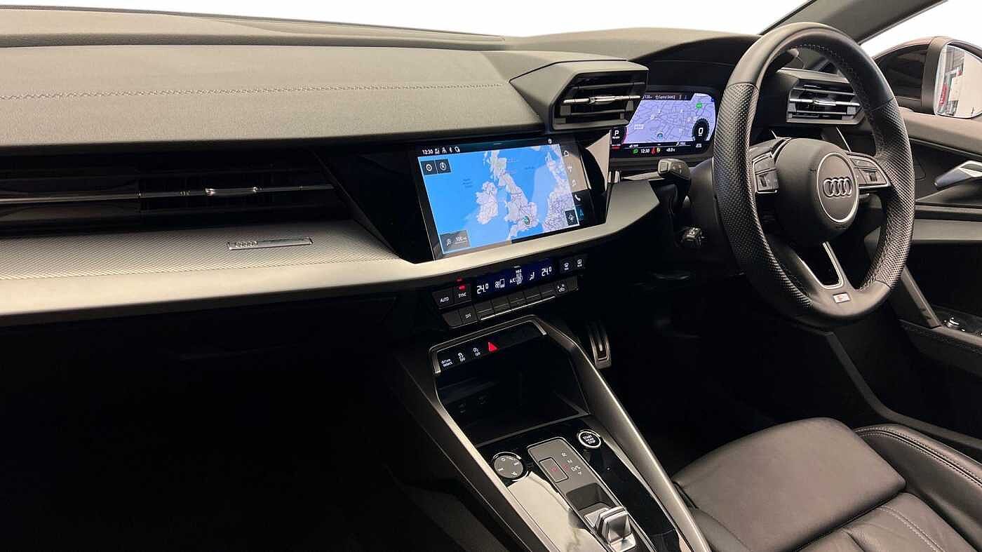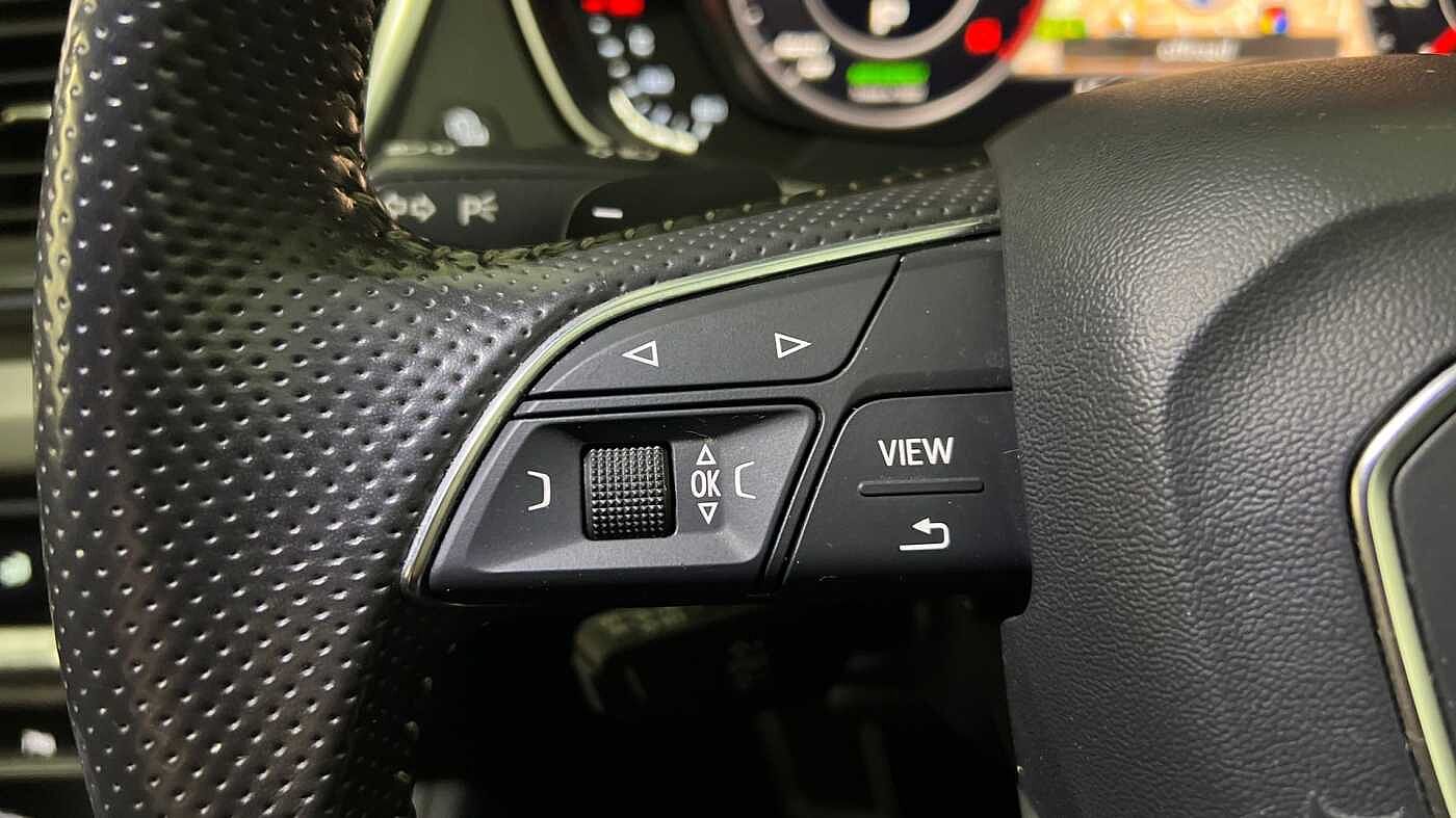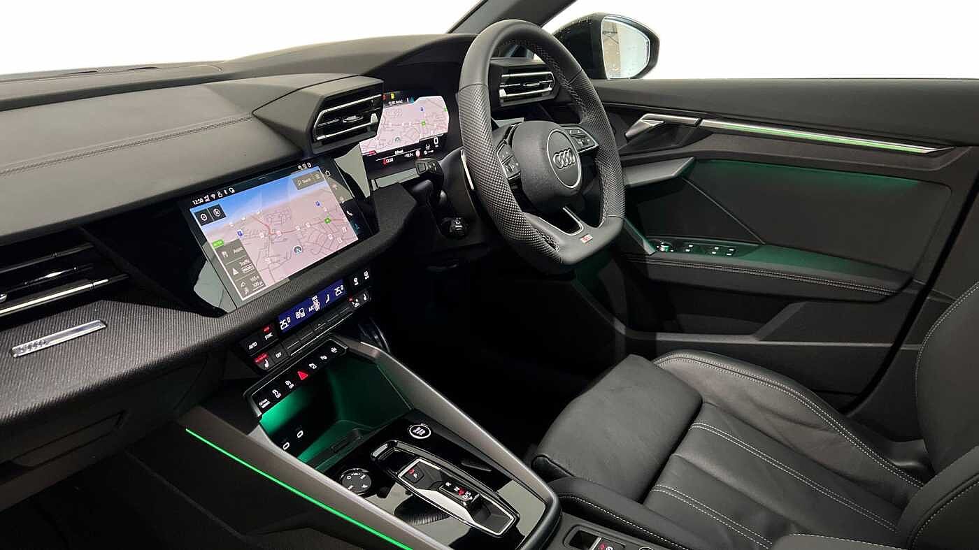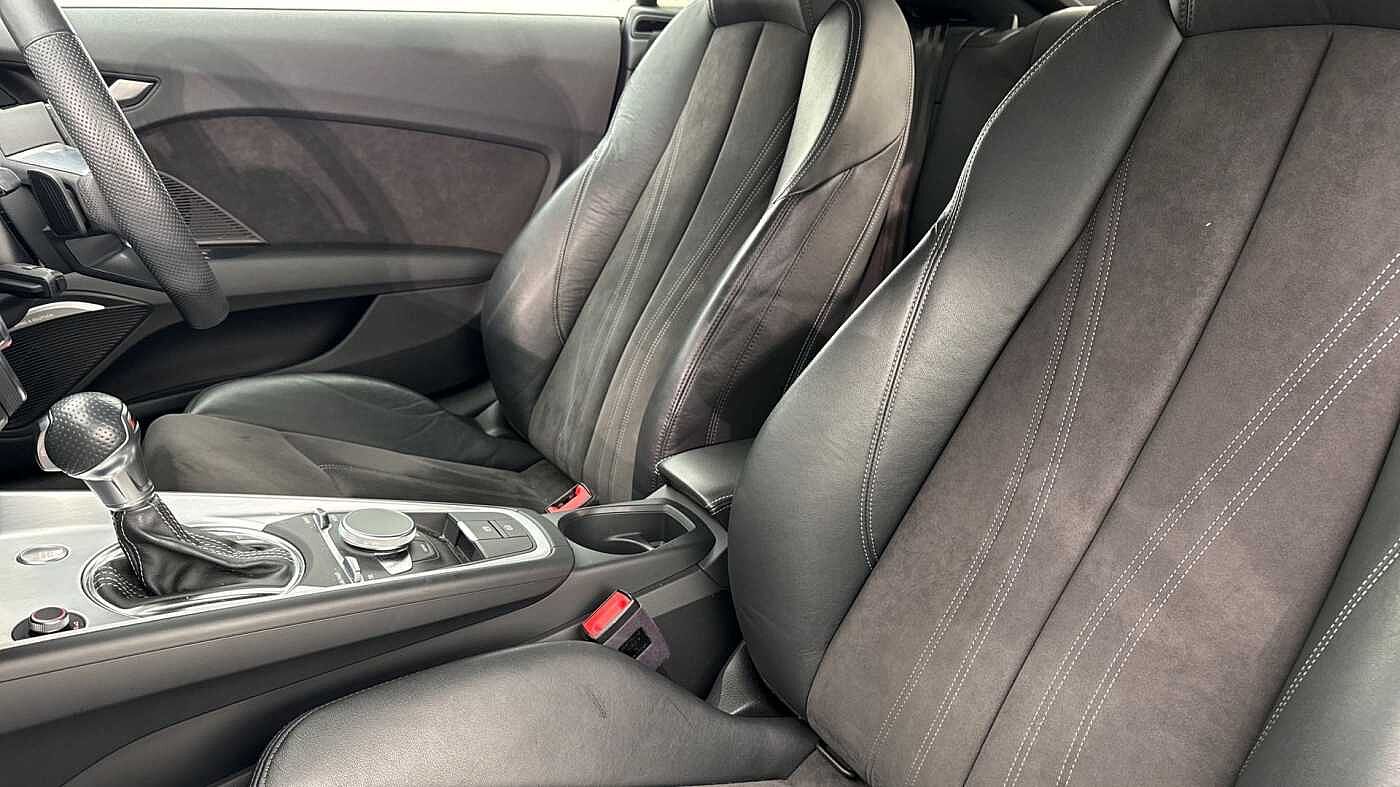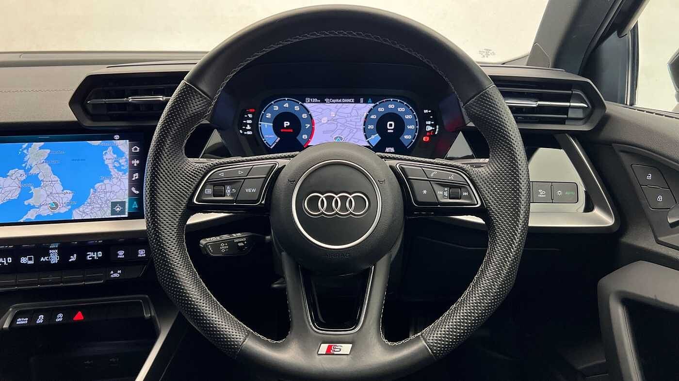 "Three spoke leather trimmed multifunction steering wheel with R logo and gear knob gaiter",