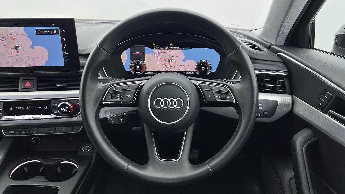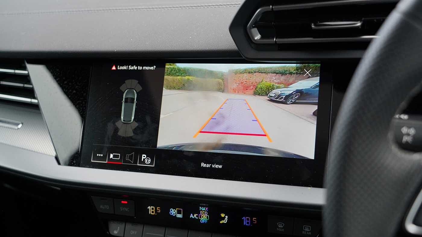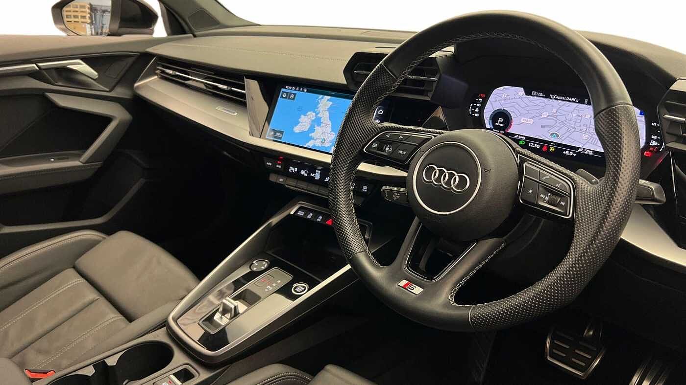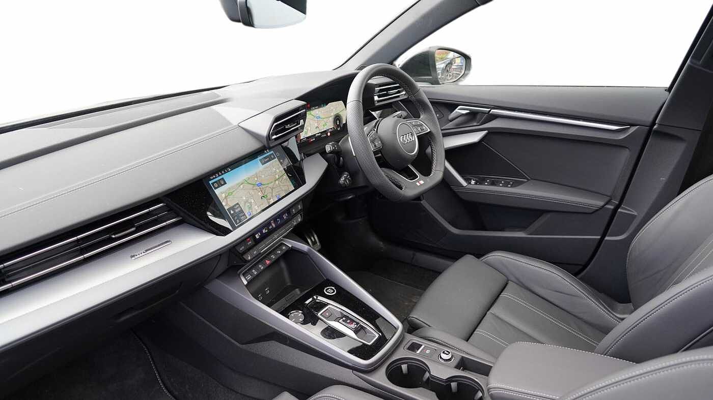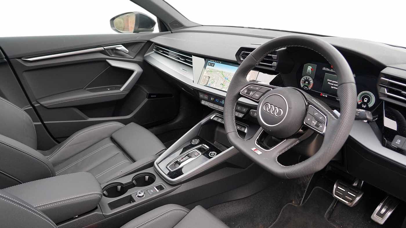 "Three spoke leather trimmed multifunction steering wheel with R logo and gear knob gaiter",