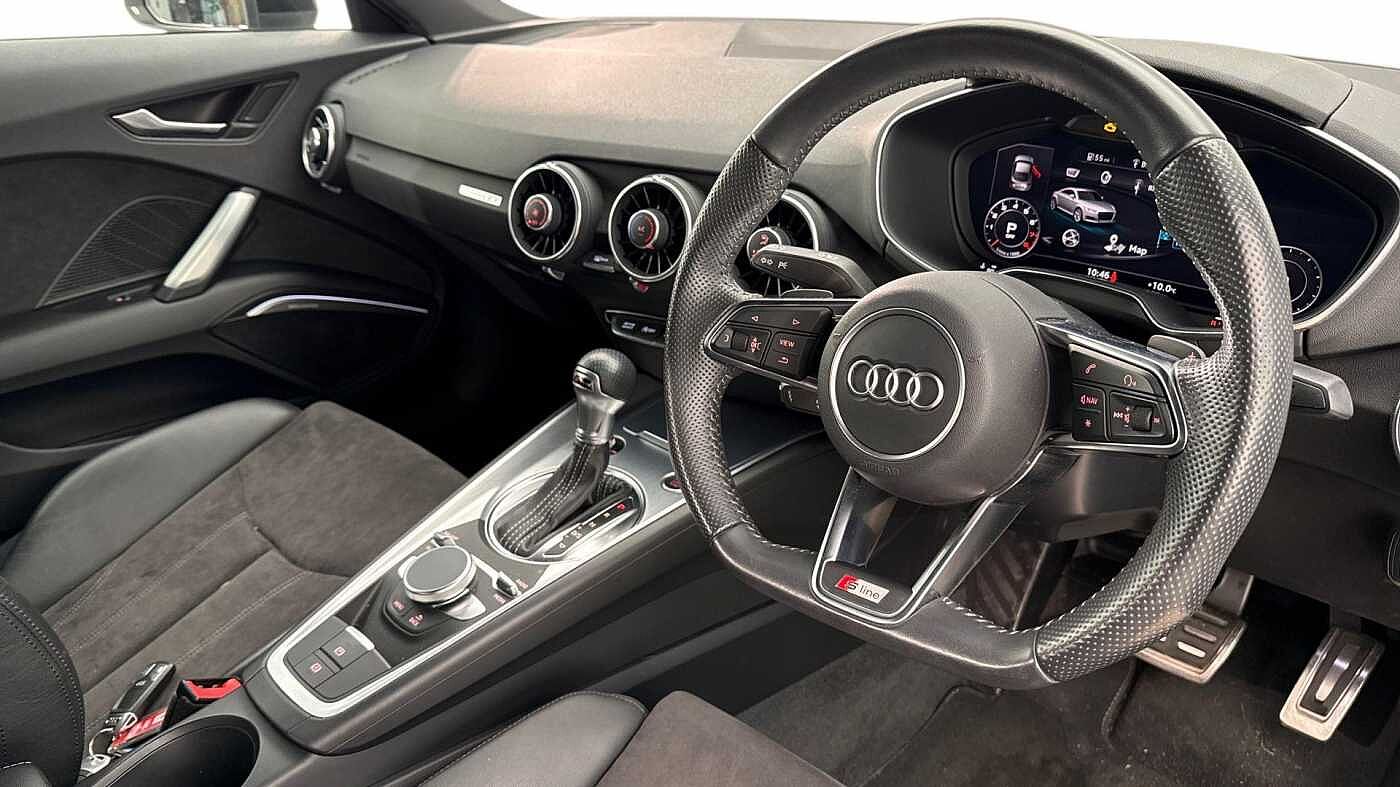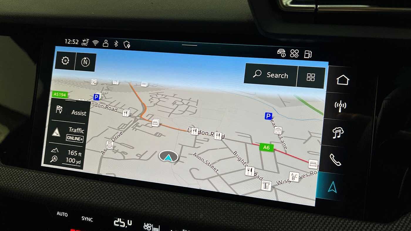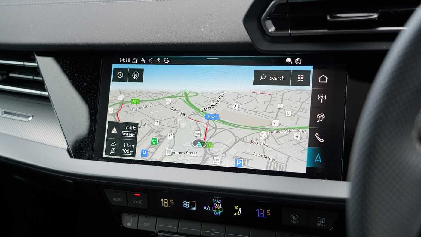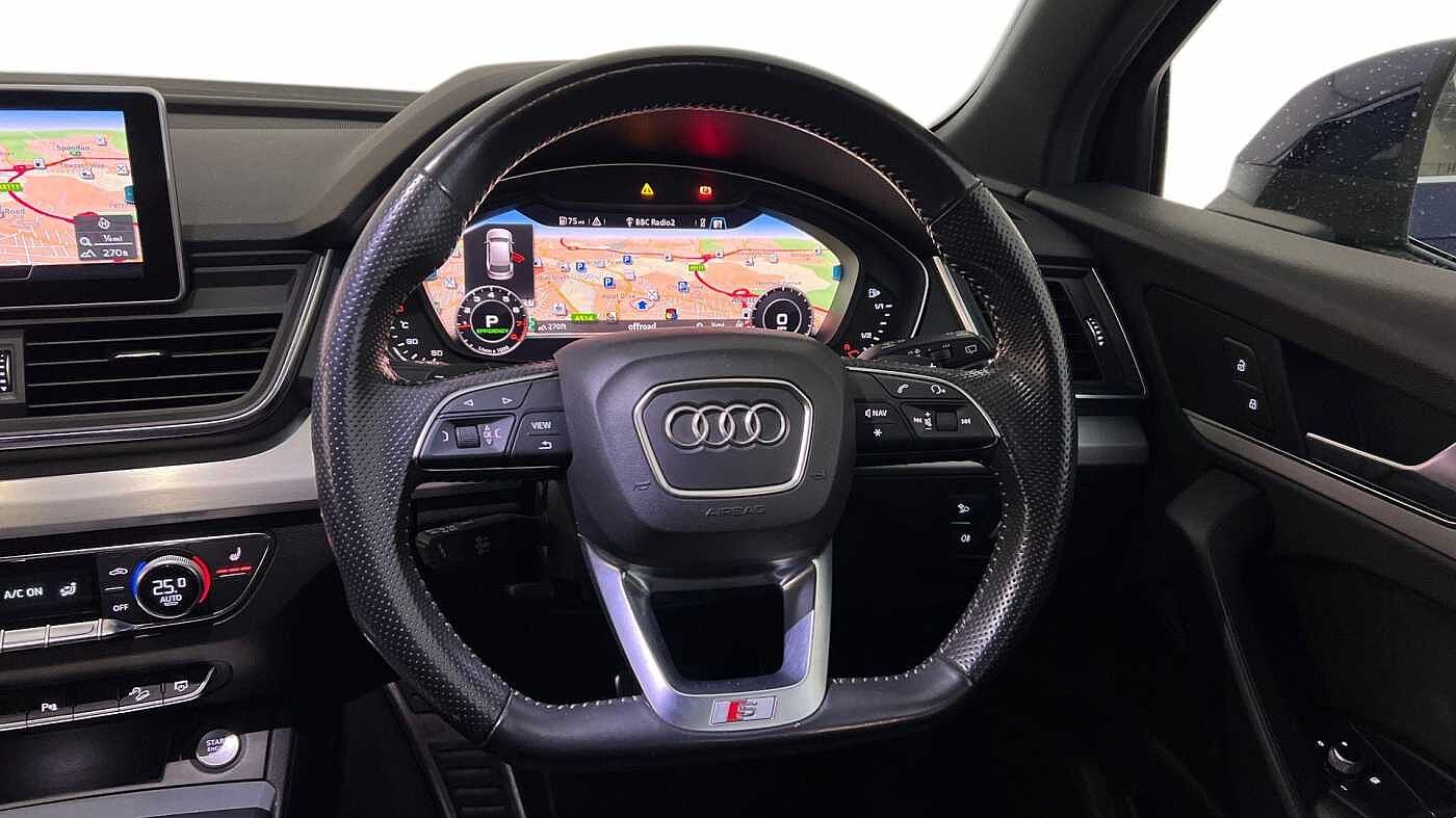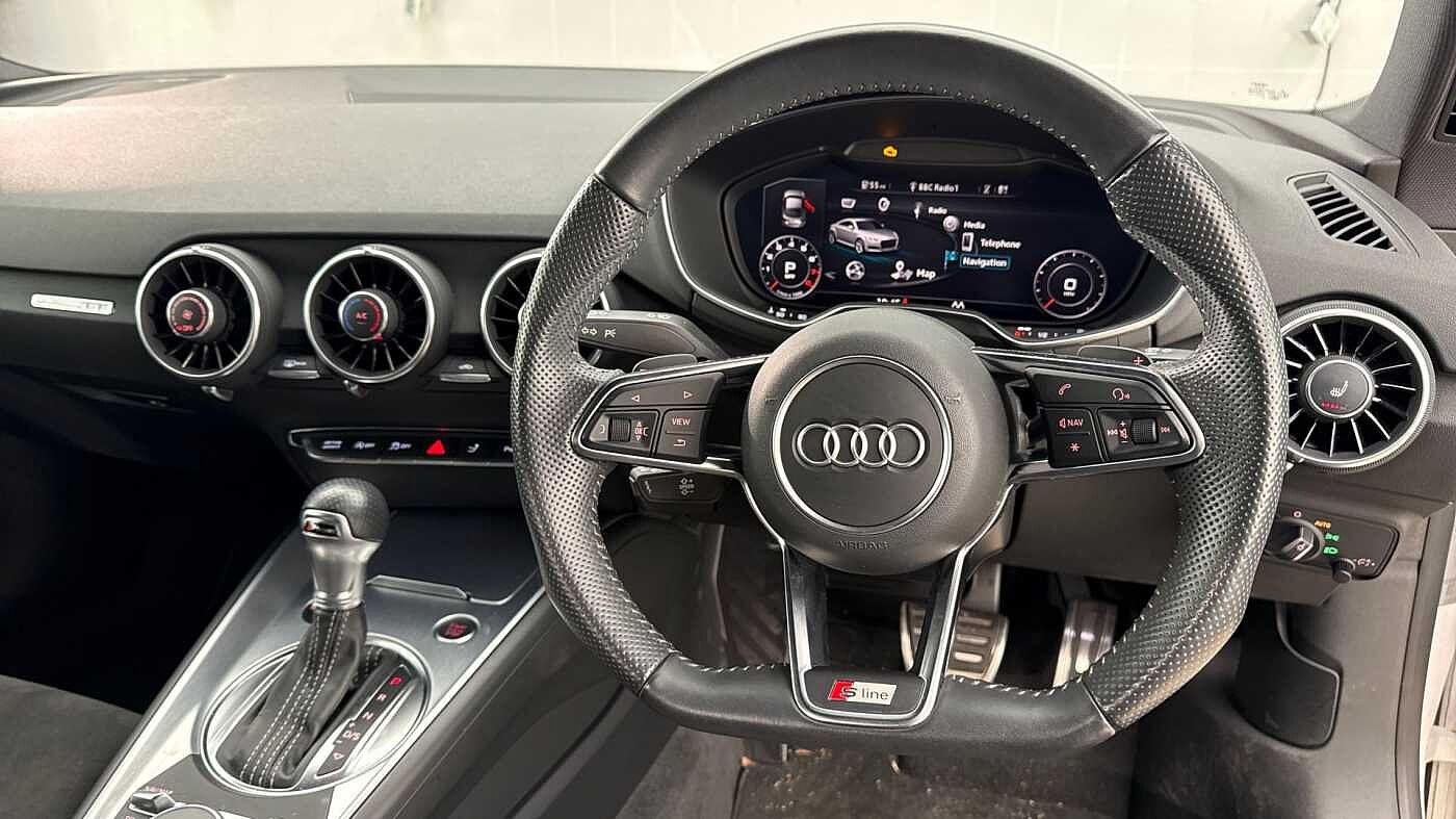 "Three spoke leather trimmed multifunction steering wheel with R logo and gear knob gaiter",
