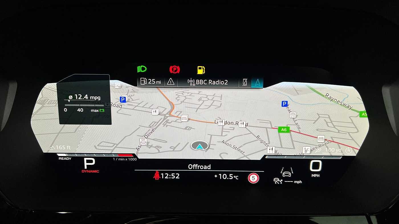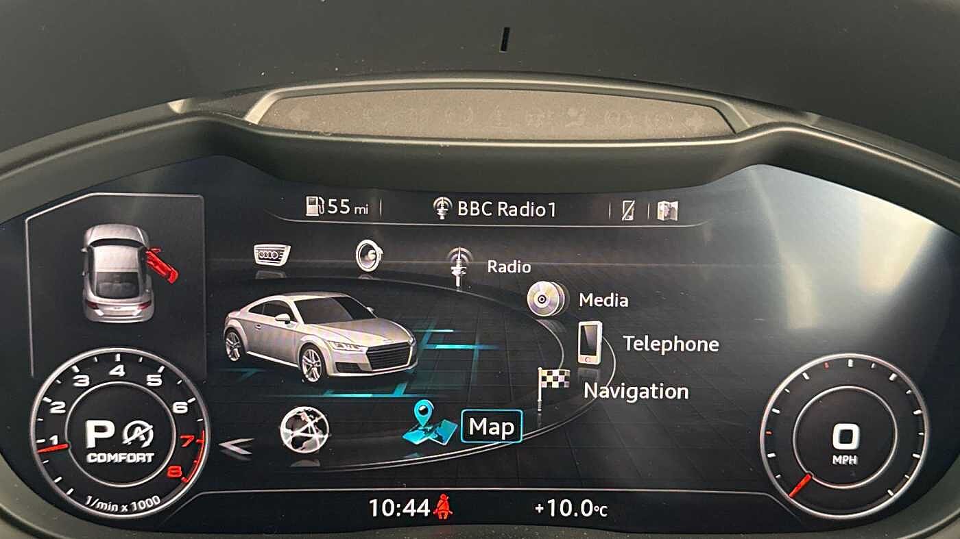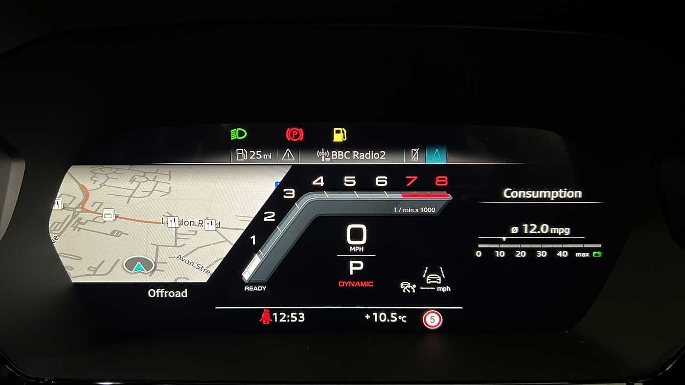 "Speedo, rev counter, electronic odometer, trip, service interval display, exterior temperature and fuel gauge",