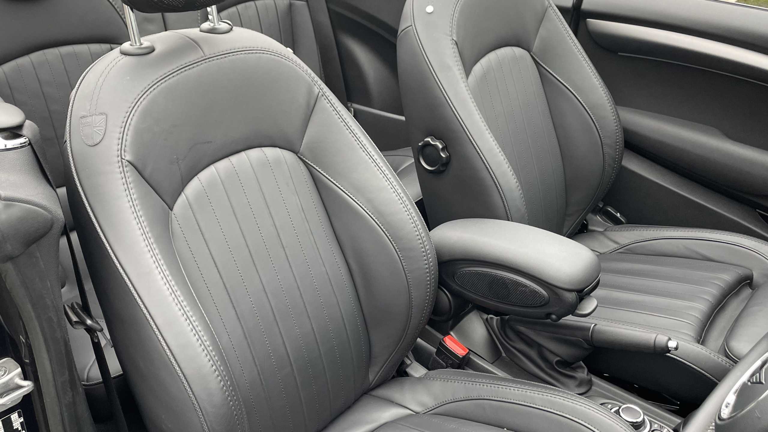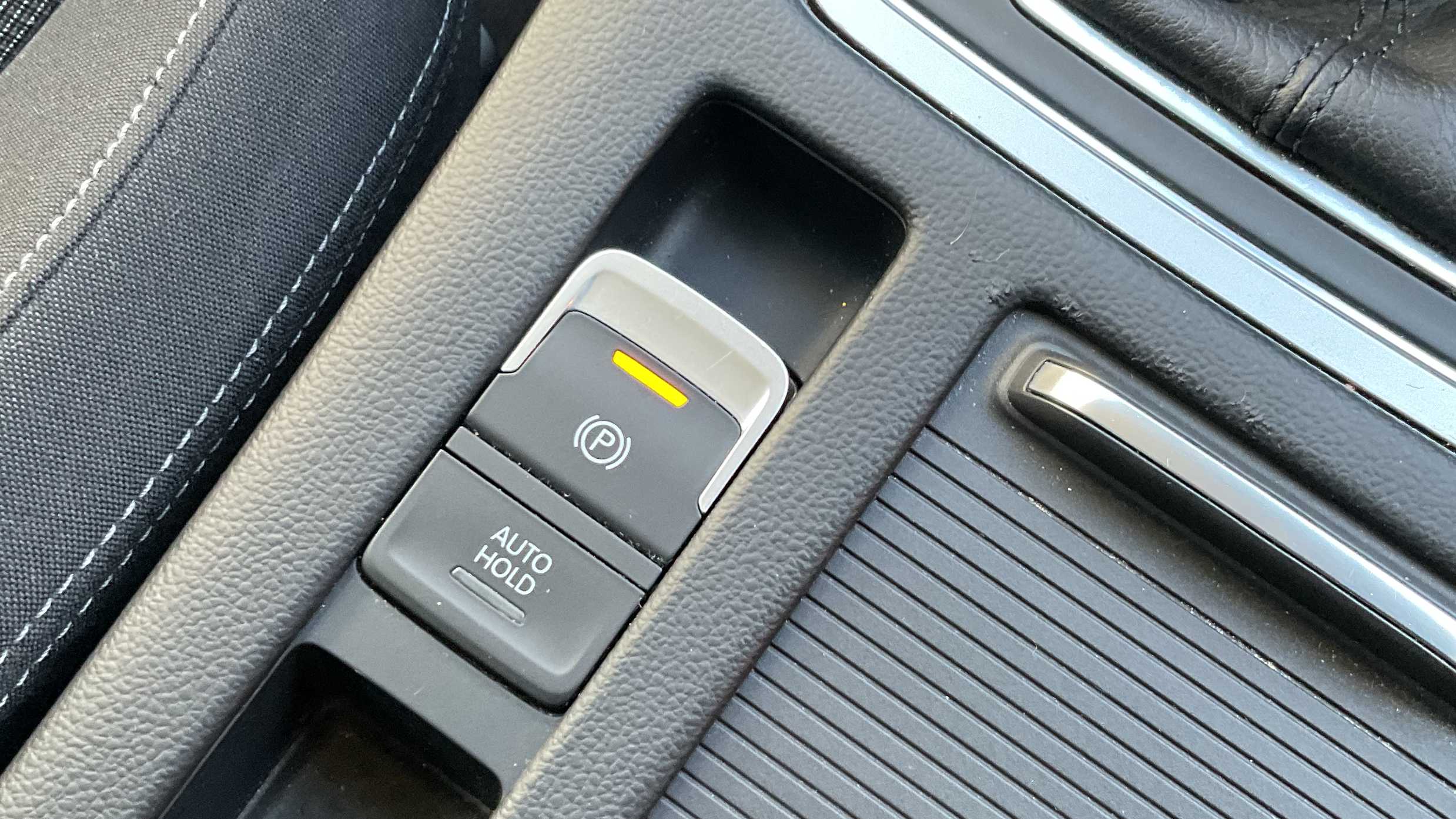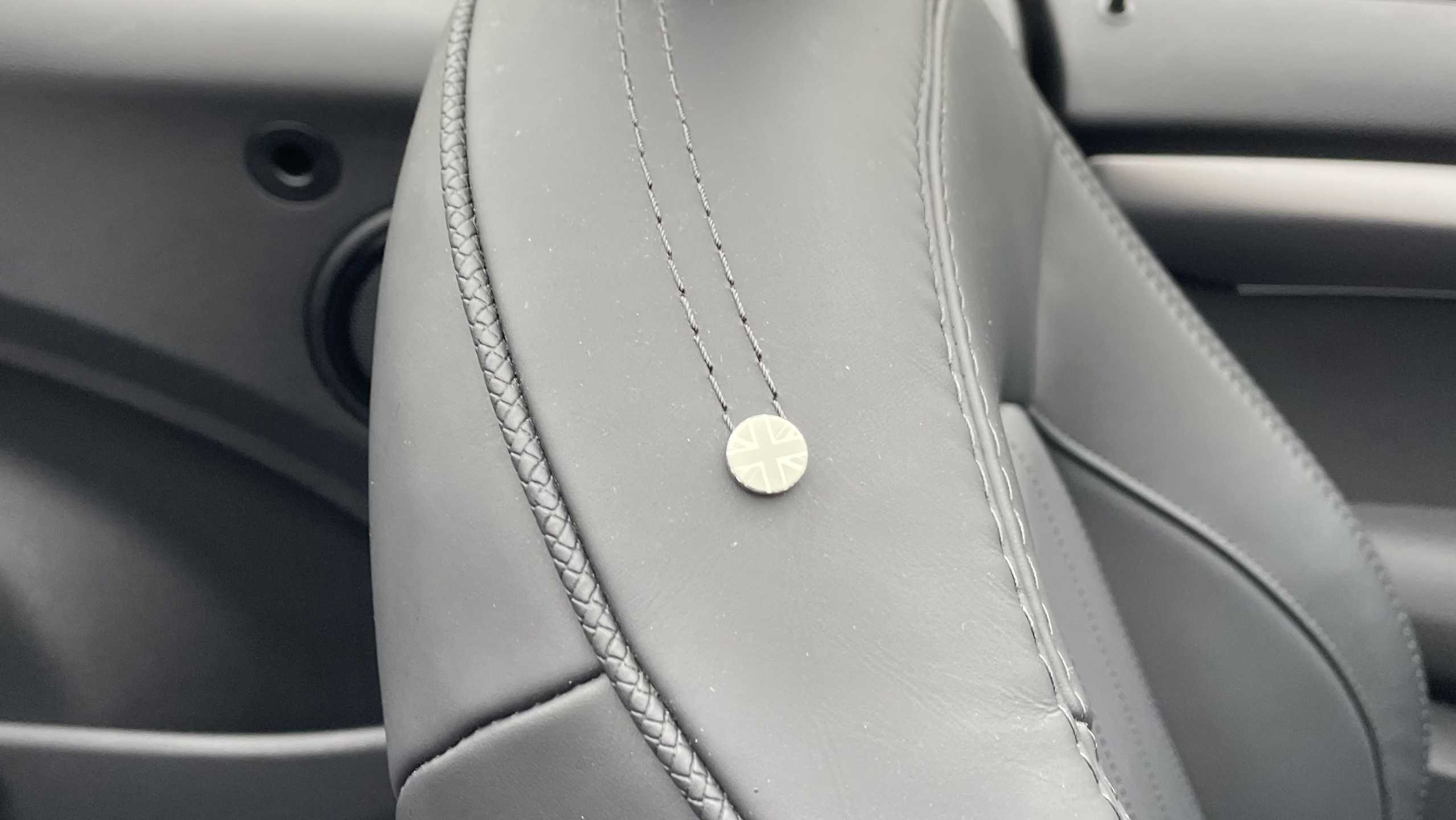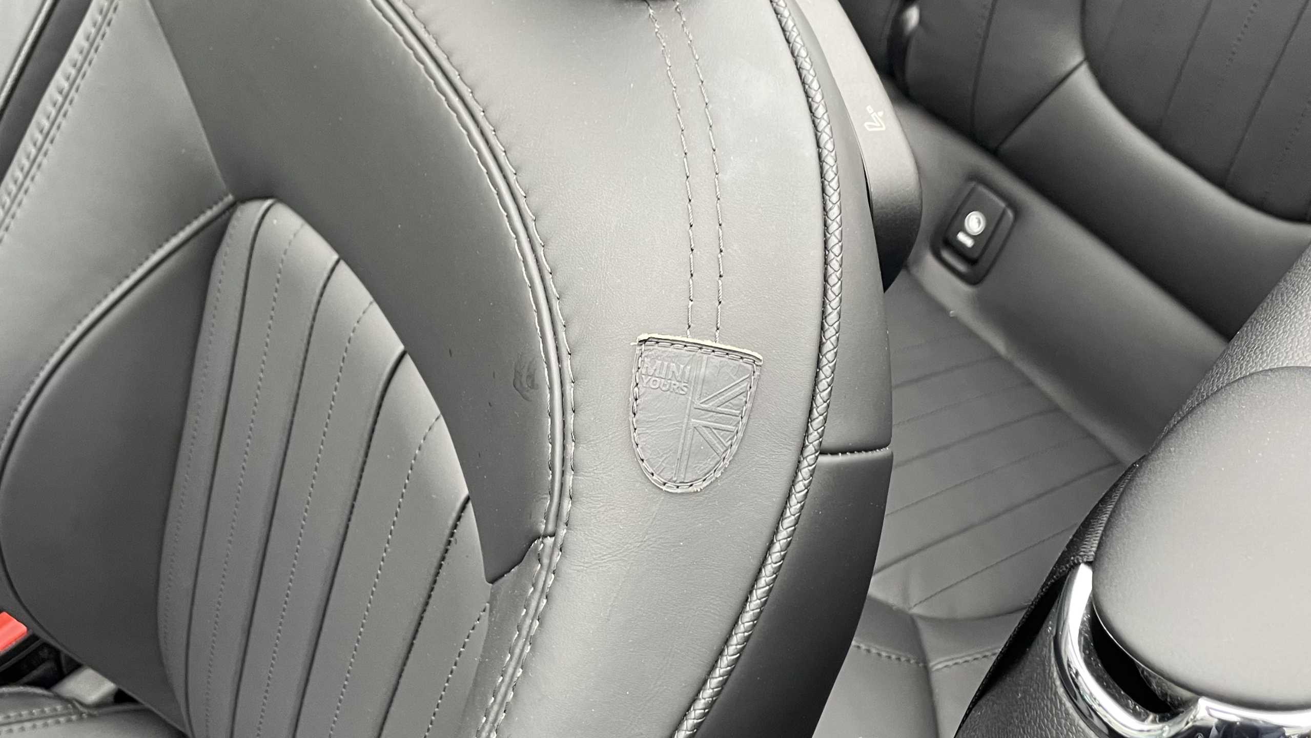 "Synthetic leather wrapped door handle with contrasting stitching",