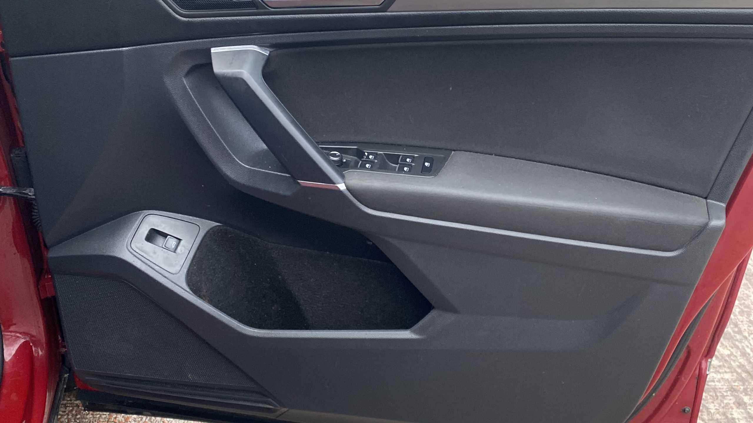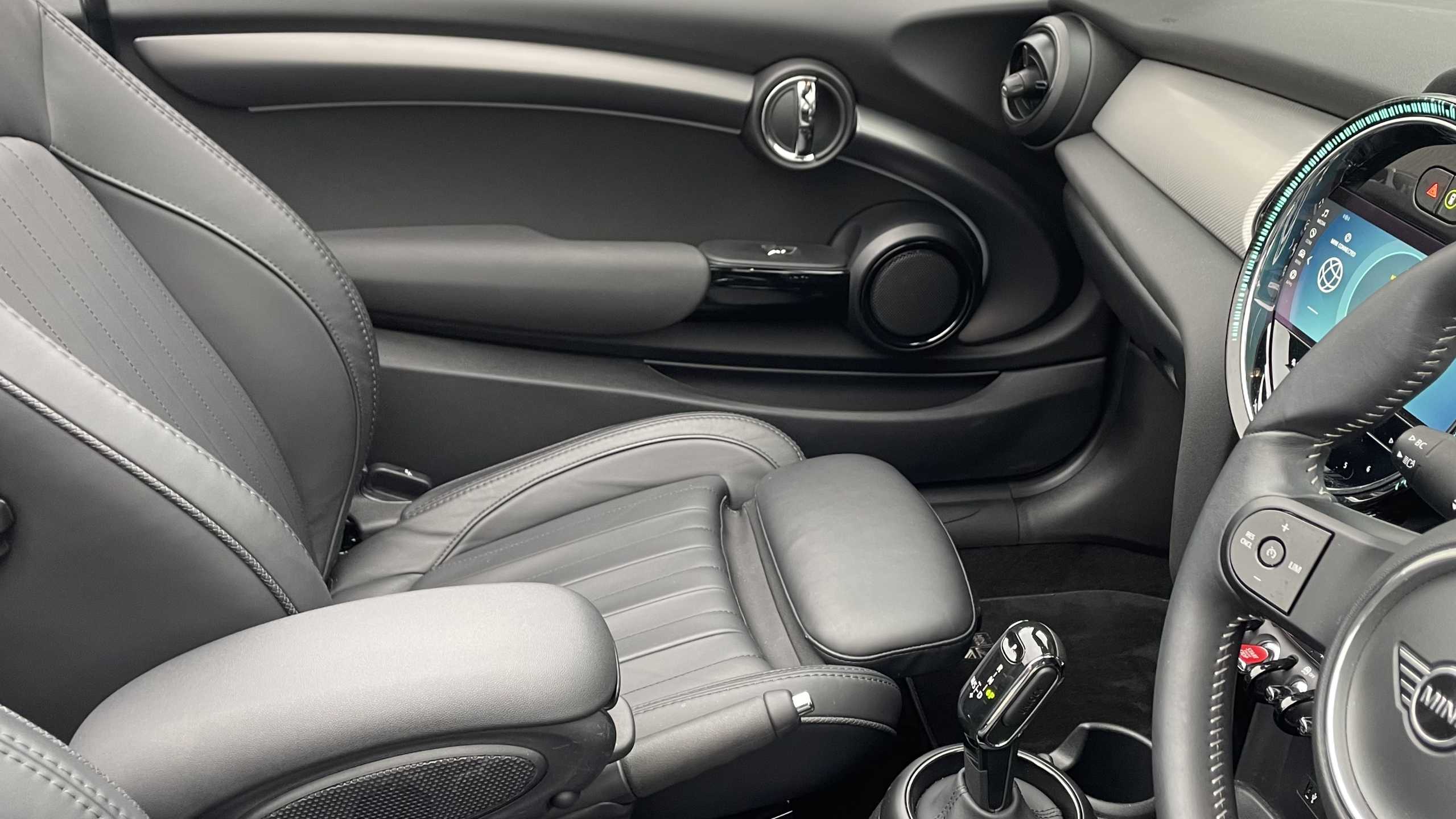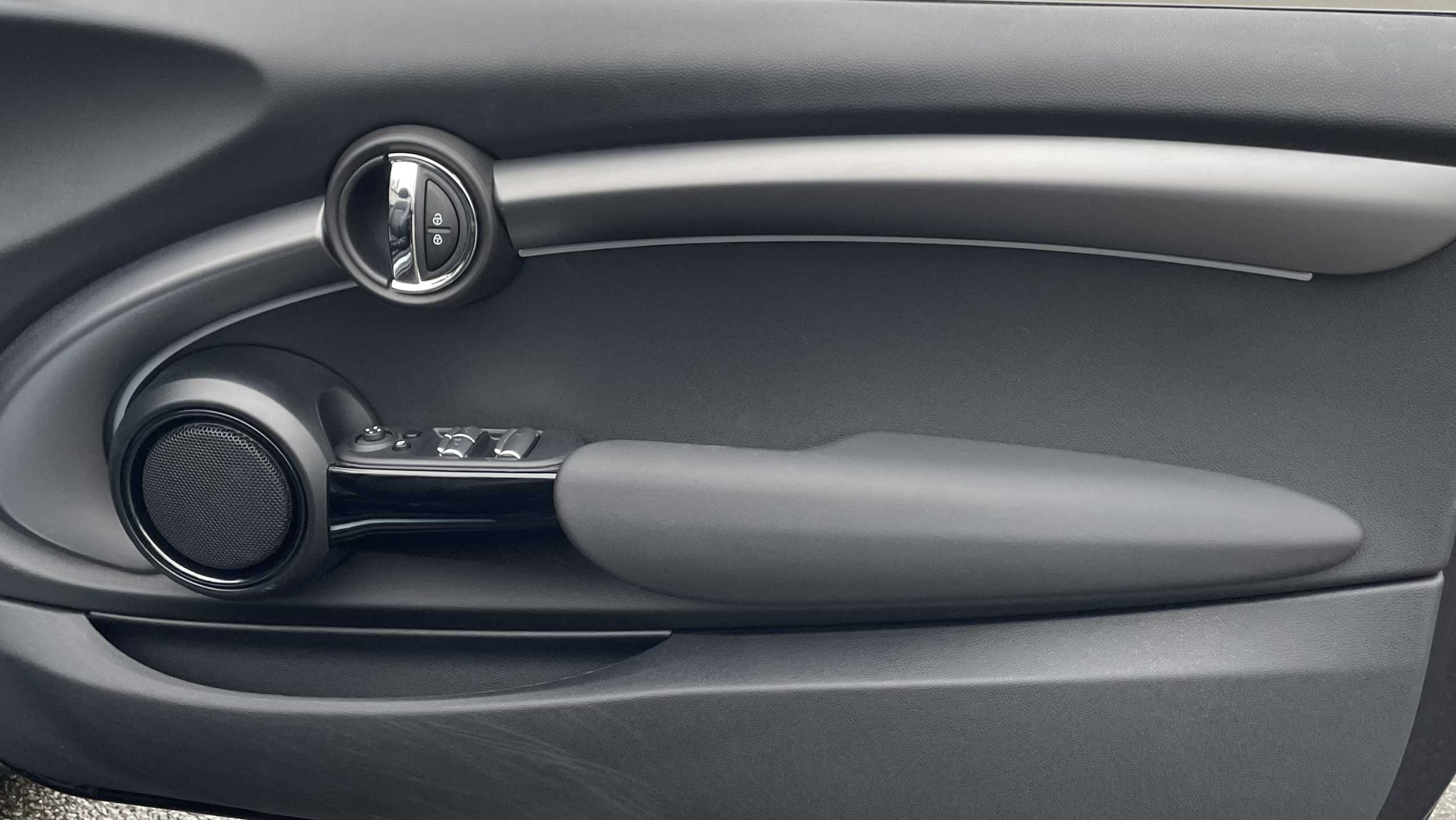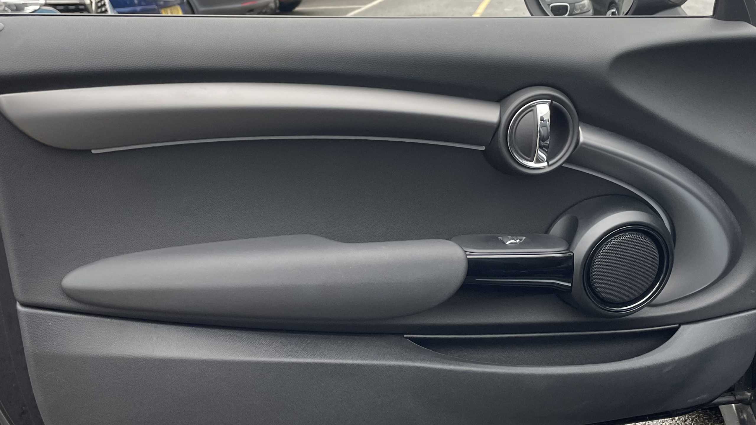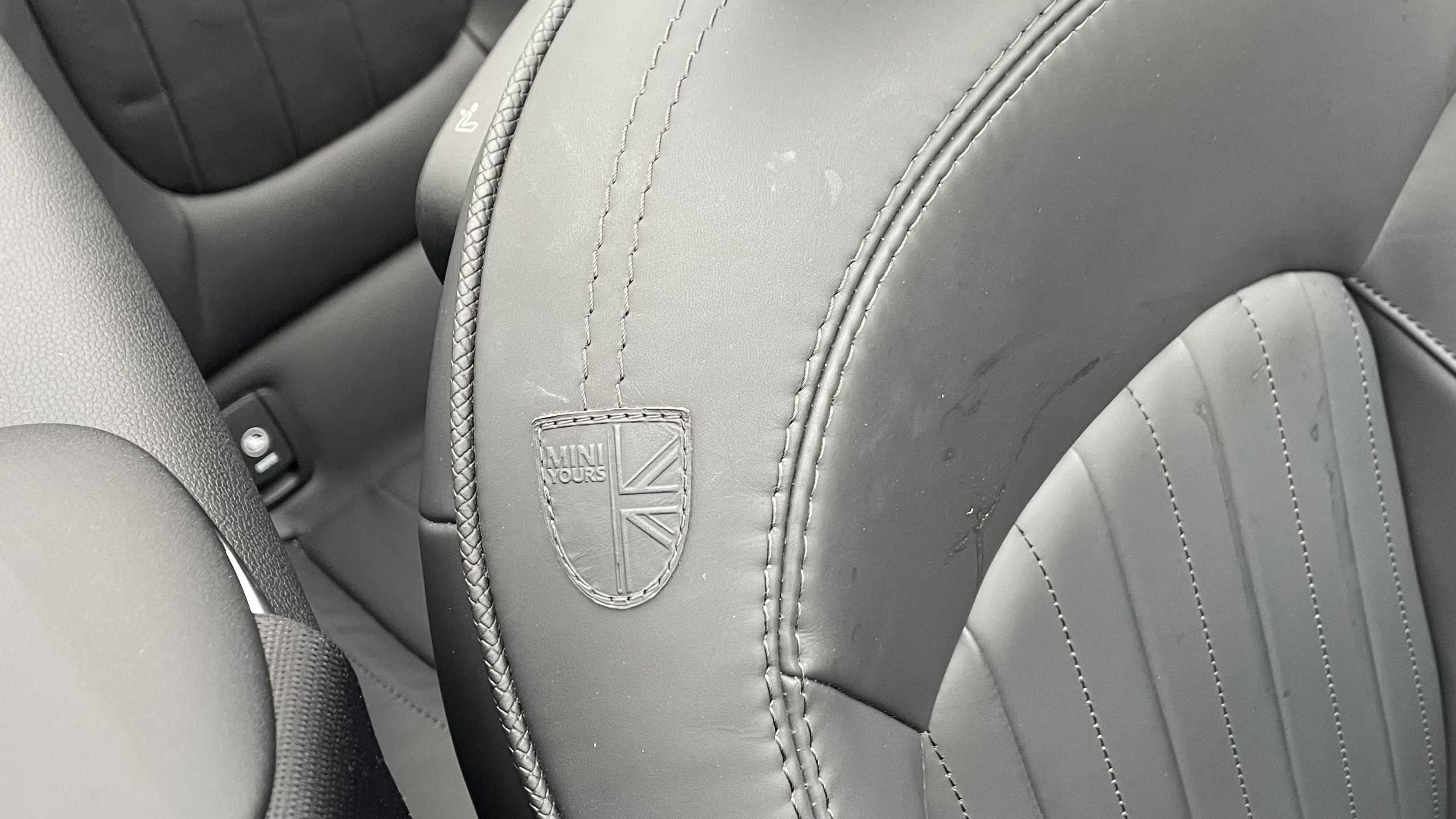"Synthetic leather wrapped door handle with contrasting stitching",