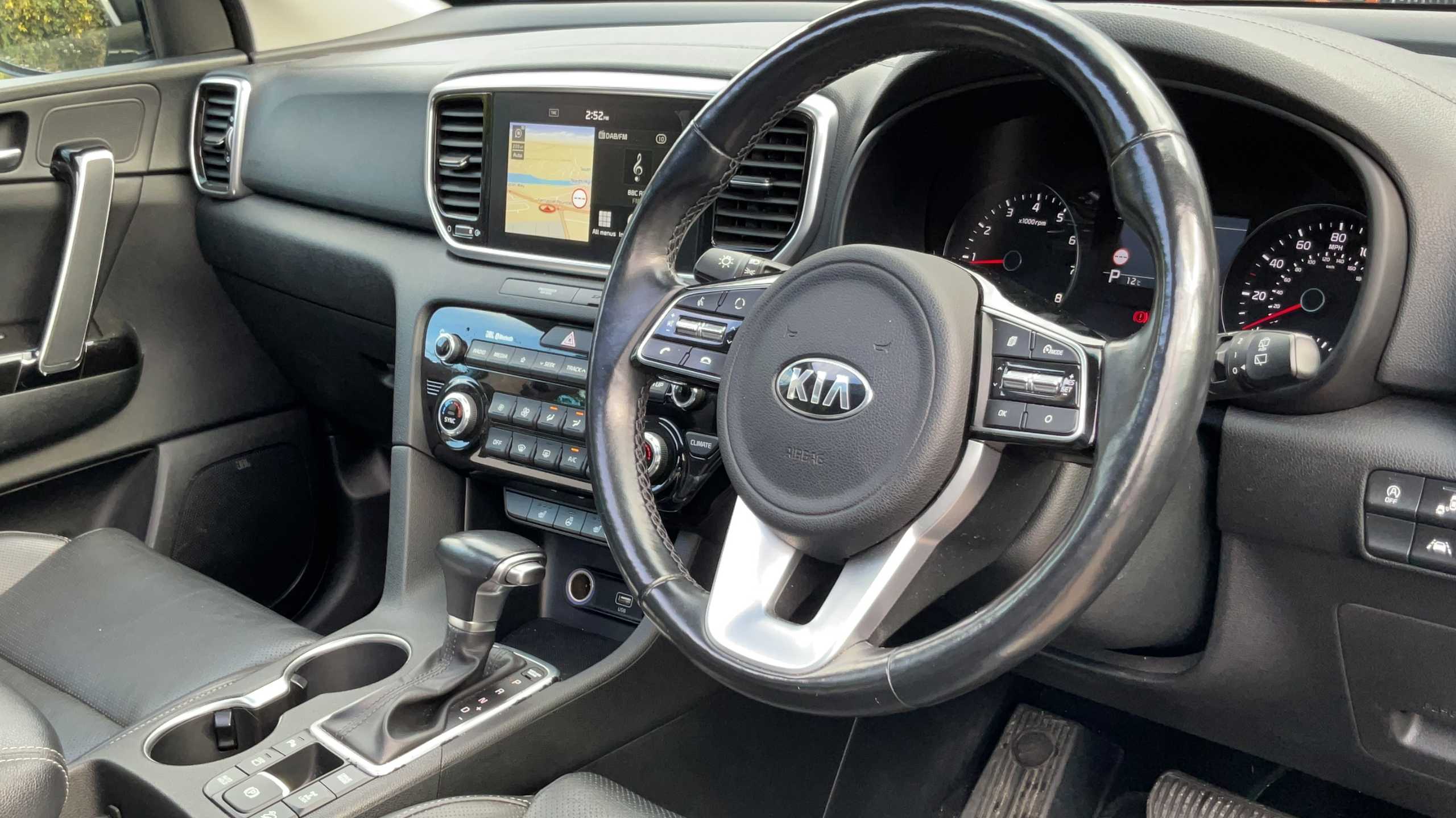 "Leather D shaped steering wheel",