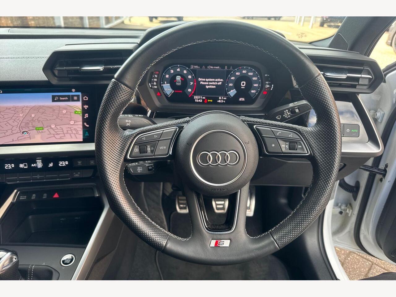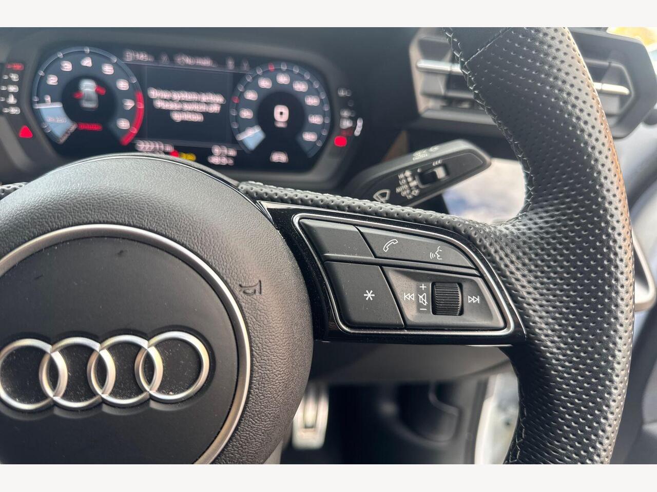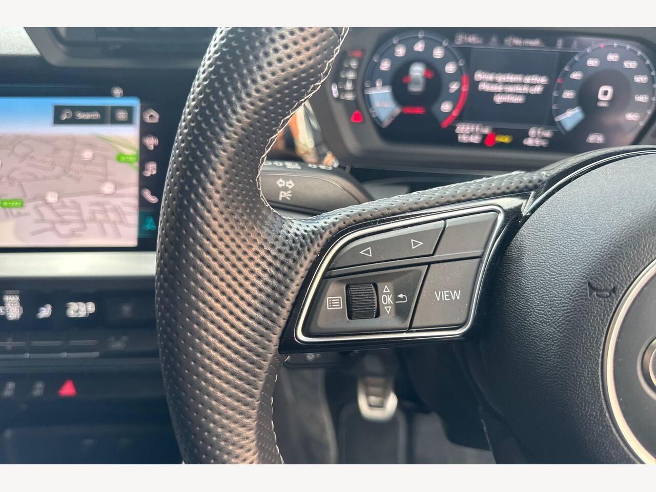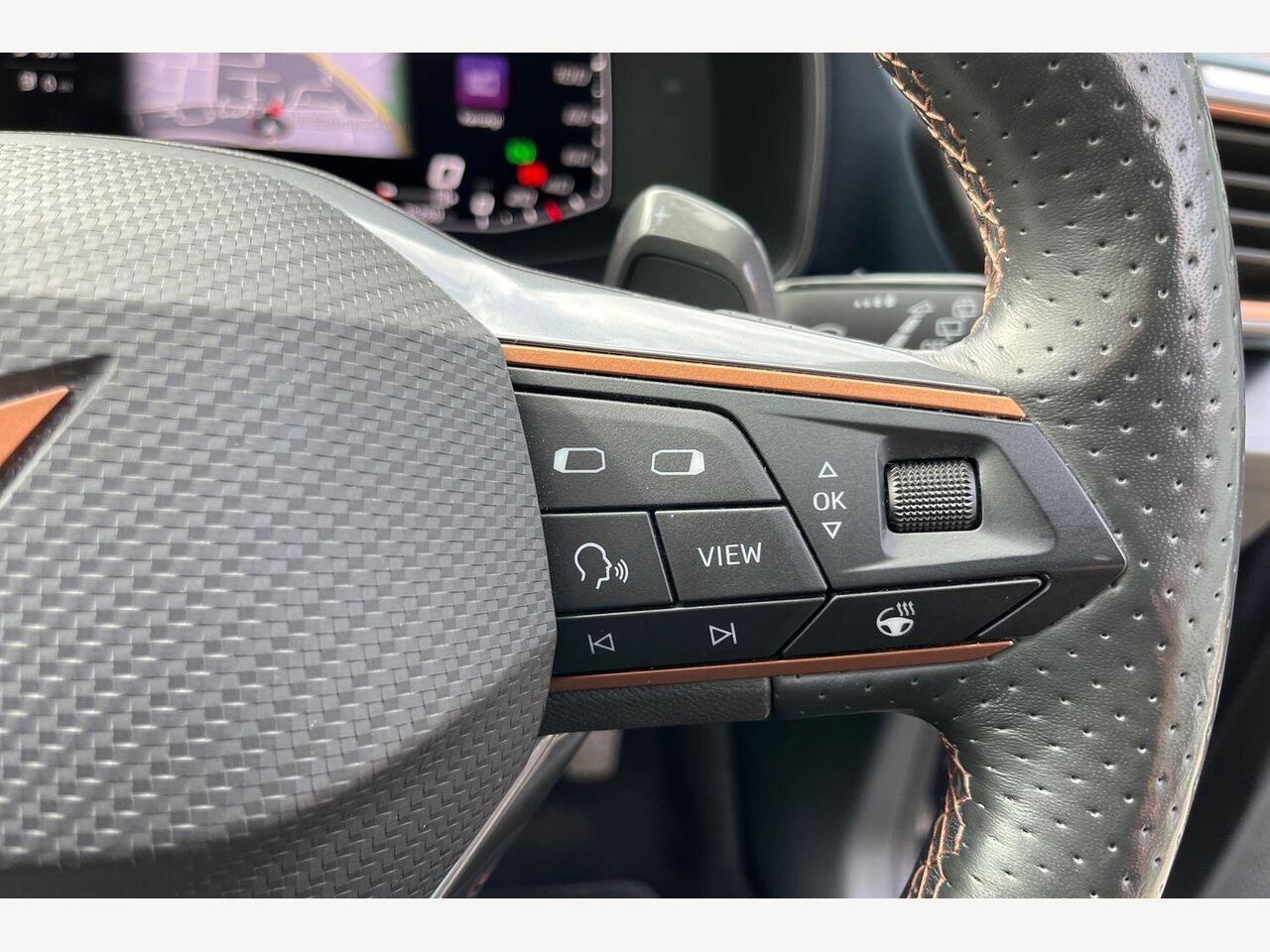 "Leather-wrapped, heated, multi-function sports steering wheel with touch control and shift paddles",