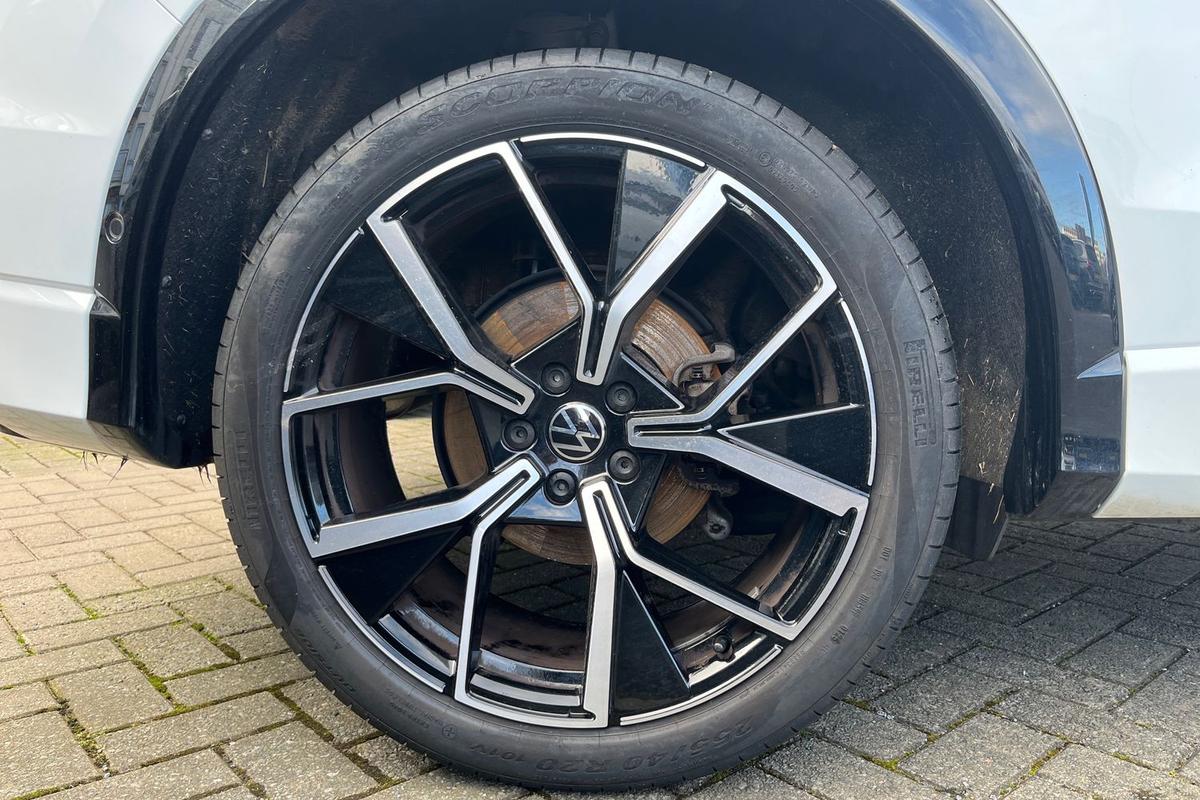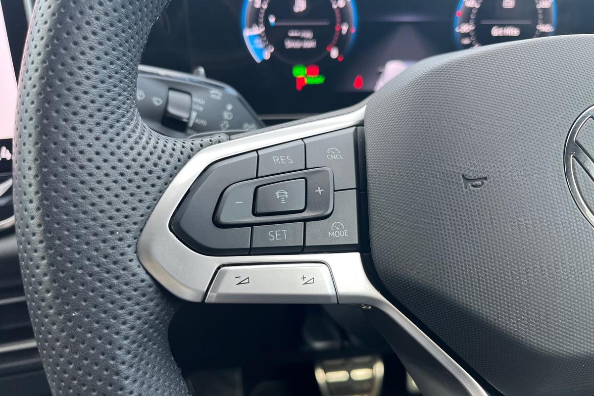 "features": "Activated carbon canister, Adaptive cruise control (ACC), Advanced driver attention and drowsiness monitor, Dynamic road sign display, Dynamic steering, E-Sim card for online connectivity, eCall emergency call system, Multi-color Digital cockpit pro, selection of different info profile possible, Multifunction front facing camera for distance control, Navigation system, Oncoming vehicle braking when turning including swerve support, Speed limiter, Speedo, rev counter, electronic odometer, trip, service interval display, exterior temperature and fuel gauge, Traffic jam assist, Voice enhancer and voice control, Warning signal and warning light for front and rear seatbelts not fastened, We connect plus preparation, We connect preparation, Wireless app connect, Petrol Particulate Filter, Start-stop system with battery regeneration (recuperation - energy recovery during braking), XDS electronic differential lock for improved traction and handling, 2 USB C ports in front, 2 USB charging sockets on the centre console in the rear charging capacity upto 45W, Digital radio reception (DAB), Diversity antenna for FM reception, Gaming platform via car app, Infotainment system with 12.9\" display, Mobile phone interface with inductive charging feature, 3rd brake light, Auto dimming rear view mirror, Automatic headlamp activation with Coming home and Leaving home feature, Body colored bumpers in R-Line style, Body colour door handles, Exterior ambient lighting, Exterior mirrors convex on the left and aspherical on the right, Front and rear electric windows, Heat insulating windshield made of laminated glass, LED separate daytime running light, Rain sensor, Rear exhaust tailpipe, Rear fog light on one side and reversing lights on both sides, Rear side wing doors, Rear windscreen washer and wiper with interval delay, Remote electrically foldable door mirrors, puddle lights and reverse activated passenger's door mirror, Volkswagen logo in front, illuminated lighting animation with wake up/goodbye scenario and illuminated door handles, Welcome light with surround lighting, 12V socket in front centre console, 12V socket in luggage compartment, 3 rear head restraints, 3 seat bench in 2nd row, Ambient lighting with 30 colour including LED light unit in front footwell with selectable light colour, Black roof lining, Brushed stainless steel pedals, Chrome plated radiator grille inserts, air vent surrounds and light switch surrounds, Front + rear black carpet mats, Front centre armrest, Integrated front head restraints, ISOFIX anchors for child seats on outer rear bench seats and on front passanger seat compatible for i-Size, Leather gearshift handle, Luggage compartment lighting, Premium sports seats in front, Rear cupholder and loadthough, Single front passenger seat, Split folding backrest with centre armrest and unsplit rear seat bench, Sun visors with illuminated vanity mirrors, Titanium black instrument panel, Black exterior Styling package with Matrix LED headlights - Golf, 3 point height adj front seatbelts + pretensioners, 3 rear three point seatbelts, ABS, Autonomous emergency braking front assist with pedestrian and cyclist monitoring, Child locks on rear doors, Driver and front passenger airbag with front passenger airbag deactivation, Electronic parking brake with auto hold, ESC (Electronic Stability Control), Extended pedestrian protection measures, Rear disc brakes, Two tone horn, Tyre pressure loss indicator, Volkswagen roadside assistance, Anti theft wheel bolts, Preparation for alcohol interlock, Decorative inserts carbon grey for dashboard and front door trim panels, 18\" Leeds alloy wheels, Tool kit for tyre mobility set, Tyre mobility kit Includes 12V compressor and tyre sealant, ",