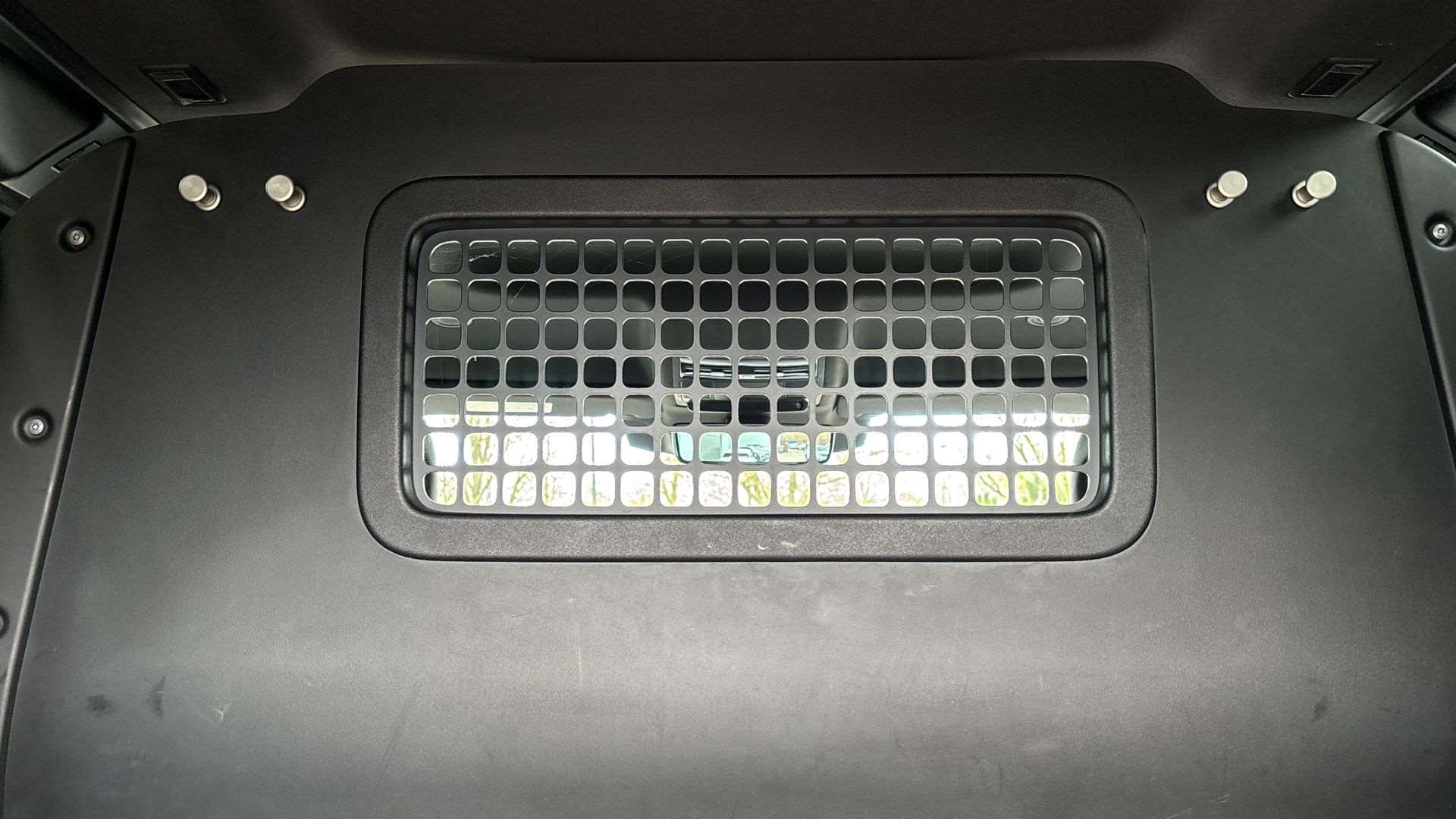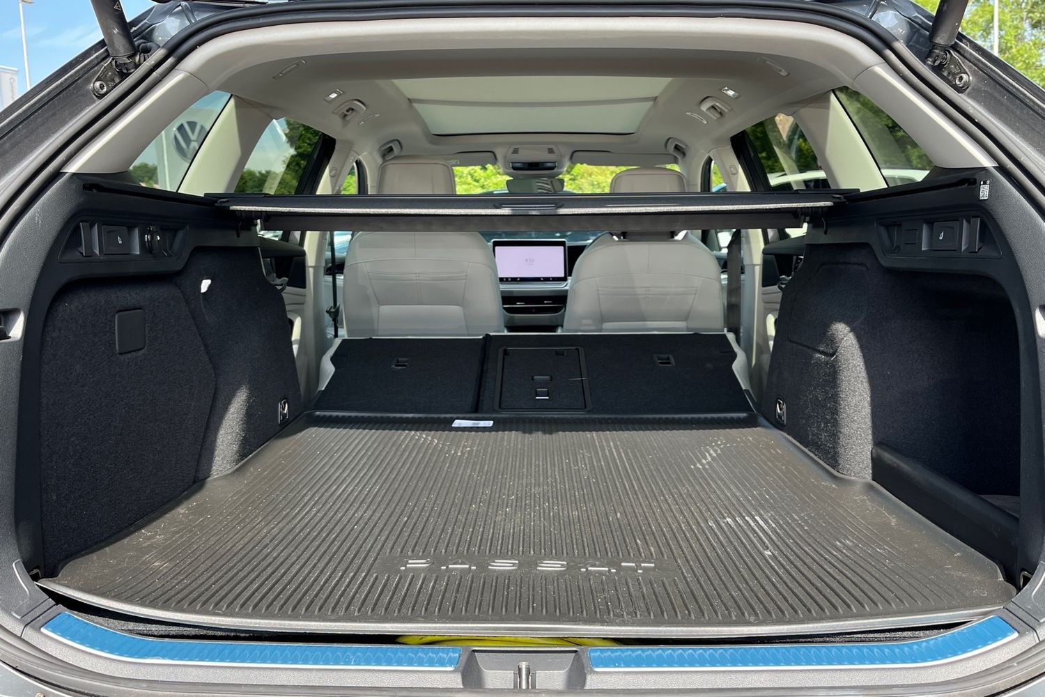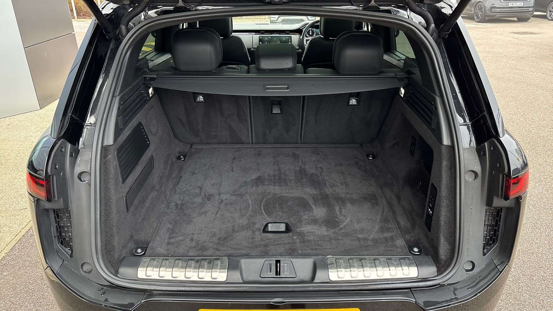 "Luggage compartment loading edge with stainless steel insert",