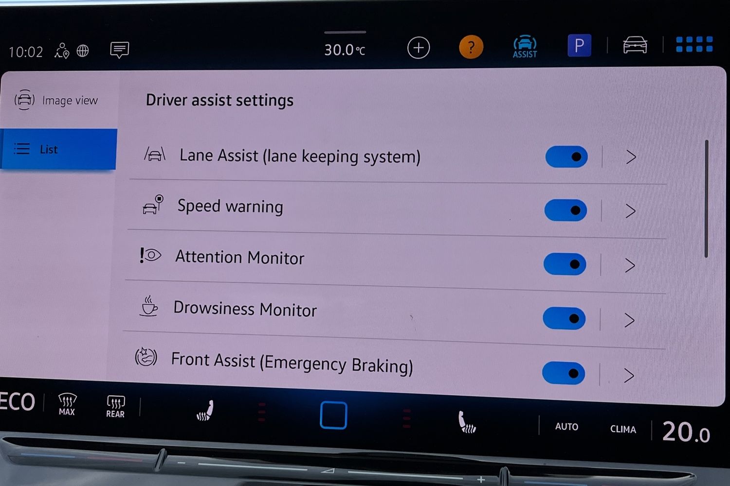 "On board computer - average speed+fuel consumption, service interval, clock/date, odometer/trip meter, outside temperature display and ice warning",