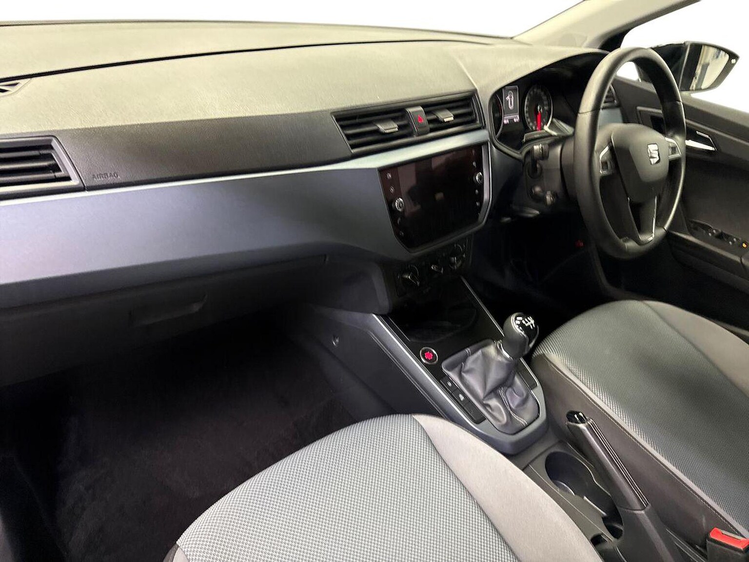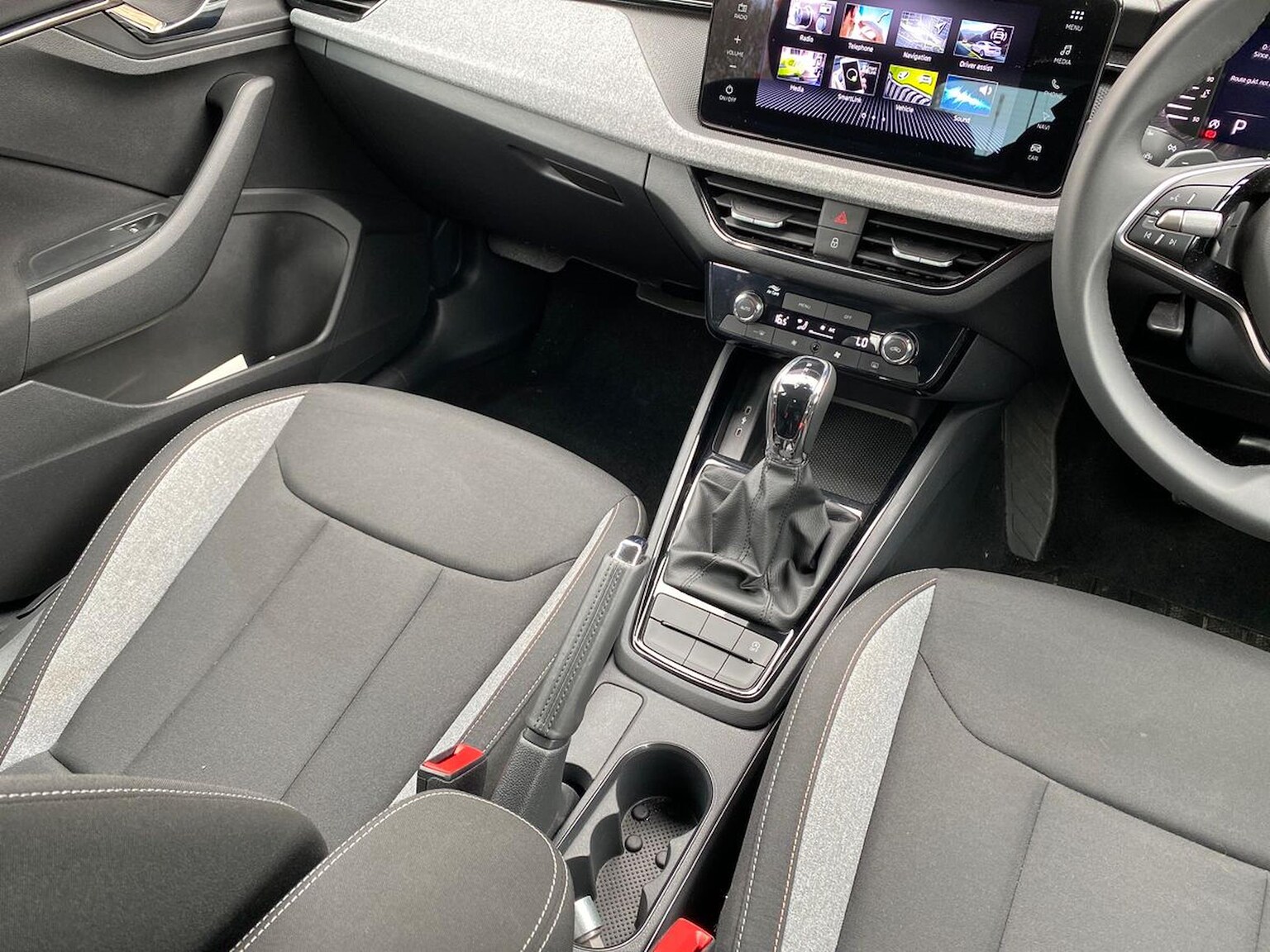 "Black / Grey armrest stitching",