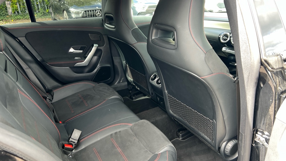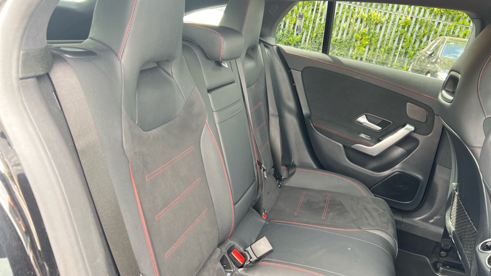"Split folding rear seat with headrests",