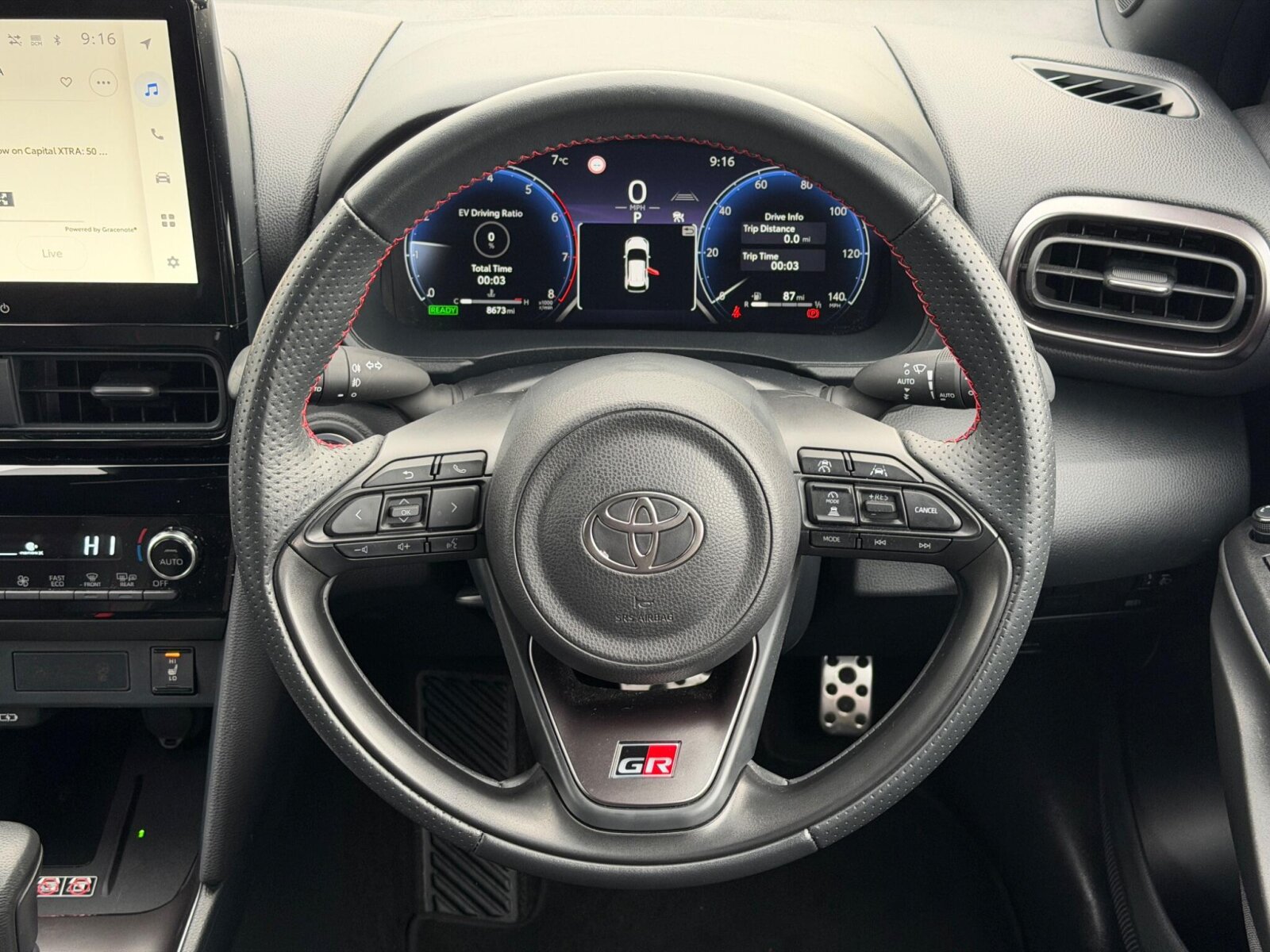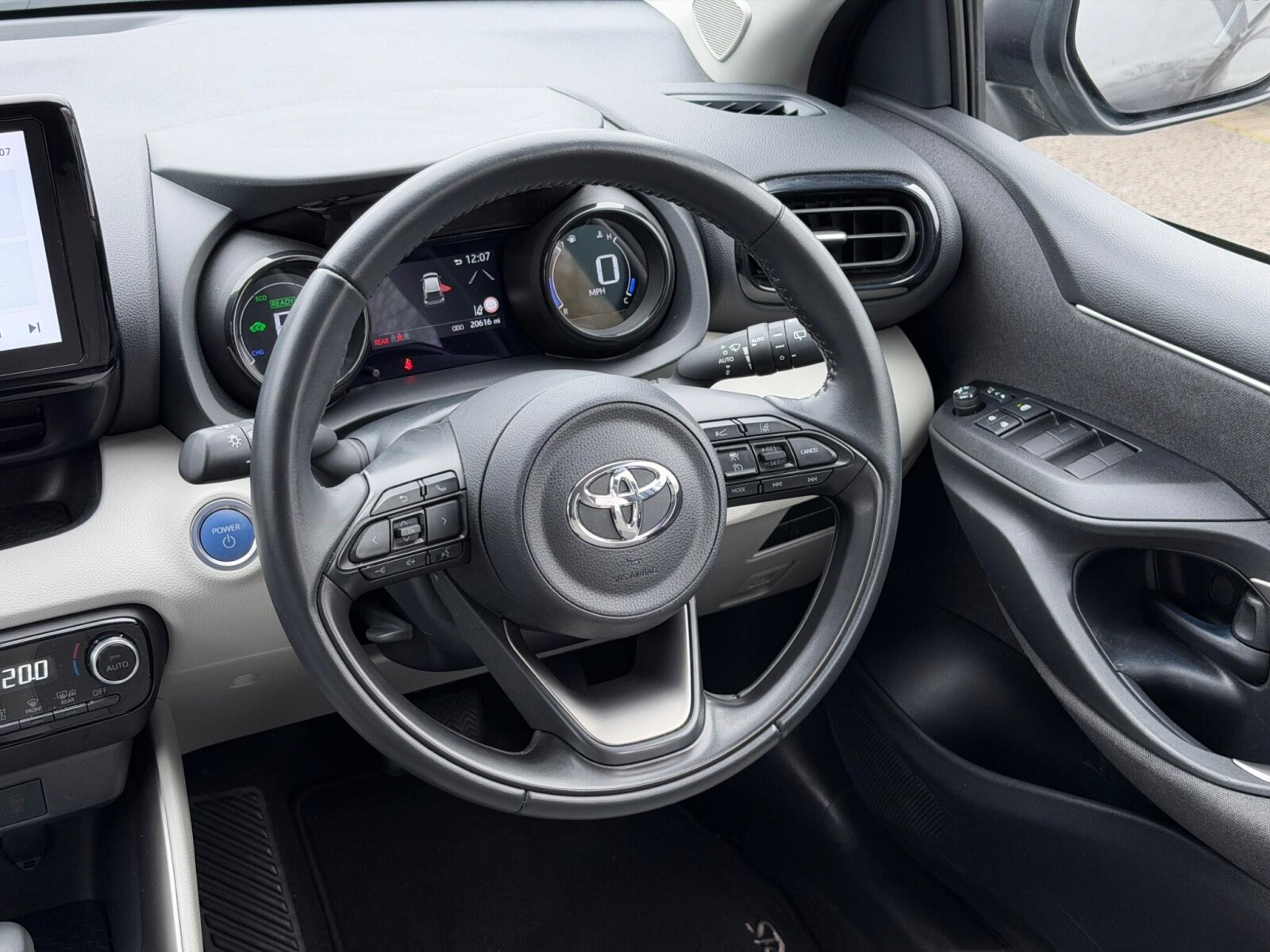 "features": "Adaptive cruise control, Adjustable speed limit with speed warning, Bluetooth connectivity, Colour binocular inspired displays with digital speedometer, E-call, Electric power steering, Hybrid energy display, Multi information display switches on steering wheel, Reversing camera, Smartphone integration with Apple CarPlay and Android auto, Tailgate, Voice recognition, Vehicle Stability Control (VSC), 4 speakers, 8\" Multimedia display touch screen, USB connection, Acoustic windscreen glass, Auto windscreen wipers, Automatic headlights, Body coloured door mirrors, Electric adjustable heated door mirrors, Follow me home headlights, Front auto power windows with anti jam protection, Full LED rear lights, LED daytime running lights, LED front fog lights, LED front light guide, LED Headlights, LED High mounted stop lamp, LED Indicators, LED rear light guide, Manual headlight levelling, Painted chequered front grille, Rain sensor, Rear auto power windows with anti jam protection, Rear privacy glass, Rear side wing doors, Rear spoiler, Rear wiper, Shark fin antenna, Turning signal integrated indicators in door mirrors, Variable front intermittent wipers, 3 adjustable rear headrests, 3 spoke leather steering wheel, 60/40 split folding rear seat, Active headrests, Adjustable boot height, Auto air conditioning, Coat hooks in rear grab handles, Cup holders (2 front & door), Data Communication Module (DCM) connected services, Fabric upholstery, Front armrest, Glovebox, Grey roof lining, Height adjustable driver's seat, Isofix seat fixing, Leather gearshift, Pollen filter, Shopping bag hooks, Single front passenger seat, Tilt/telescopic steering column, 3 point seatbelts on all rear seats, ABS+EBD+Brake assist, Electronic parking brake, Emergency brake light system (EBS), Front passenger airbag on/off switch, Front seatbelt reminder, Hill start assist control (HAC), Rear child proof door locks, Rear seat belt reminder, Supplemental Restraint System (SRS) 8 airbags: Driver & passenger's airbags, dual side curtain airbags, side impact airbags, front centre airbag, Toyota Safety Sense 2, Precollison + Night time Pedestrian & Cyclist Detection, Lane Trace Assist, Auto High Beam, Intelligent ACC & Road Sign Assist, Tyre pressure warning system, 2x Master key, Alarm/immobiliser, Remote powered central double locking doors, Soft touch instrument panel, Space saver spare wheel, ",