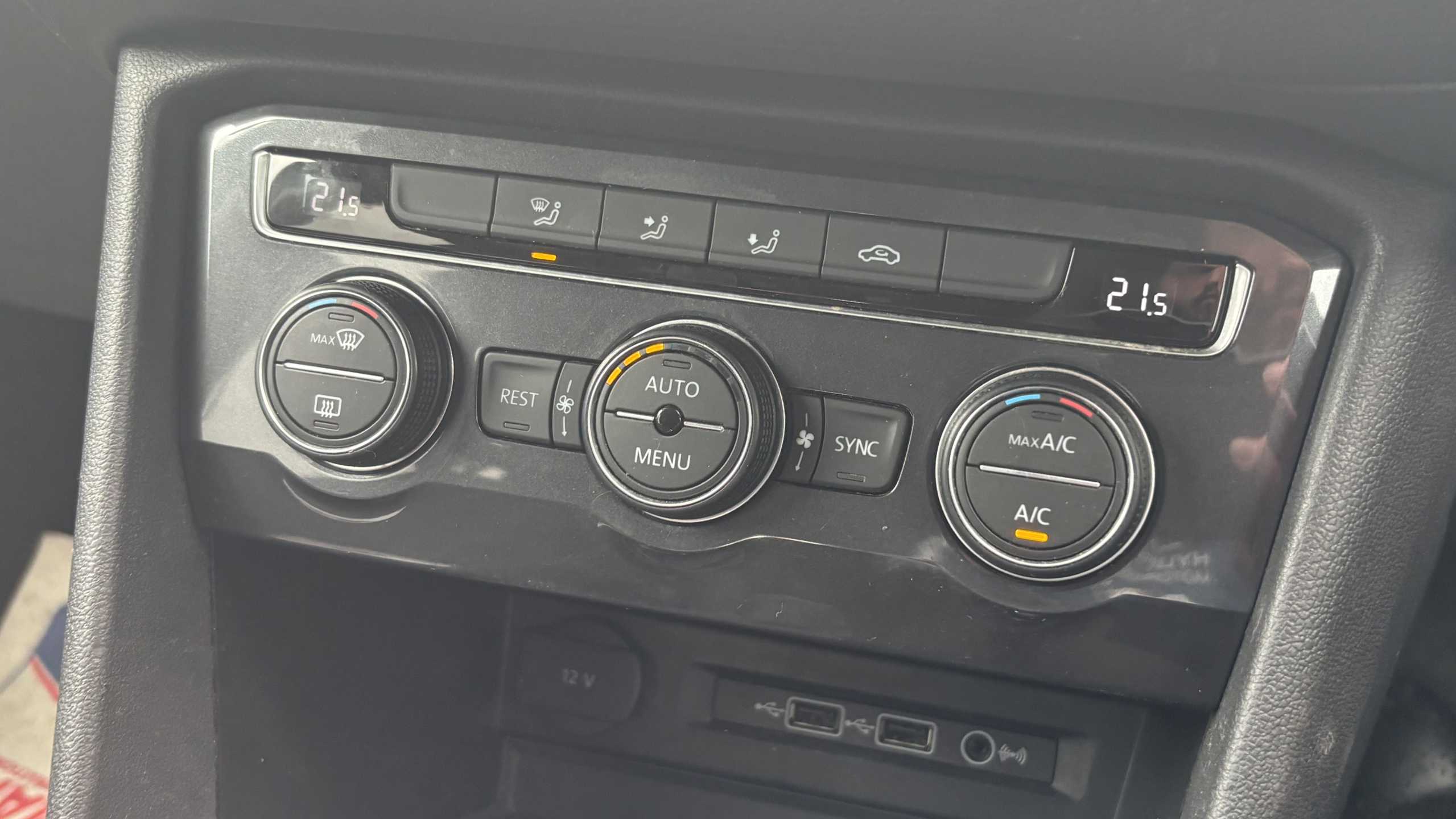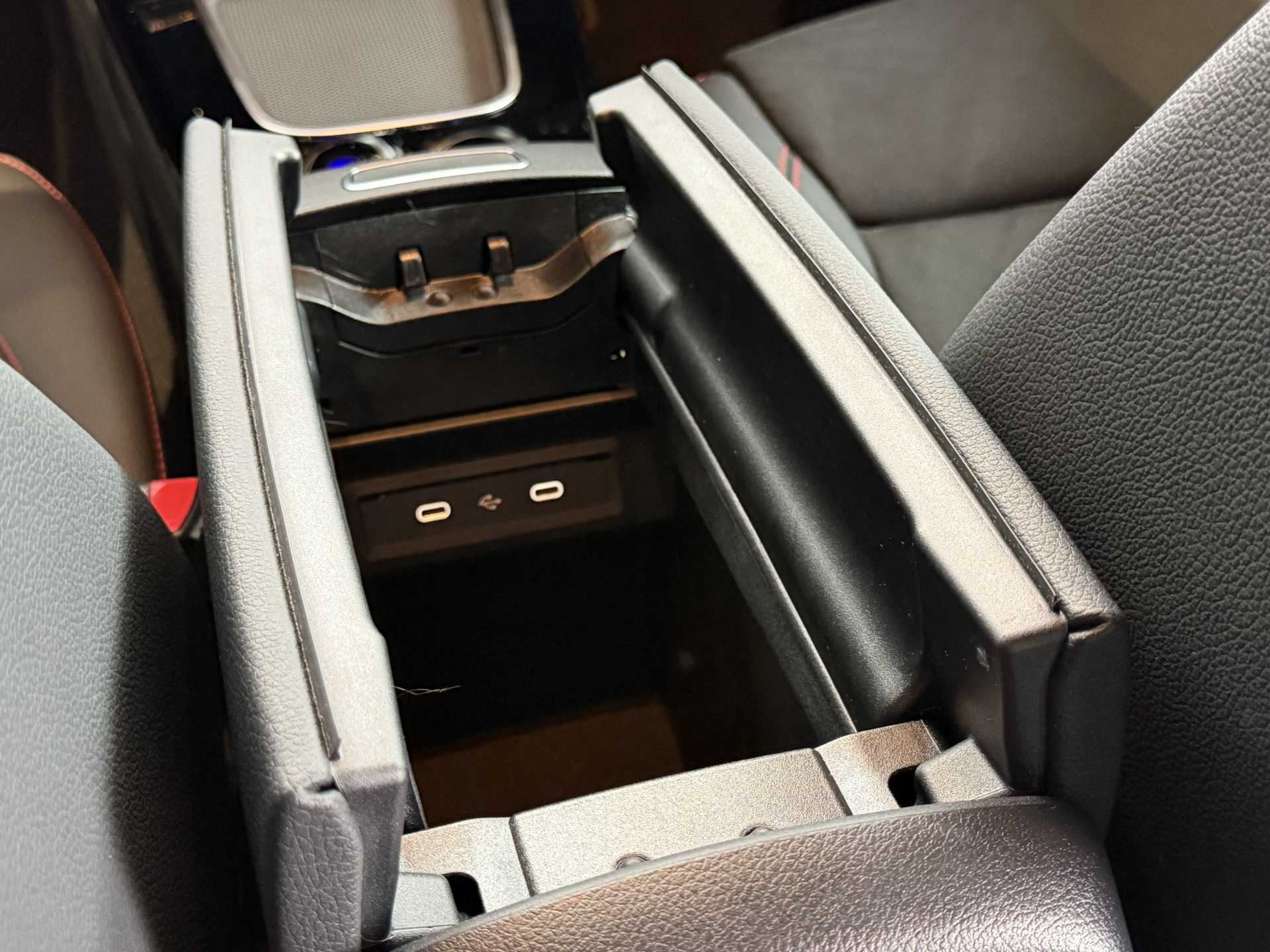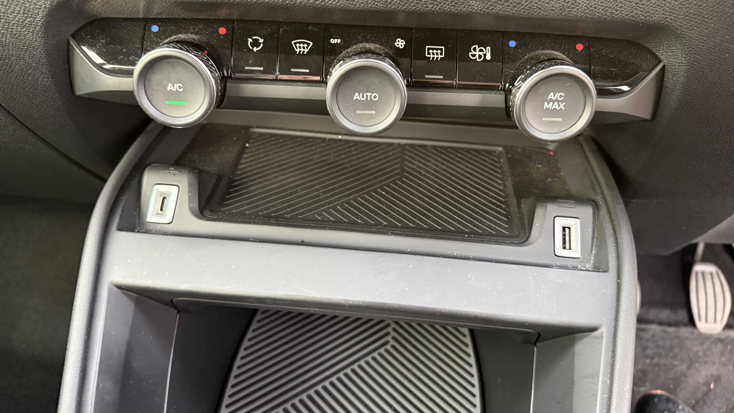 "12V power outlet and USB Type-C socket for charging and data connection at 1st row",
