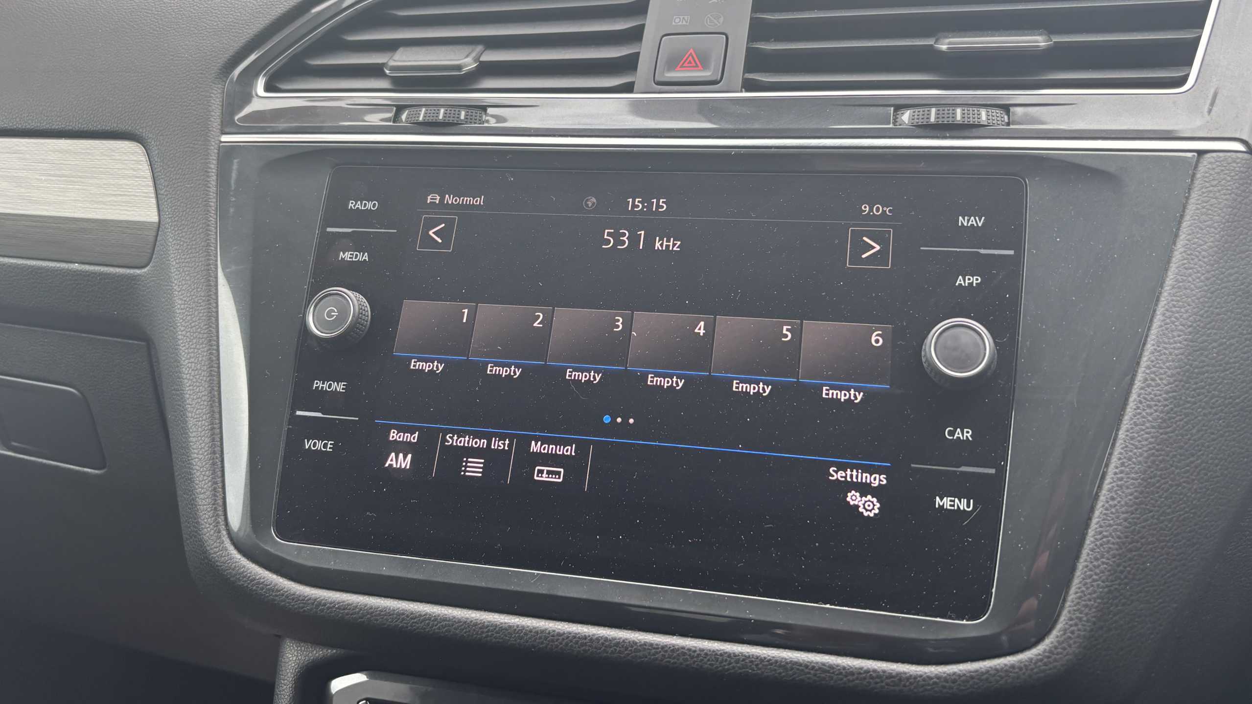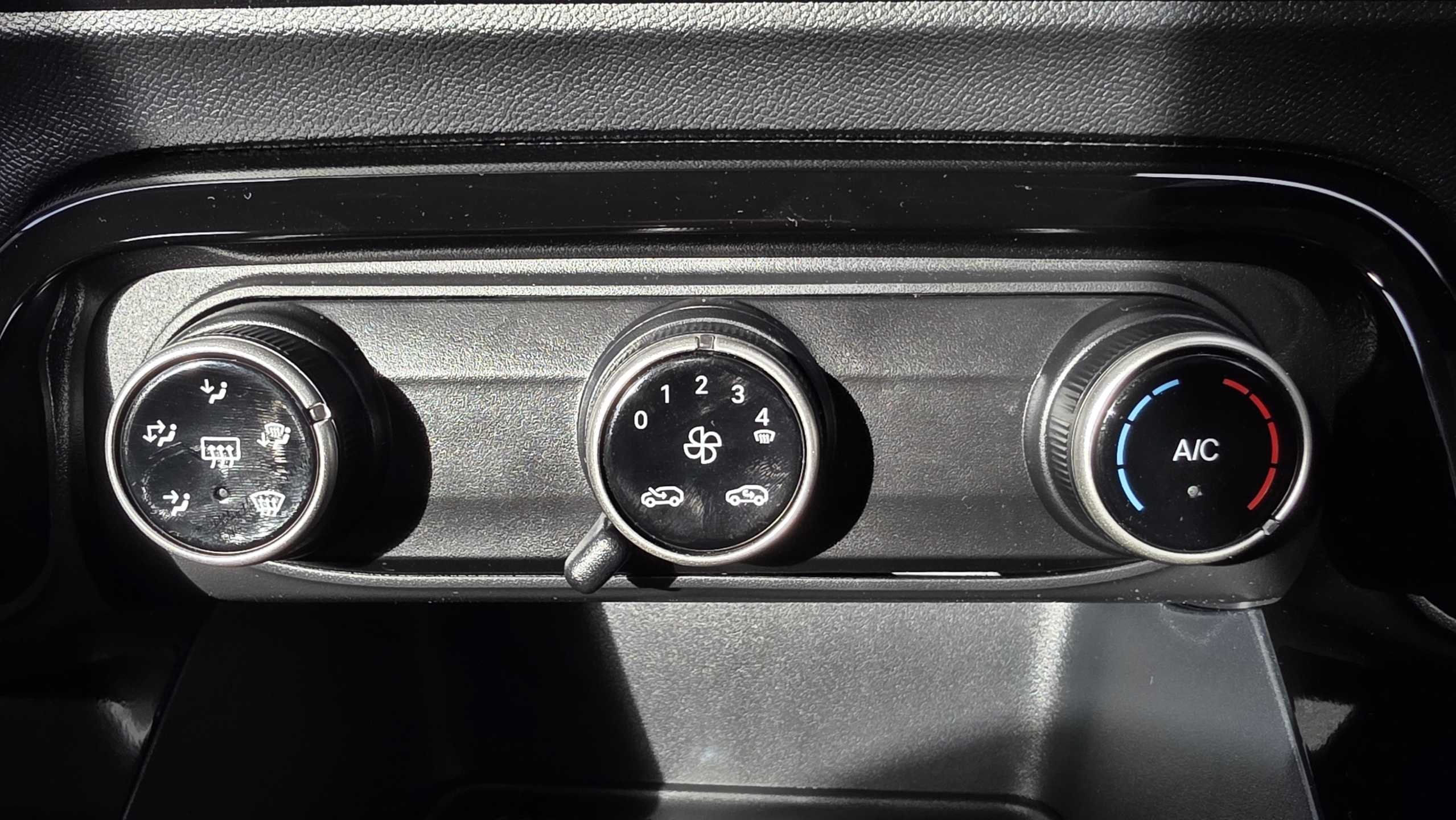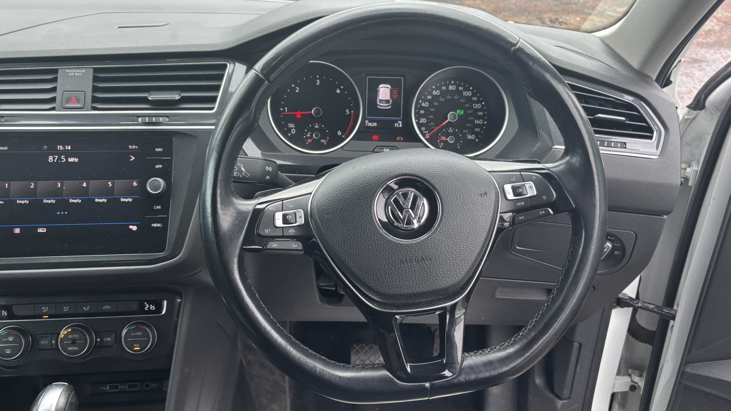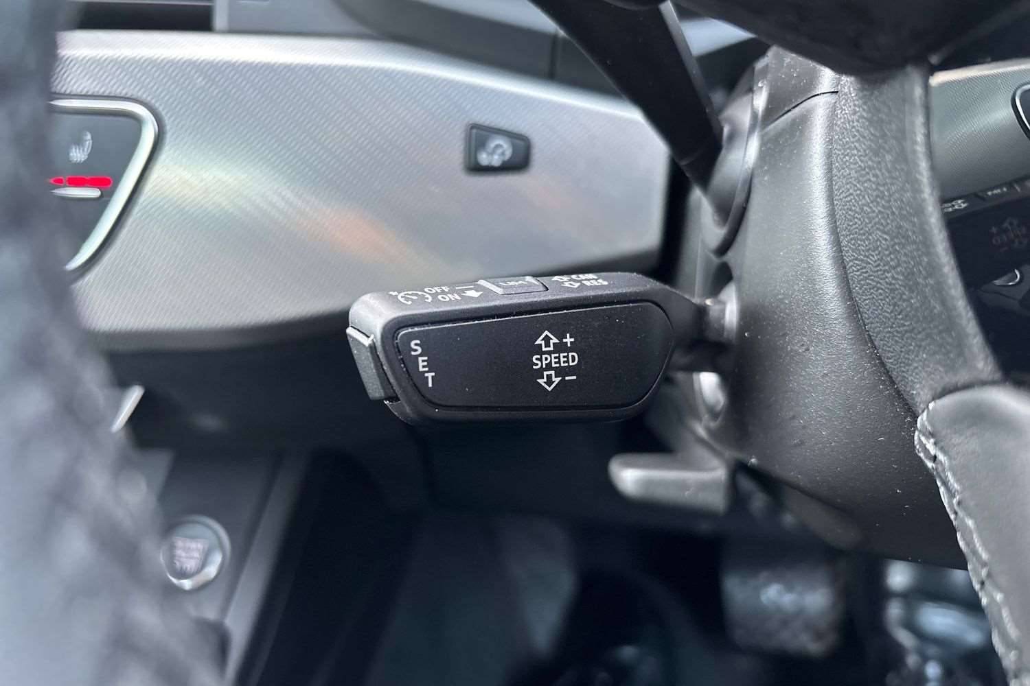 "Grained leather steering wheel with two command blocks",