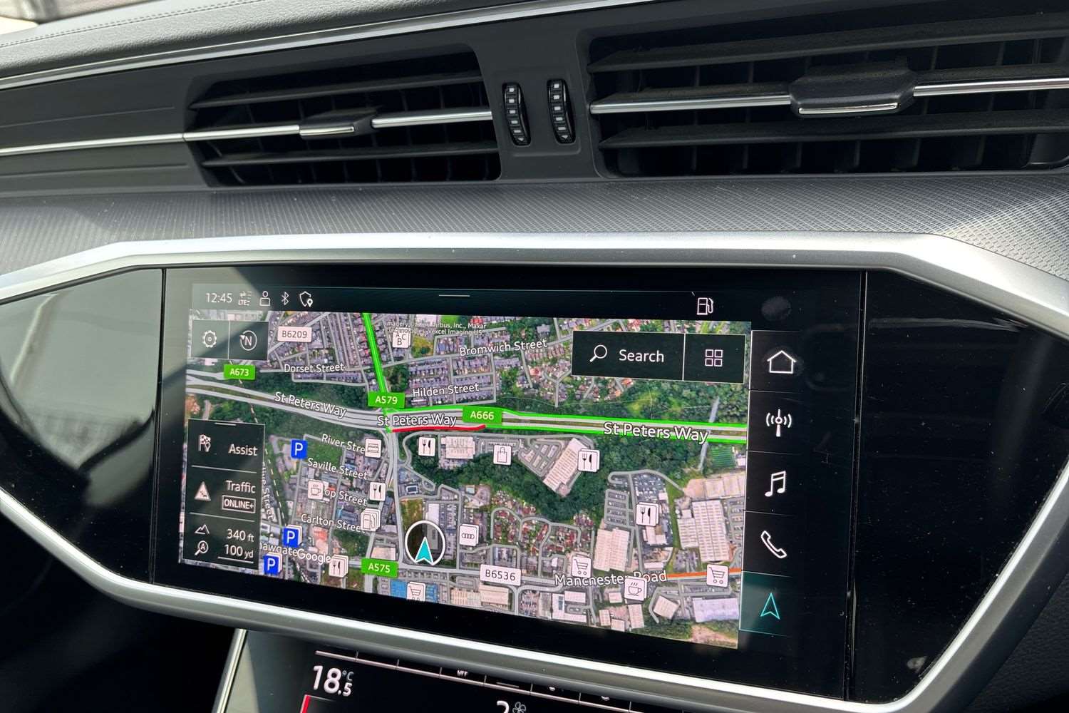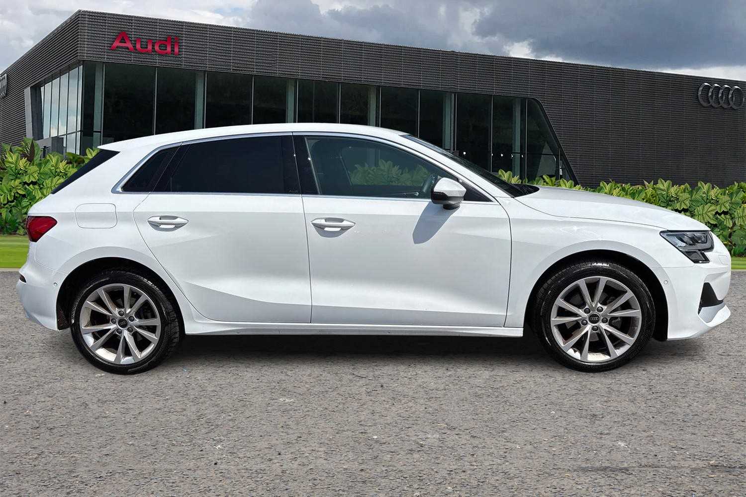 "Audi matrix LED headlights with dynamic front and rear indicators",